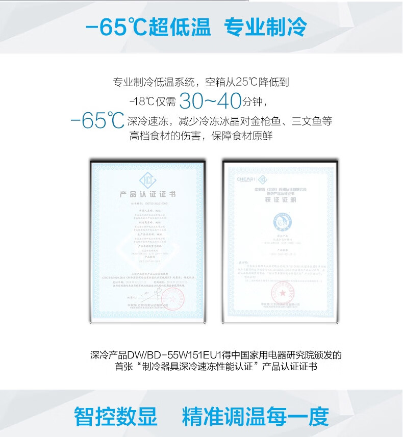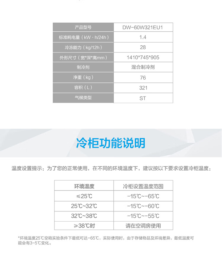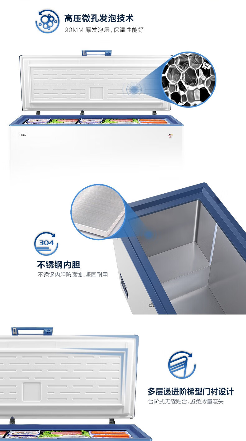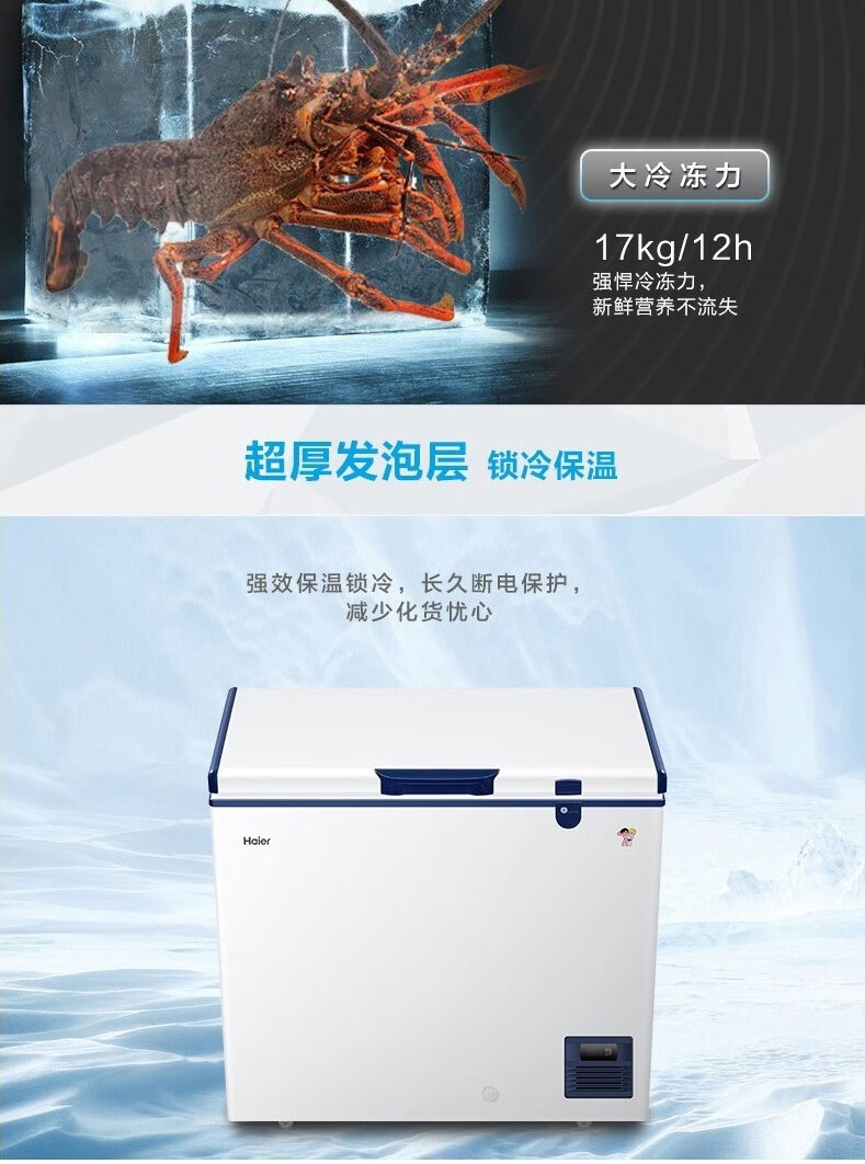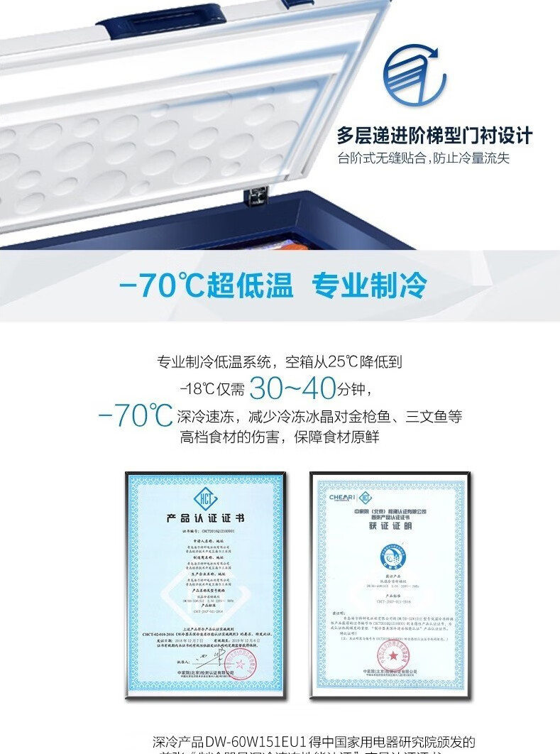Haier large-capacity ultra-low temperature freezer for supermarkets - 65/-70 C cryogenic quick-freezing refrigerator -65 DW-60W451EU1 451L deep-freezing quick freezing + intelligent IoT + locking and thermal insulation