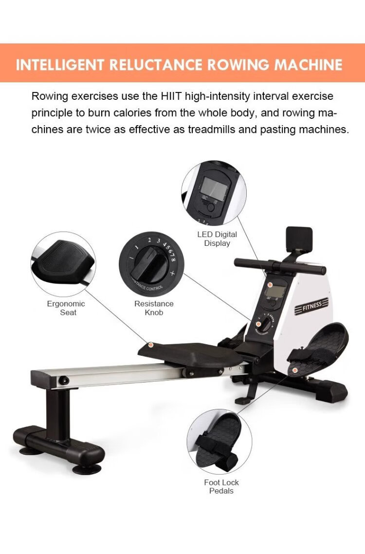 Douge rowing machine household foldable magnetic resistance intelligent adjustable fitness equipment rowing machine aerobic exercise hydraulic rowing machine double track
