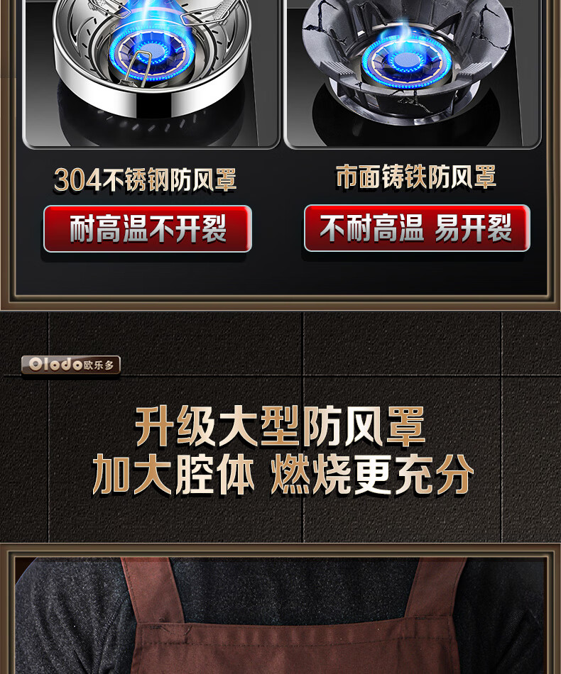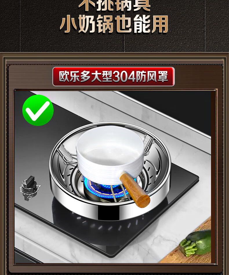 Oraldo German 304 stainless steel fire-proof windproof gas energy-saving cover household gas stove windproof fire-proof cover anti-slip bracket two 304 large windproof cover universal for stoves