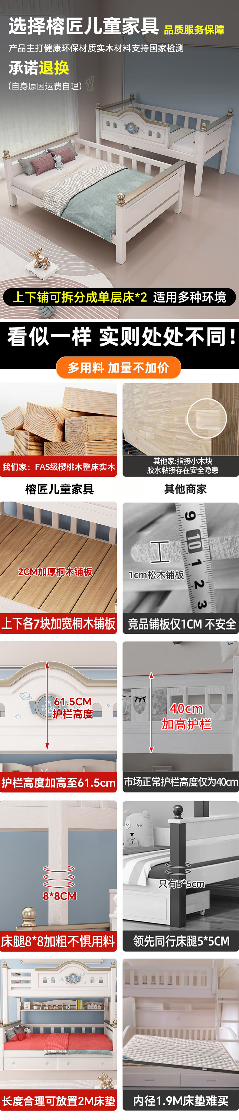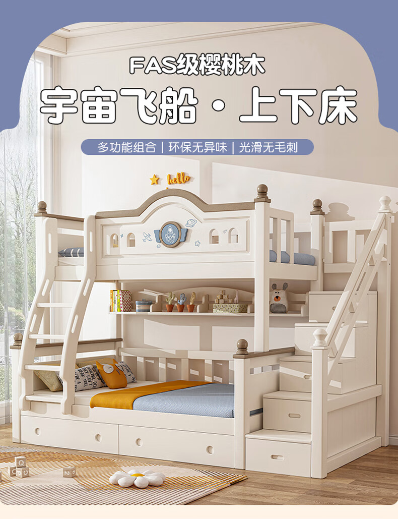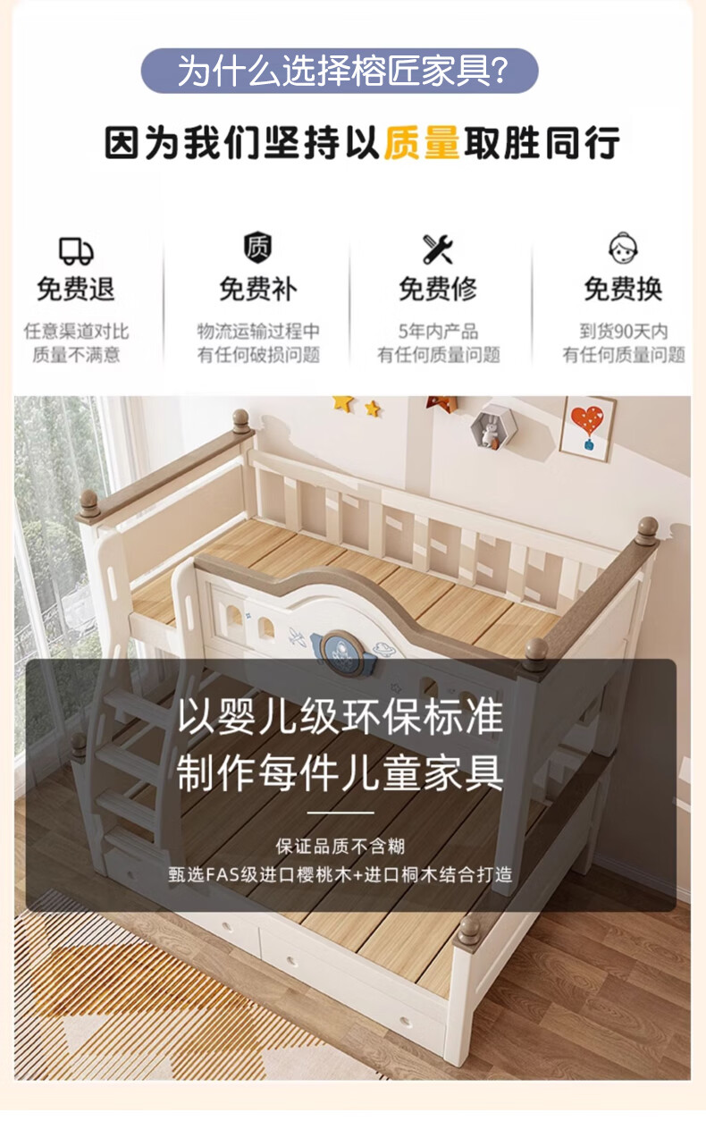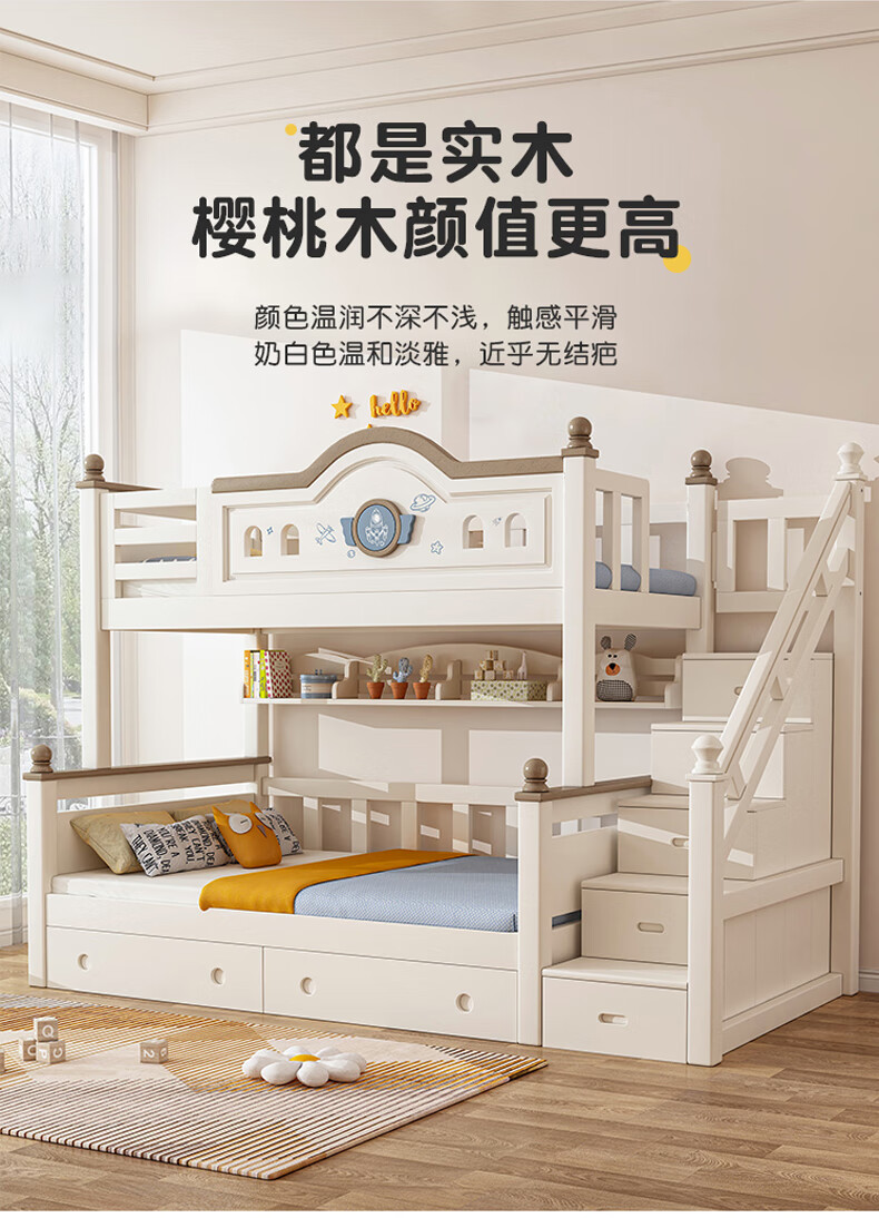 Rongjiang Package Installation Cherry Wood Bunk Bunk Children's Bed Cartoon Boys and Girls High and Low Bunk Storage Bed Ladder + Upper and Lower Mattress FAS Grade Imported Cherry Wood 1200mm*2000mm