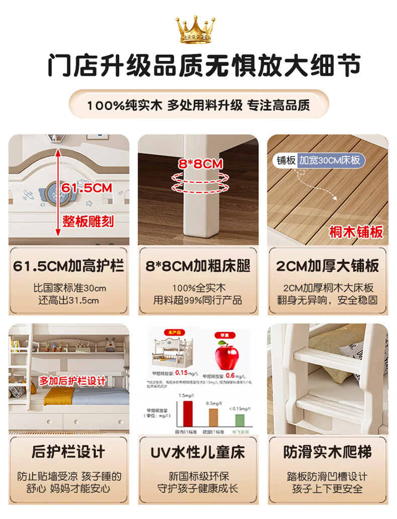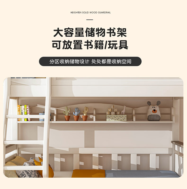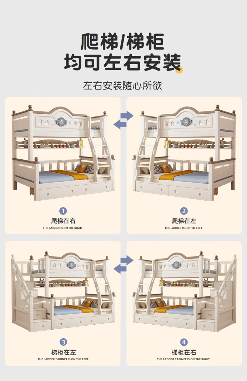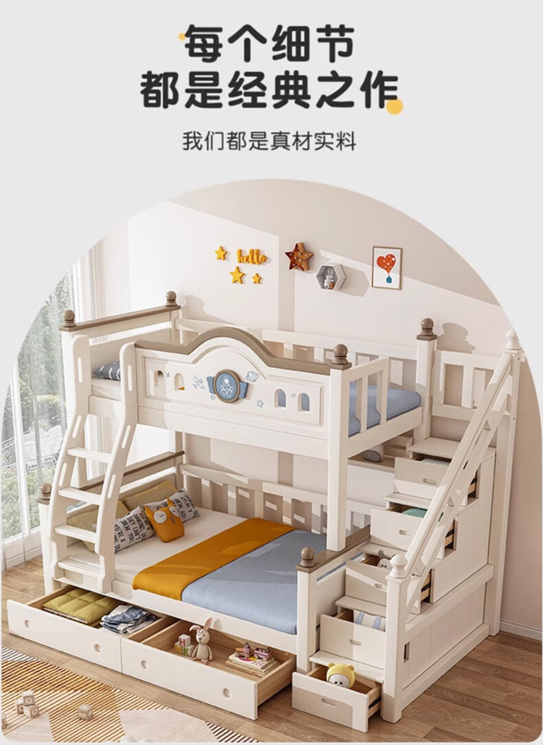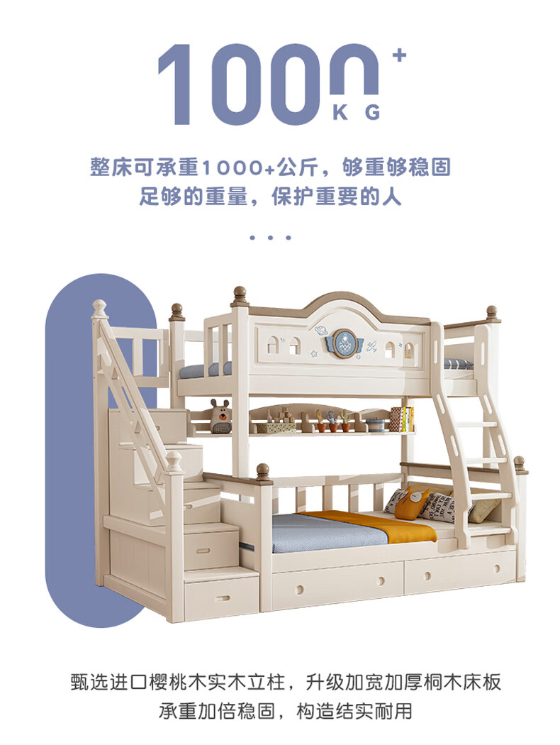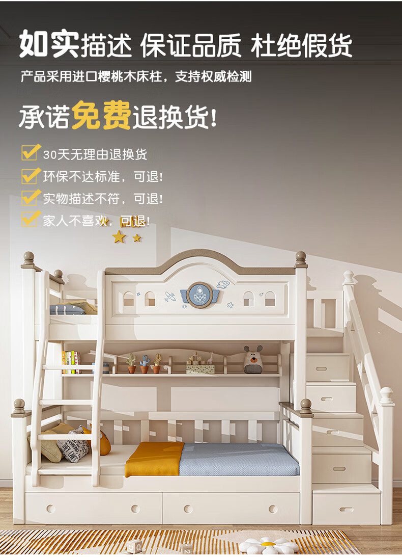 Rongjiang Package Installation Cherry Wood Bunk Bunk Children's Bed Cartoon Boys and Girls High and Low Bunk Storage Bed Ladder + Upper and Lower Mattress FAS Grade Imported Cherry Wood 1200mm*2000mm