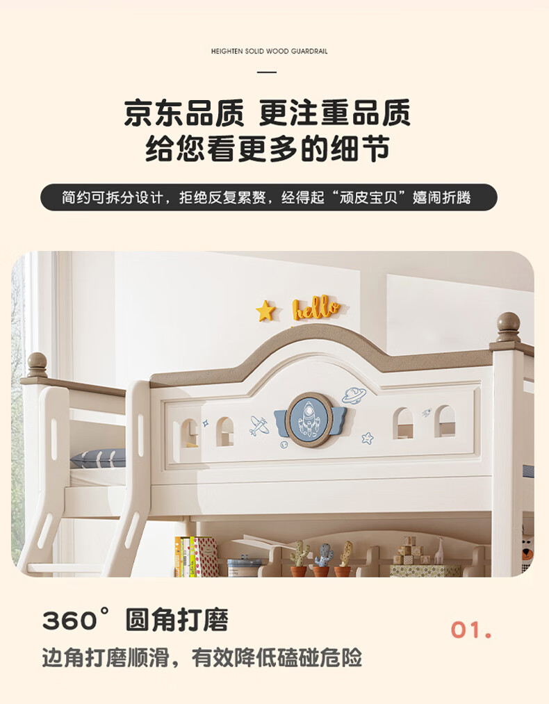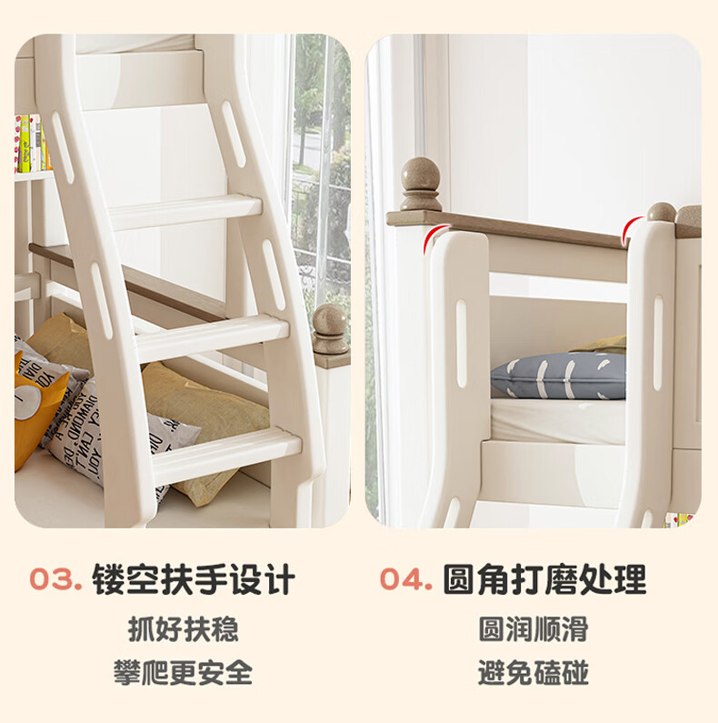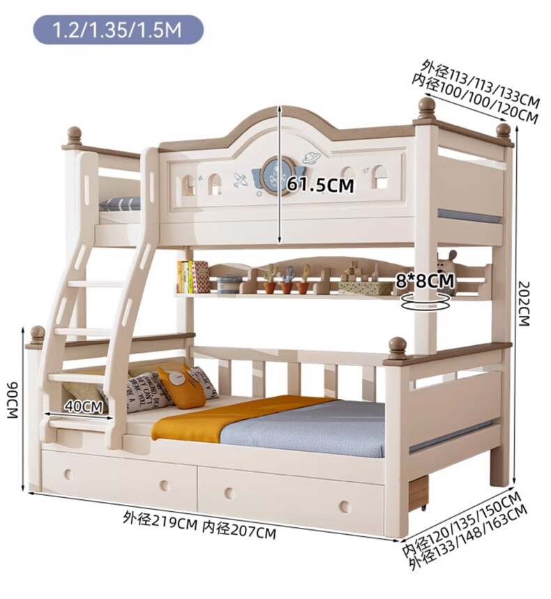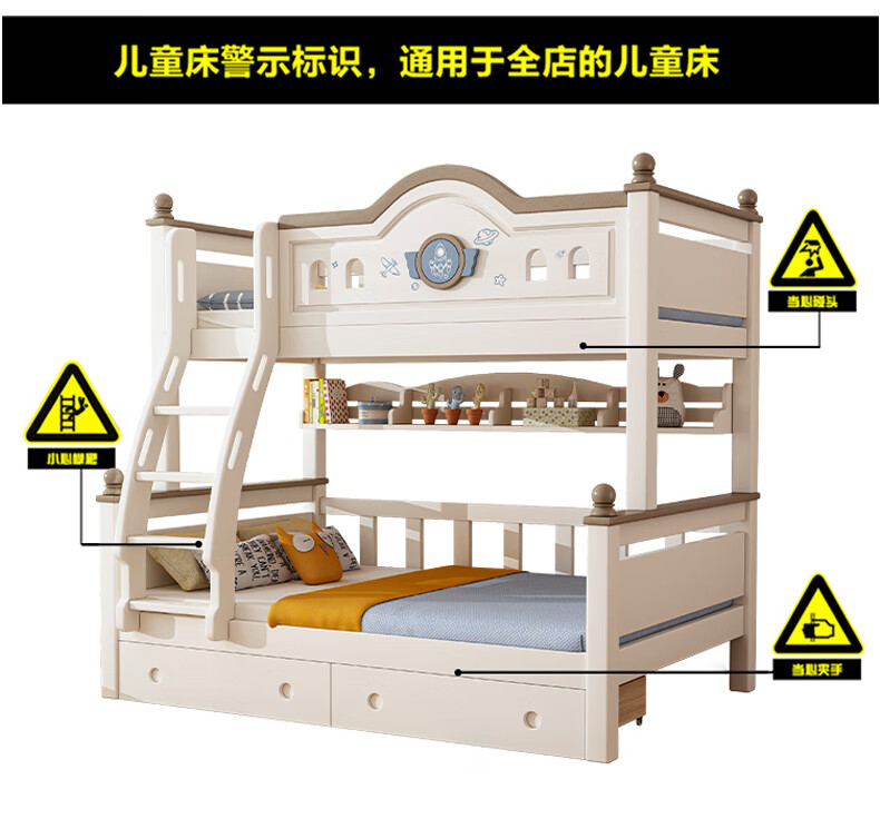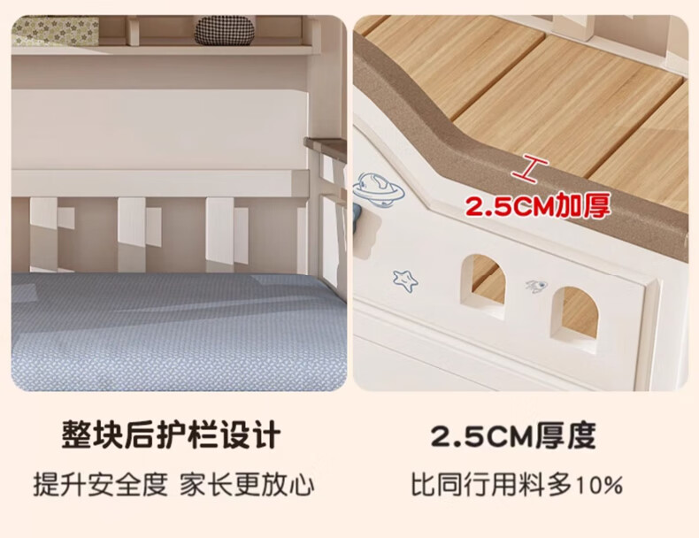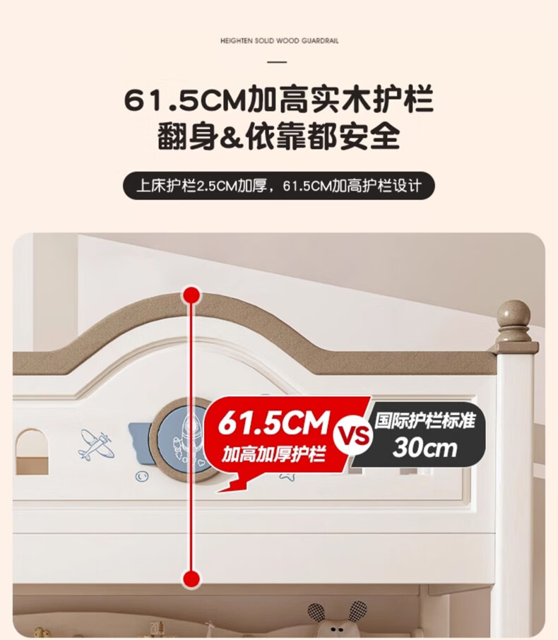 Rongjiang Package Installation Cherry Wood Bunk Bunk Children's Bed Cartoon Boys and Girls High and Low Bunk Storage Bed Ladder + Upper and Lower Mattress FAS Grade Imported Cherry Wood 1200mm*2000mm