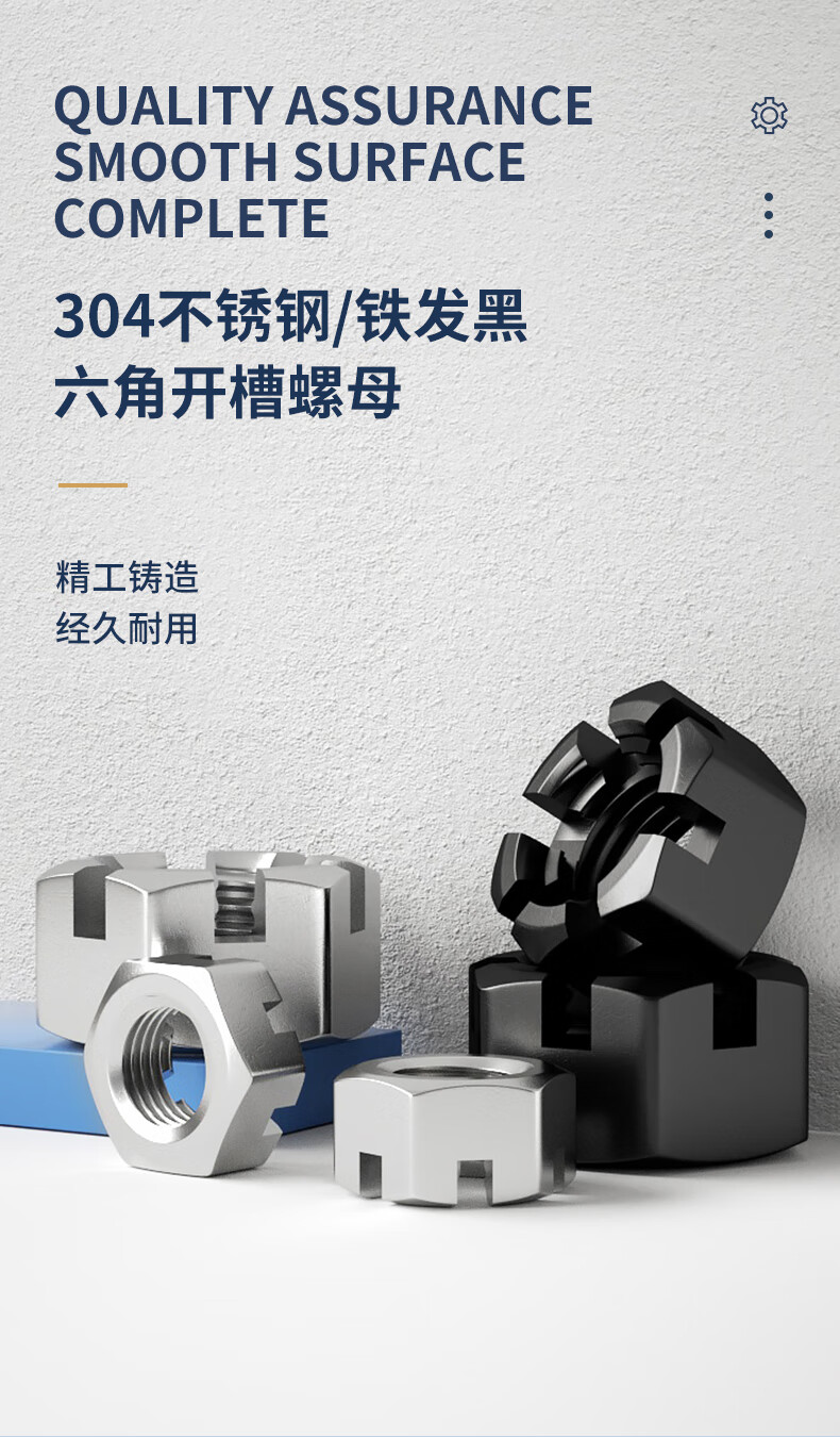 Guwanji GB58 coarse thread/fine thread hexagonal slotted nut carbon steel channel nut slotted screw cap national standard accessories coarse thread M8x1.25 (20 pieces) iron black