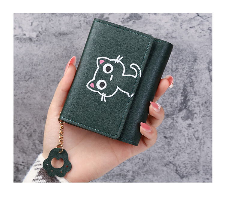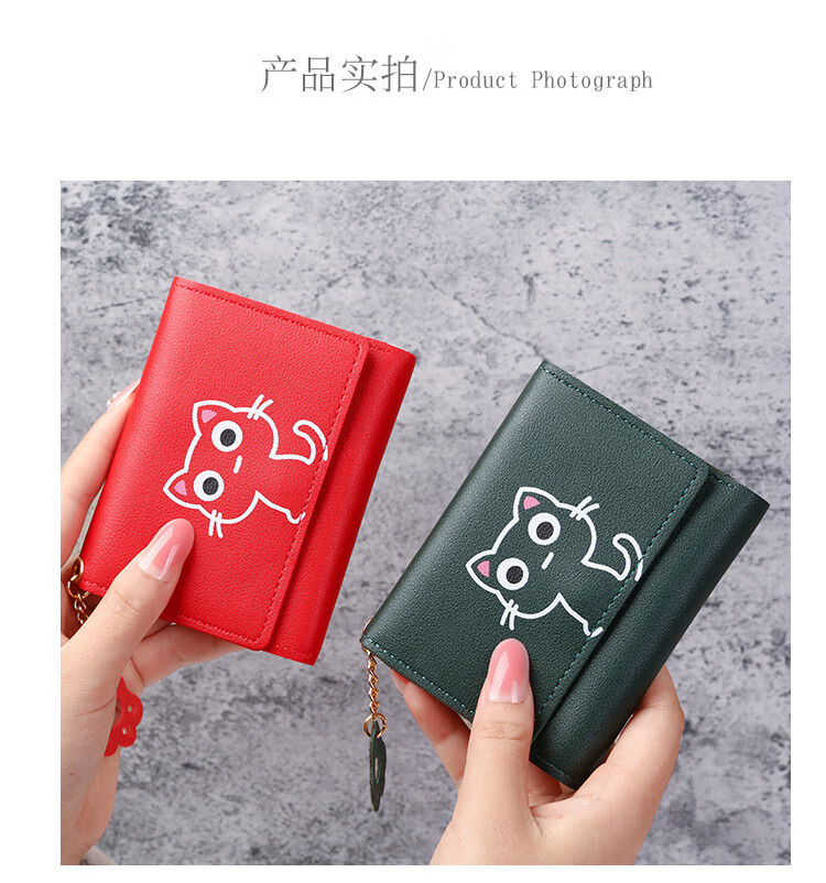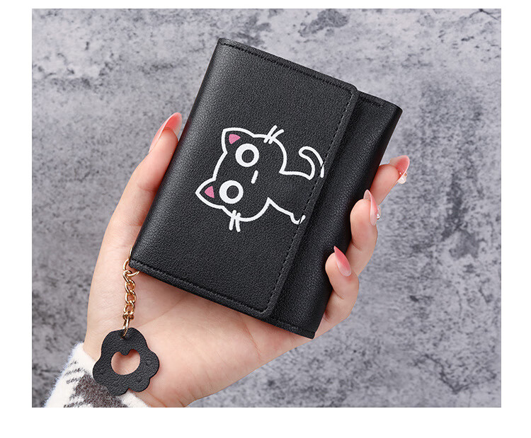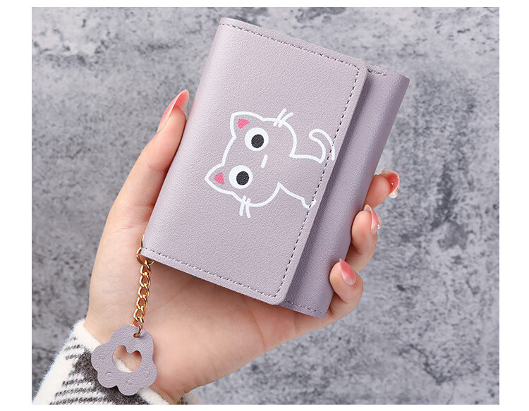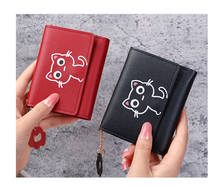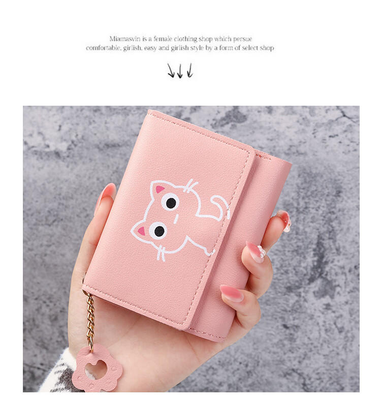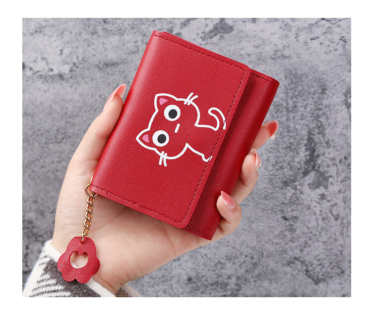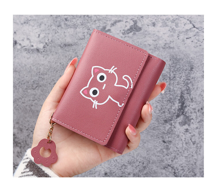 Changyin Cute Cartoon Wallet Women's Short Soft Leather Korean Style Fashion Tri-fold Buckle Small Fresh Student Coin Clip Multiple Card Slots Dark Pink