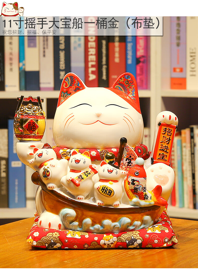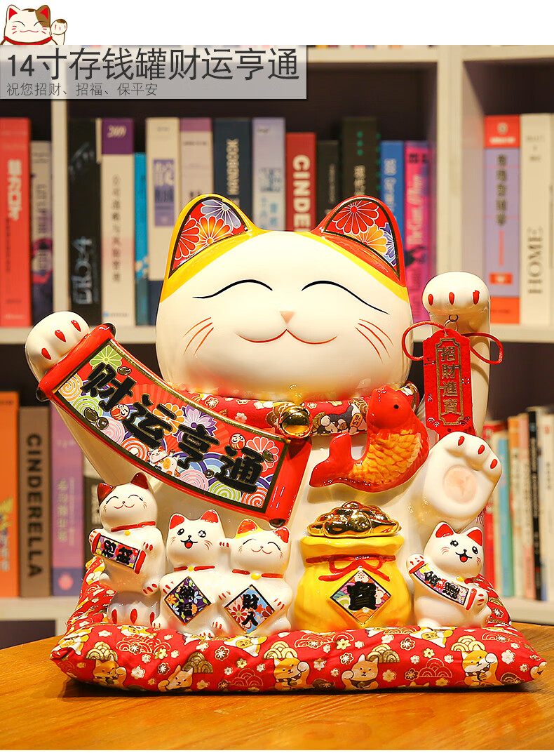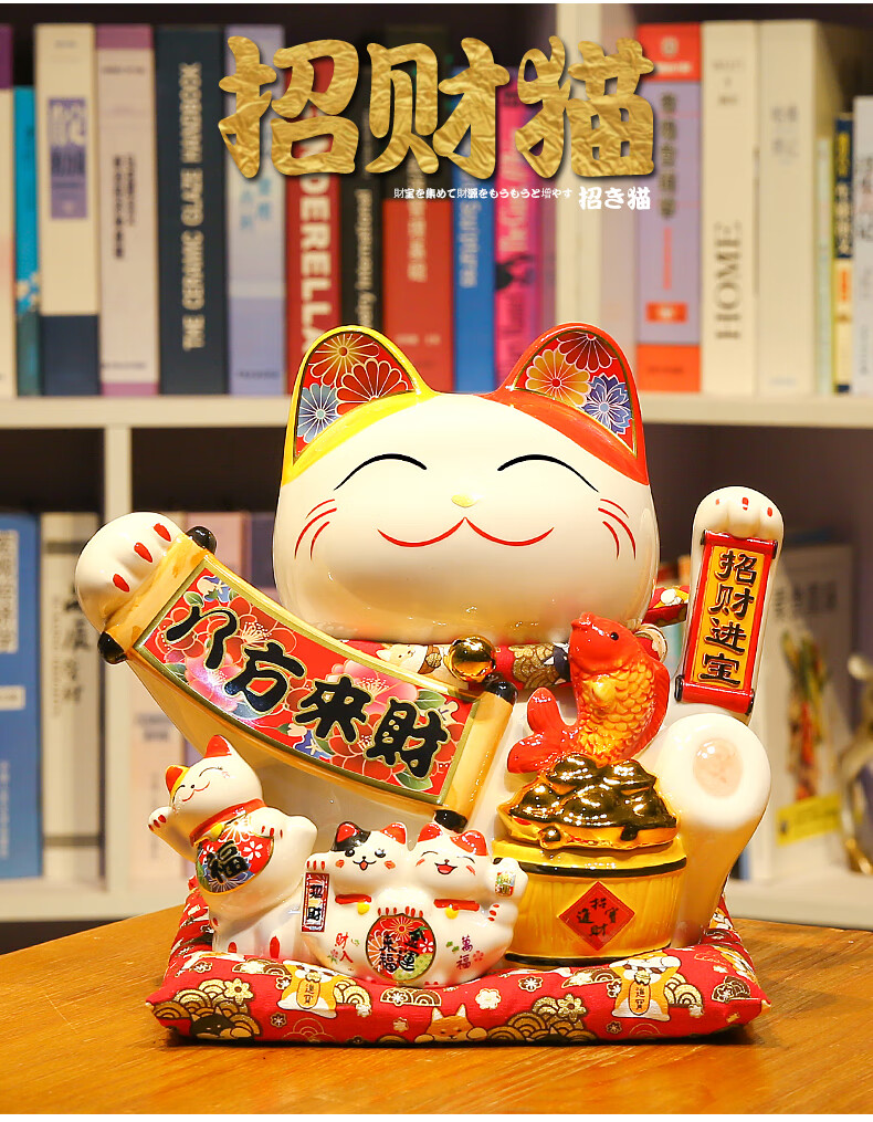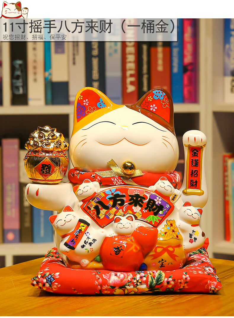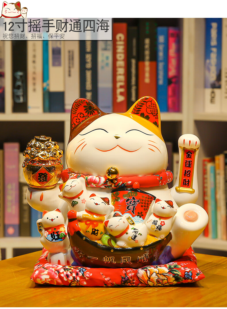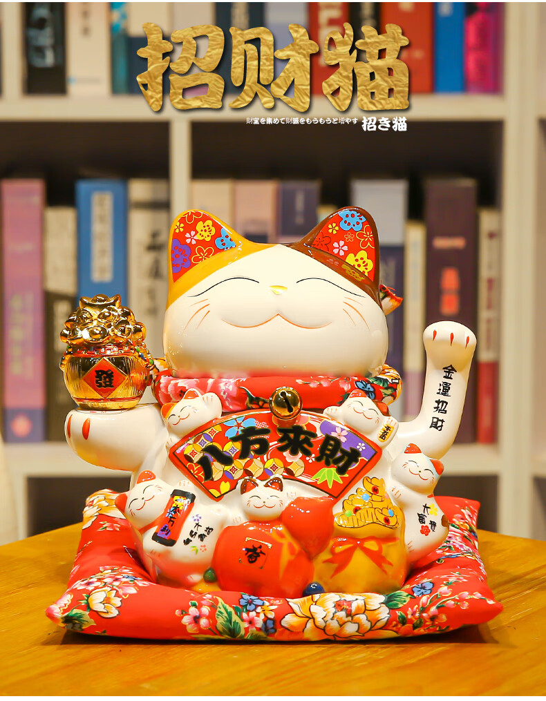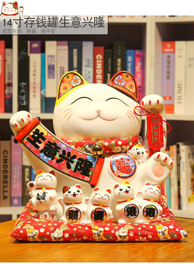 2024 new business prosperity ornaments for restaurants, cat ornaments for opening, lucky cashier, fortune handicraft shop, automatic waving hand, Bafang piggy bank, 14-inch hand waving, prosperity, + free sunglasses, cute kitten