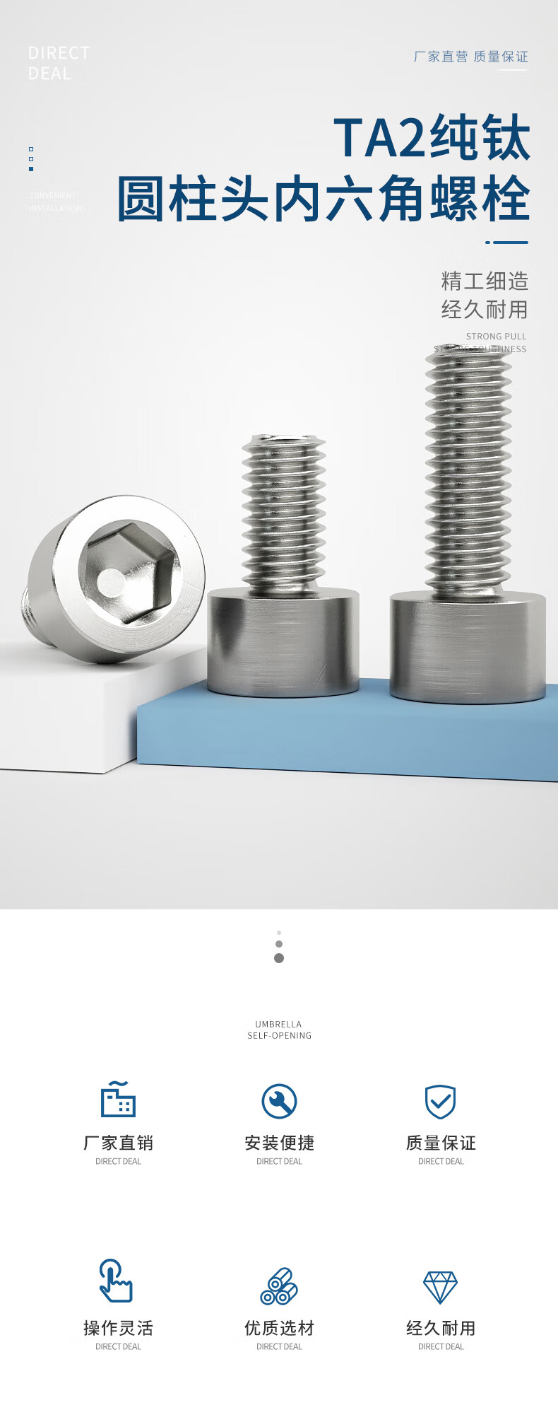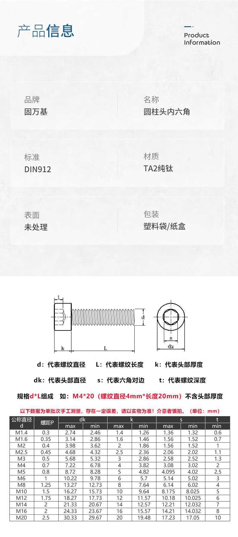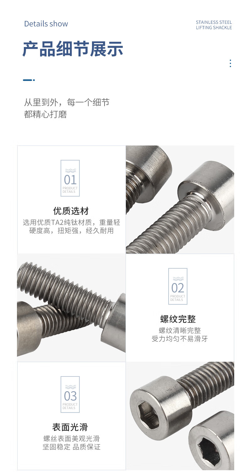 Guwanji pure titanium cylindrical head hexagonal screw DIN912 cup head bolt extended titanium screw screw large national standard fastening M8*45 (2 pieces)