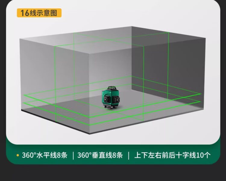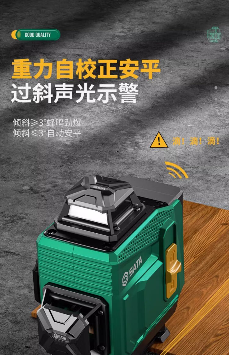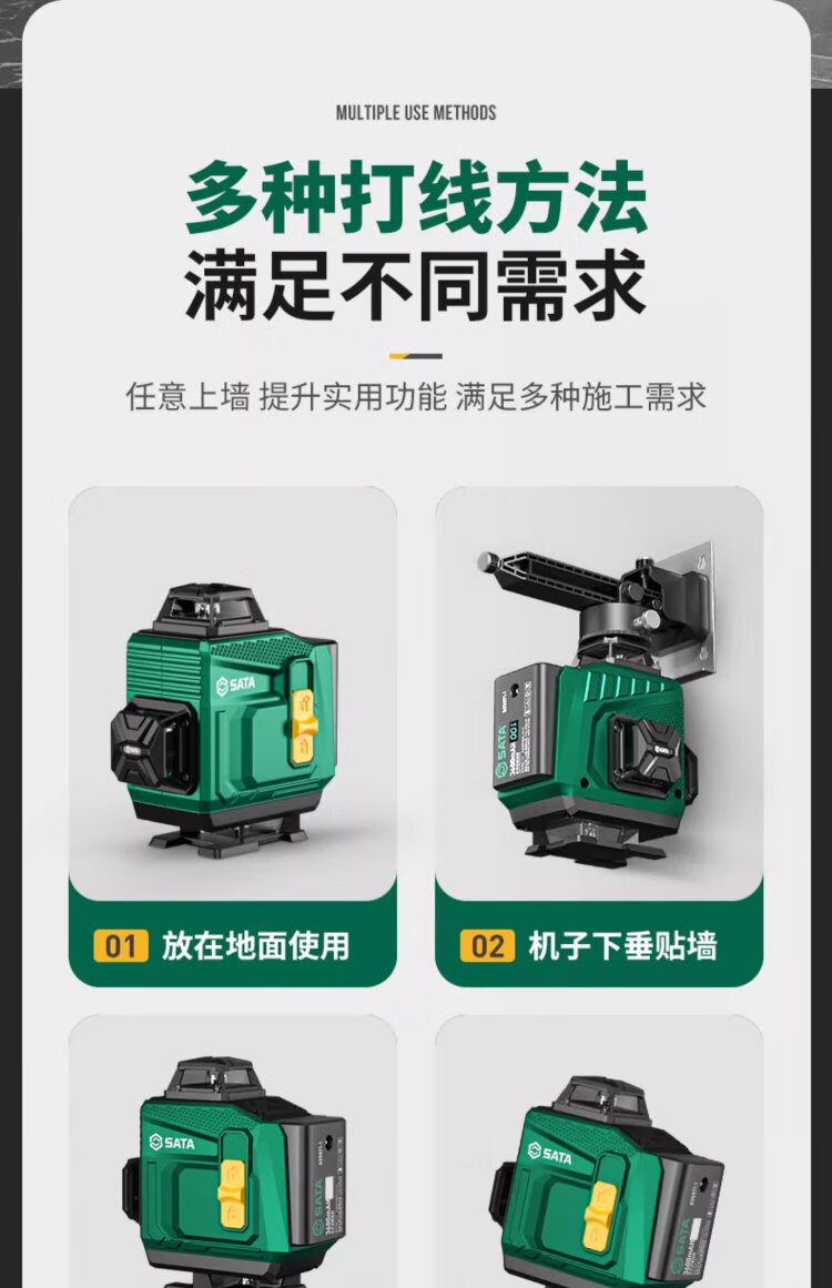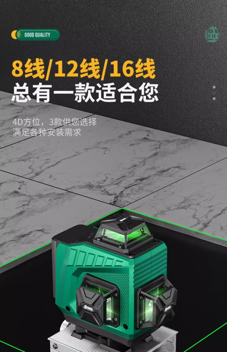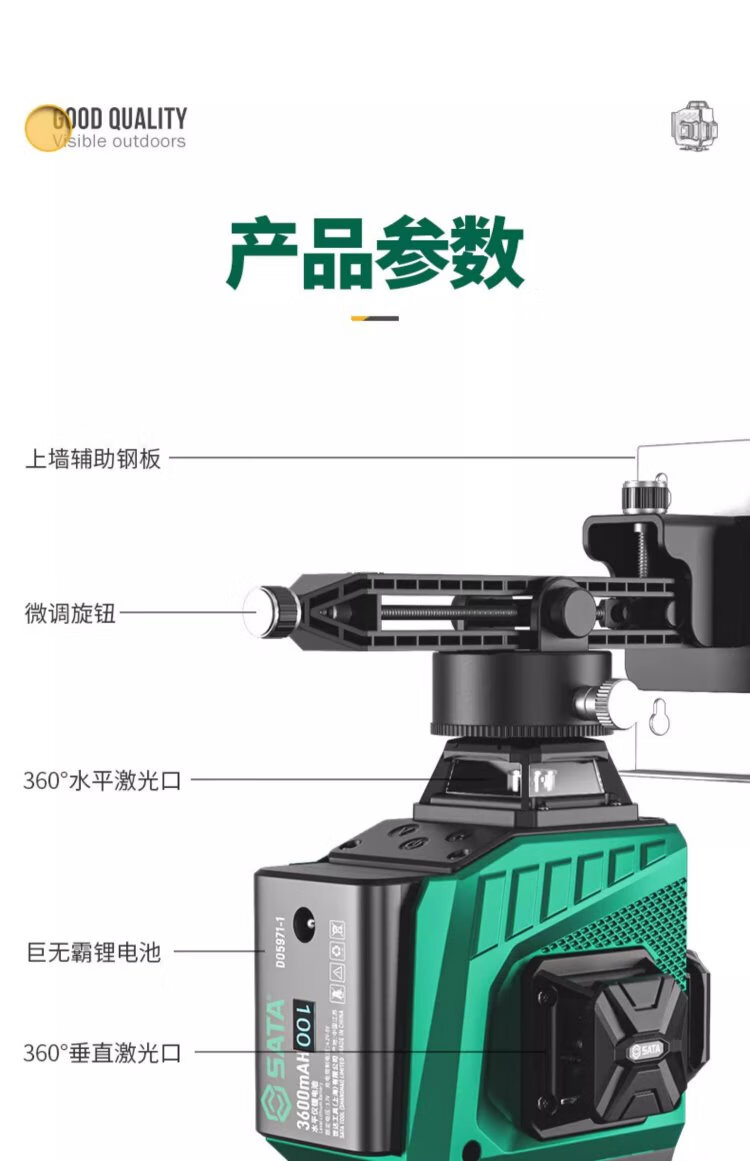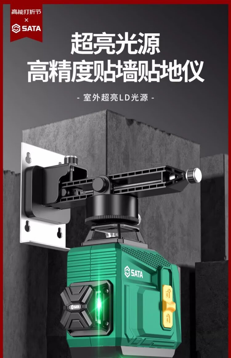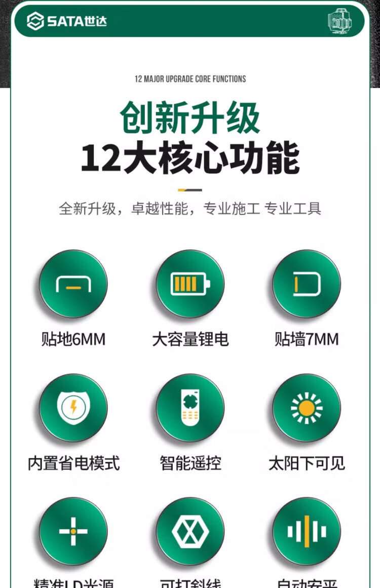 SATA level 12-ray infrared laser high-precision strong light outdoor automatic line-laying floor-mounting and wall-mounting meter D05976B green light 12 lines