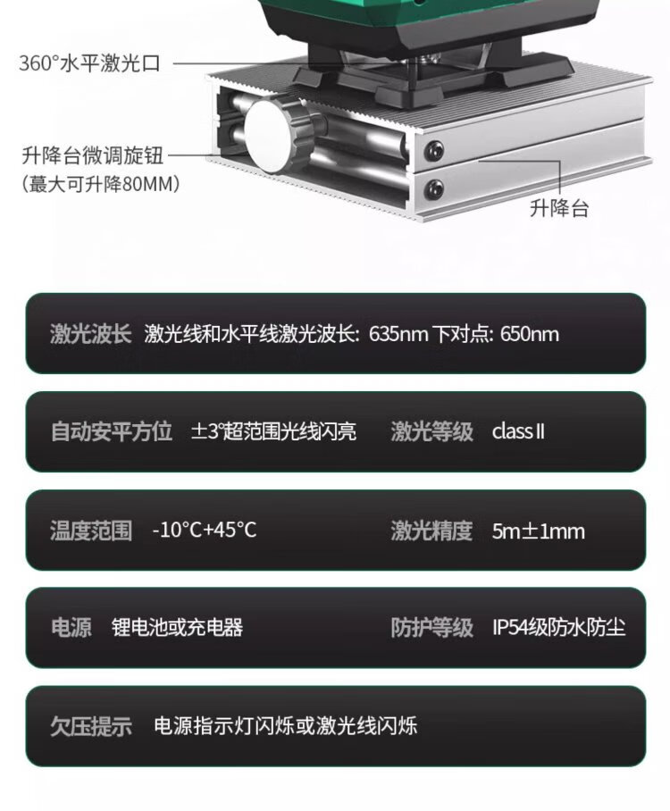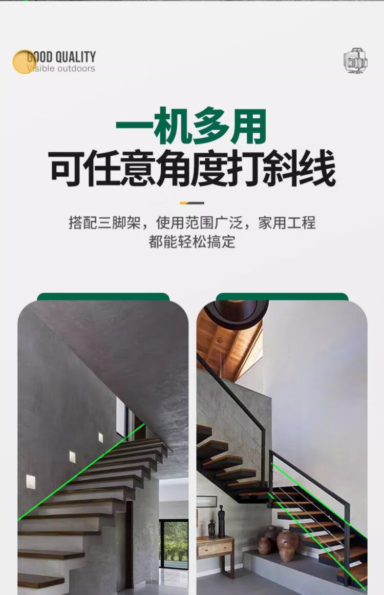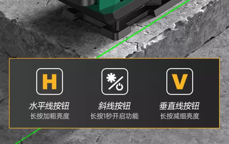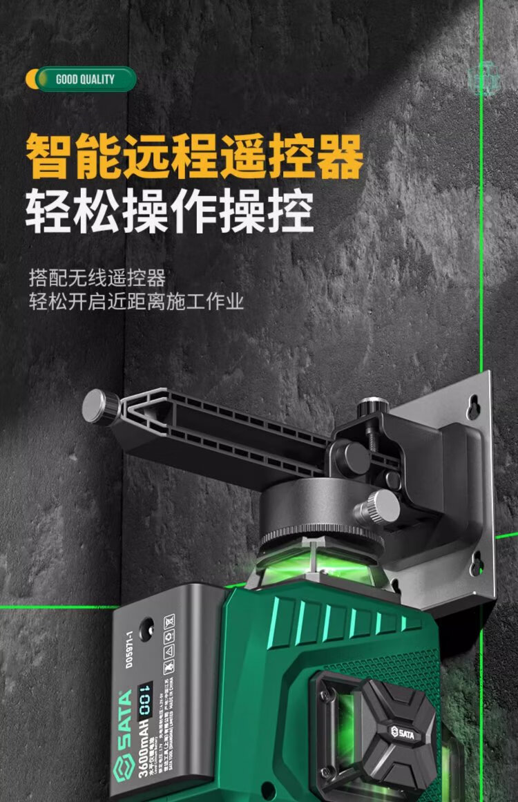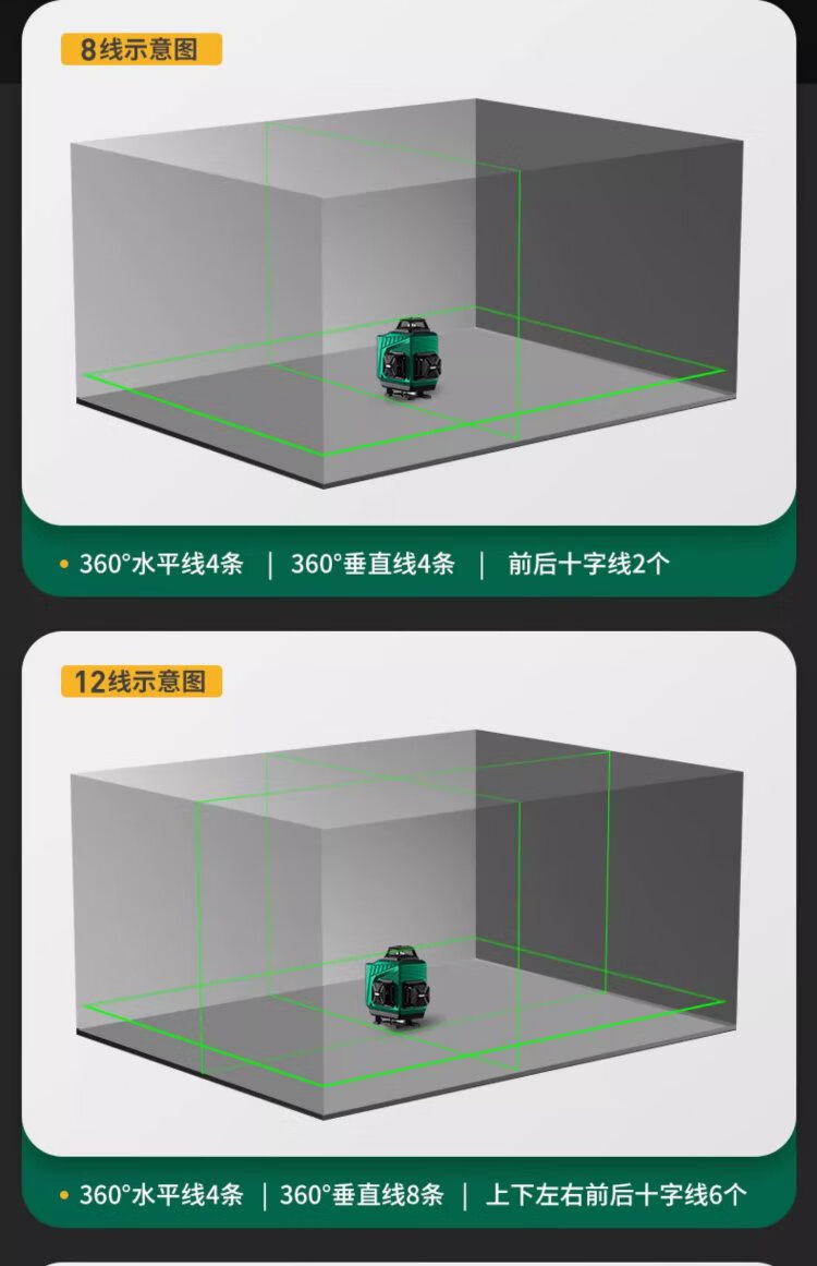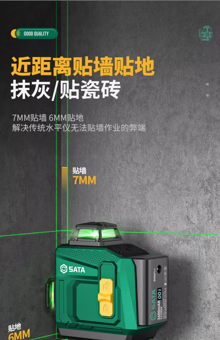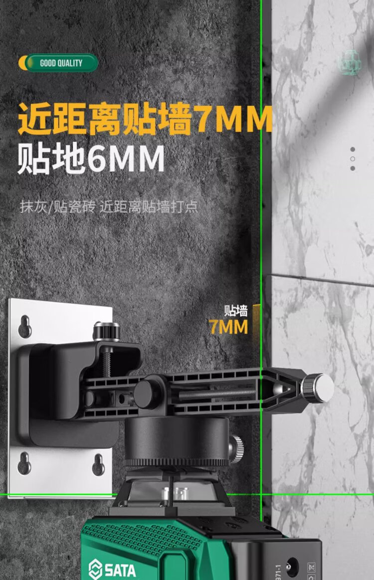 SATA level 12-ray infrared laser high-precision strong light outdoor automatic line-laying floor-mounting and wall-mounting meter D05976B green light 12 lines
