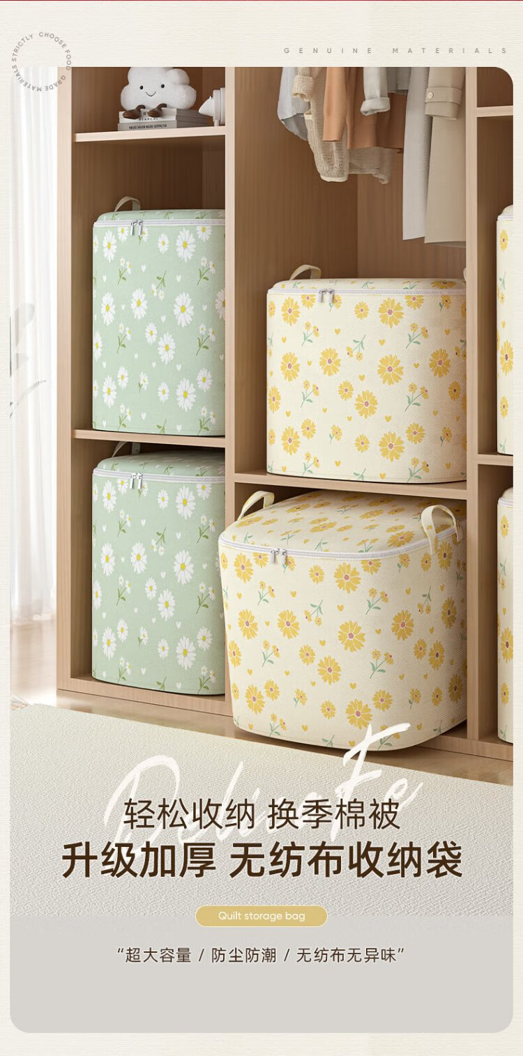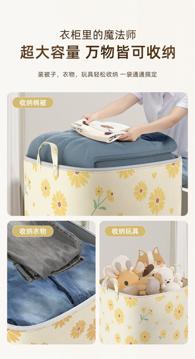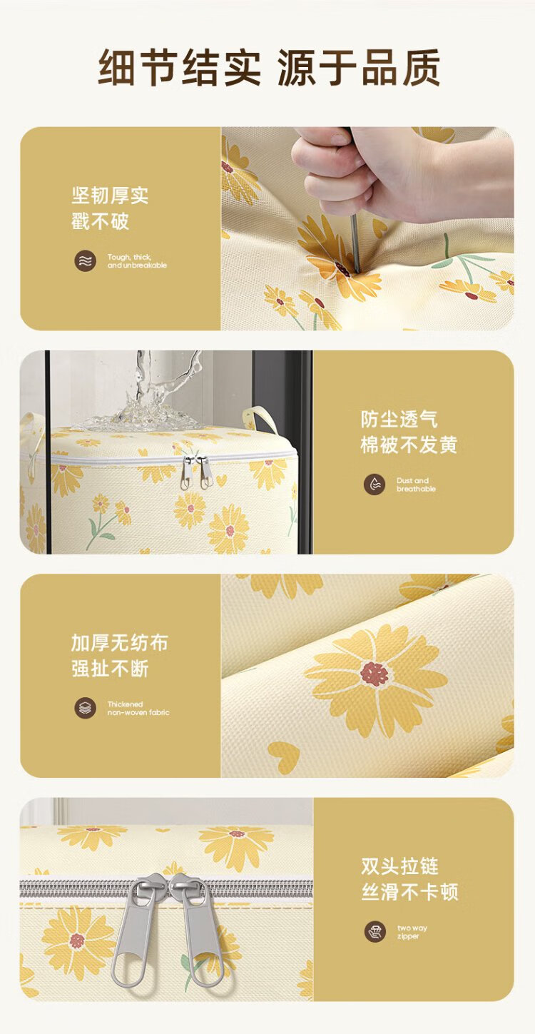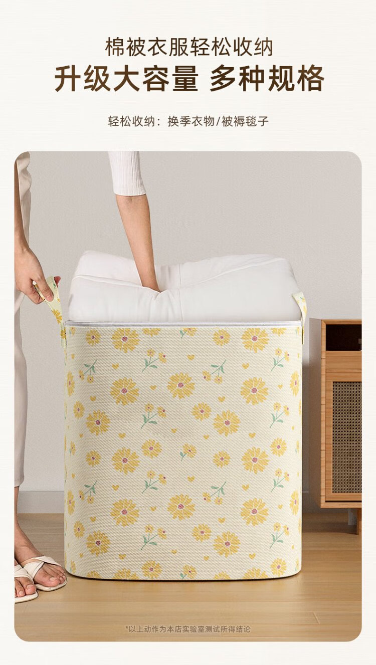 Kaveri Clothes Storage Bag Non-Woven Cotton Quilt Packaging Organizer Large Capacity Waterproof and Moisture-proof Clothing Moving Bag Single Pack Yellow Daisy 100L
