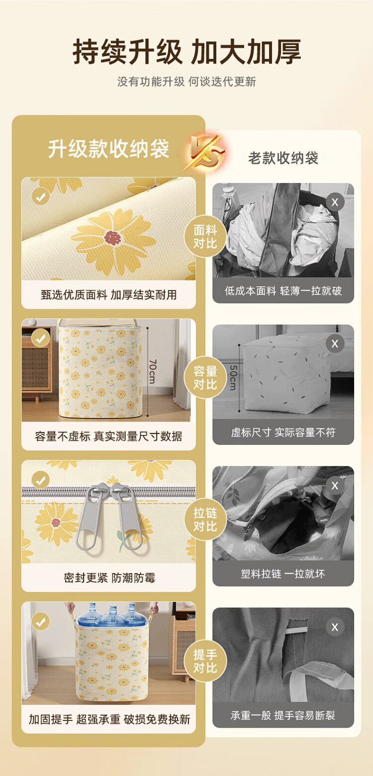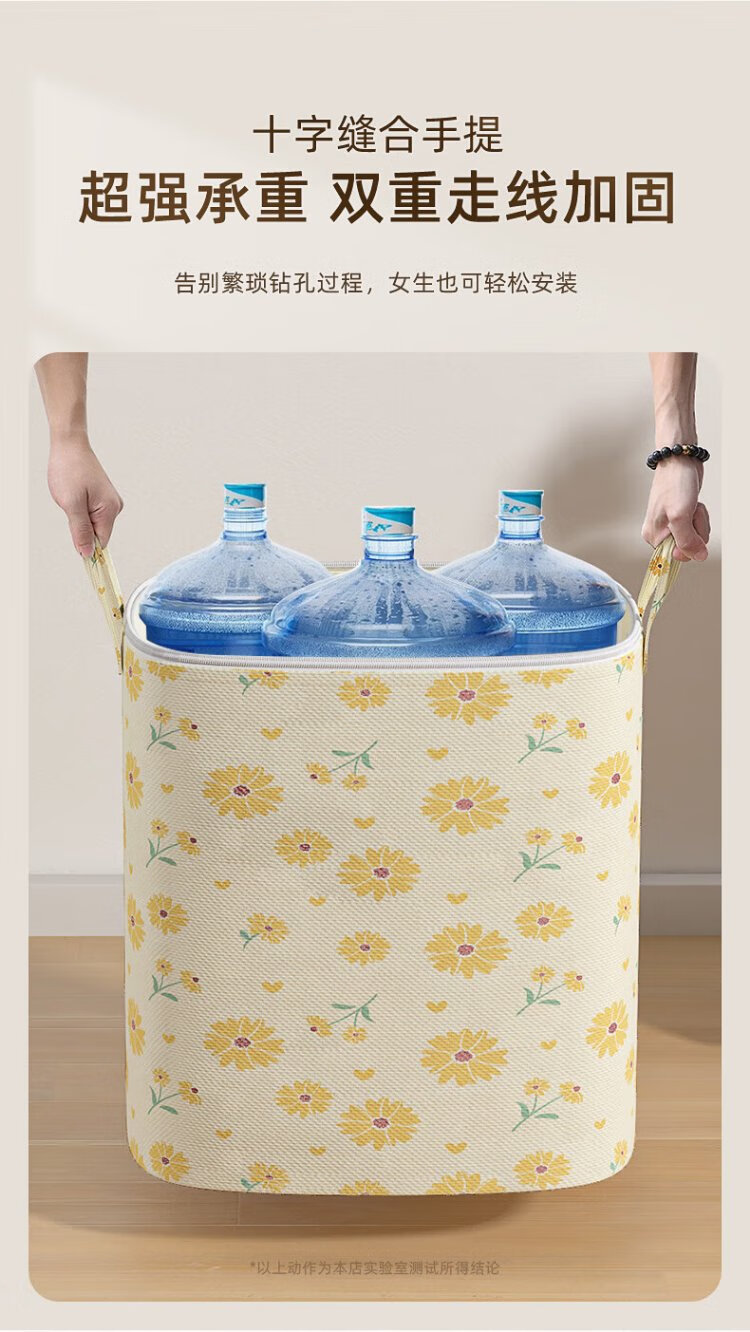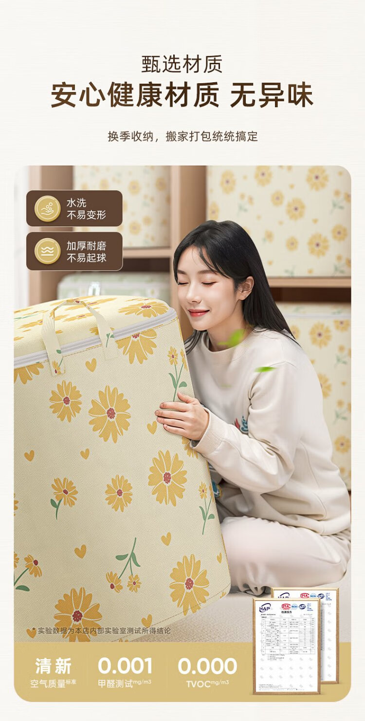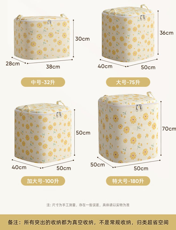 Kaveri Clothes Storage Bag Non-Woven Cotton Quilt Packaging Organizer Large Capacity Waterproof and Moisture-proof Clothing Moving Bag Single Pack Yellow Daisy 100L