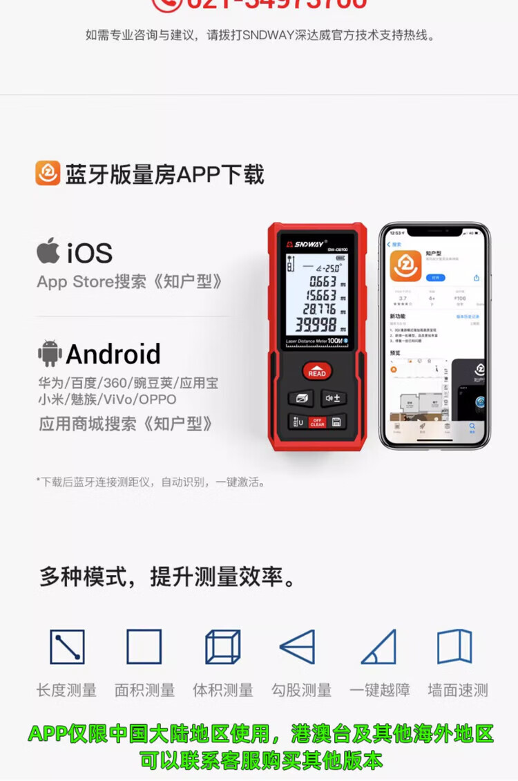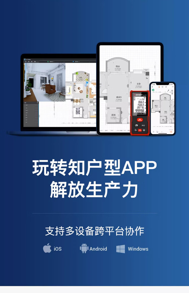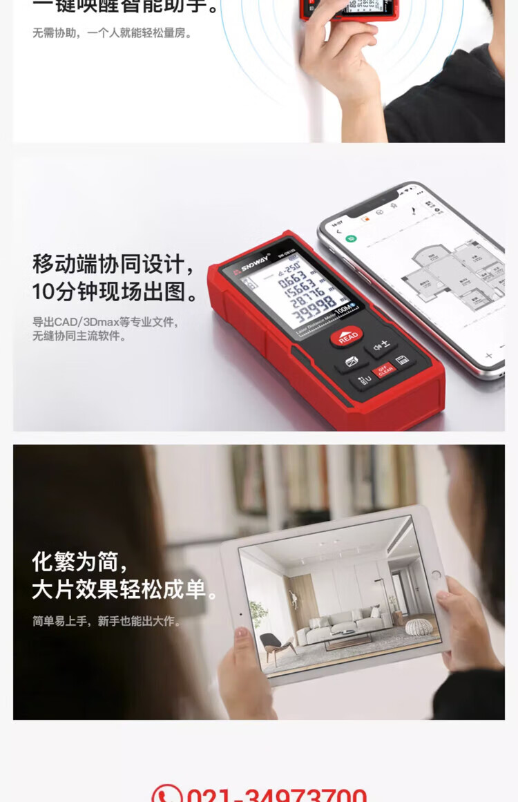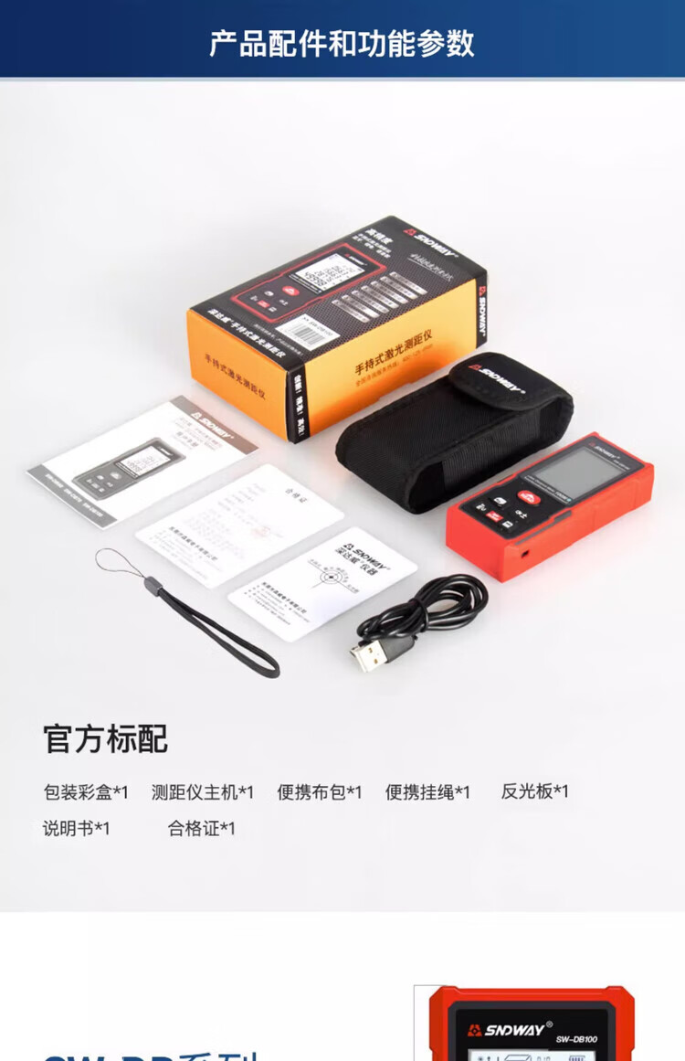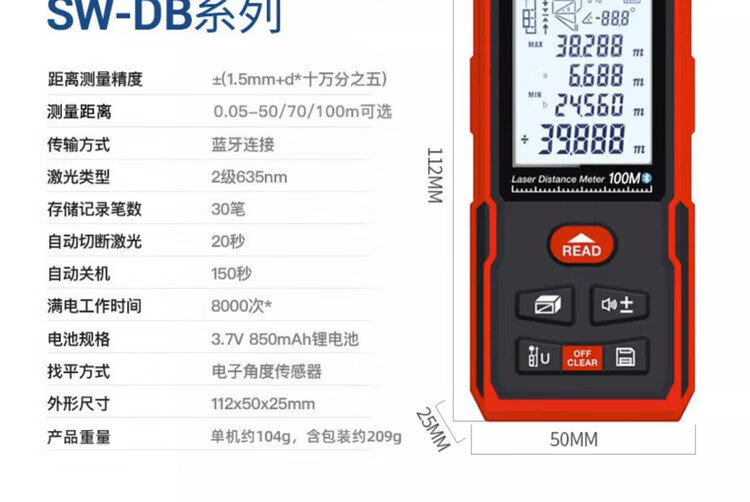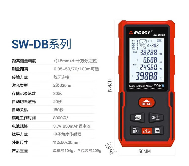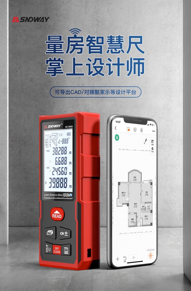 Shendawei distance meter laser ruler high-precision household CAD measuring room instrument electronic infrared measurer distance home SW-DB 50 meters Bluetooth model CAD room measuring version