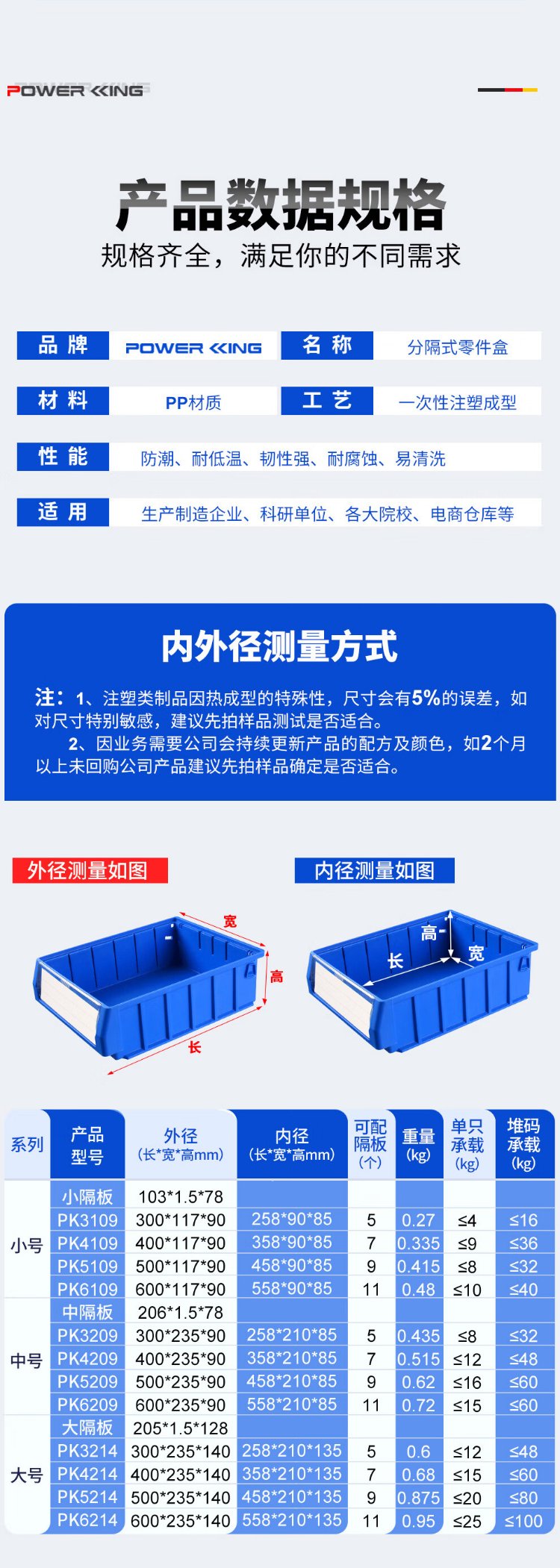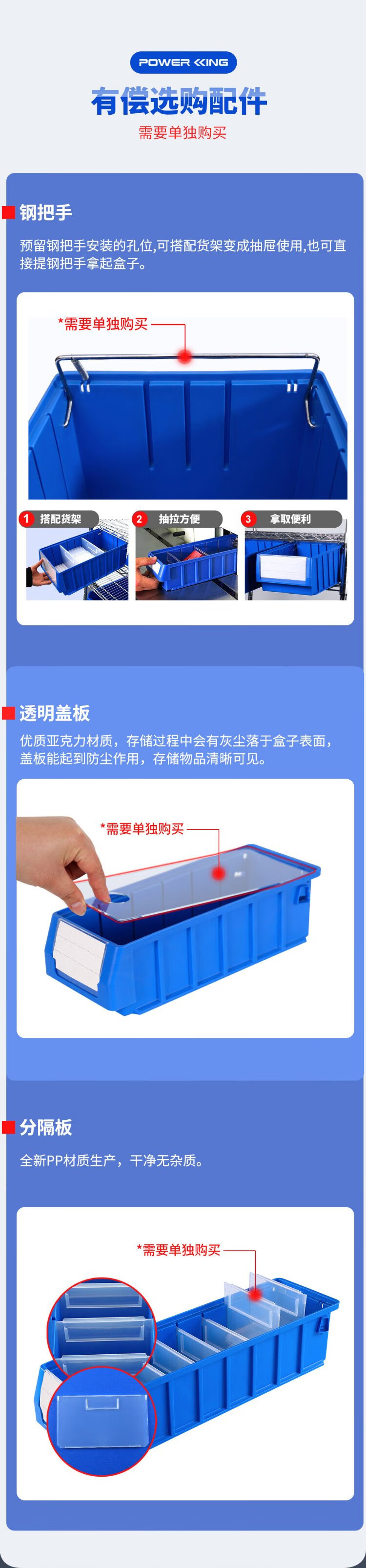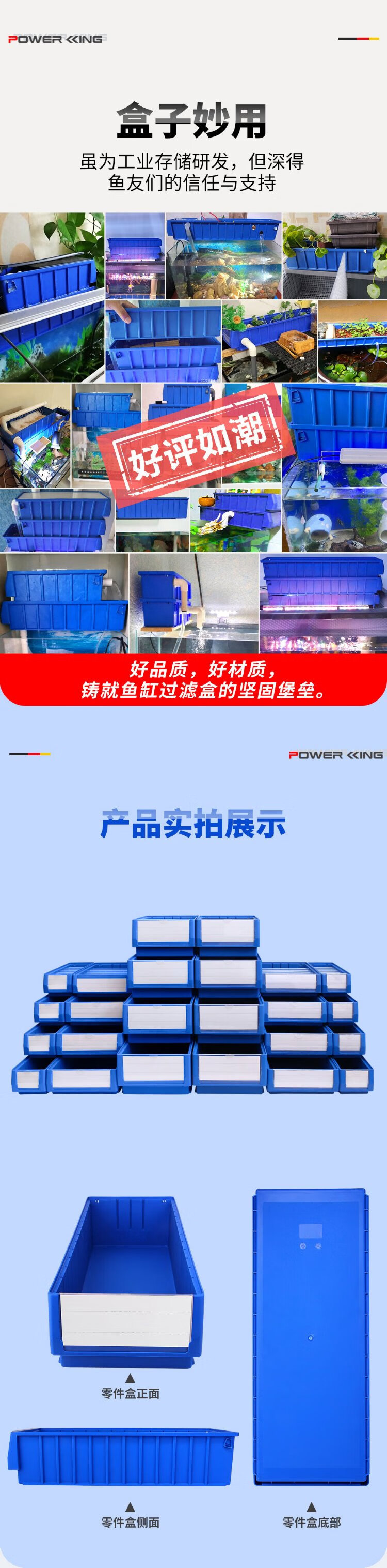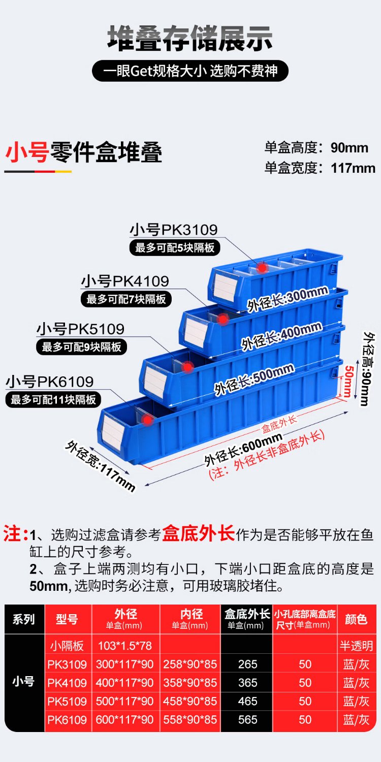 Liwang POWERKING separated parts box plastic strip filter box rectangular turnover box storage box hardware screw tool box small size 300*117*90 (no partition) blue