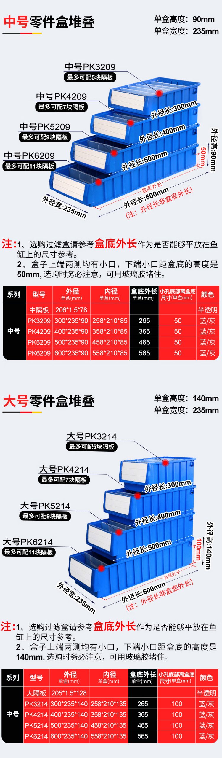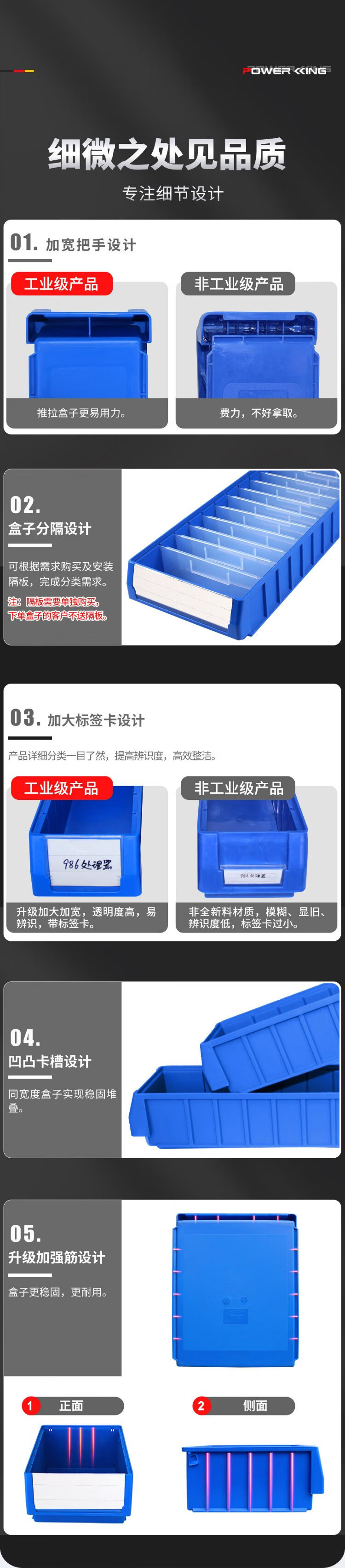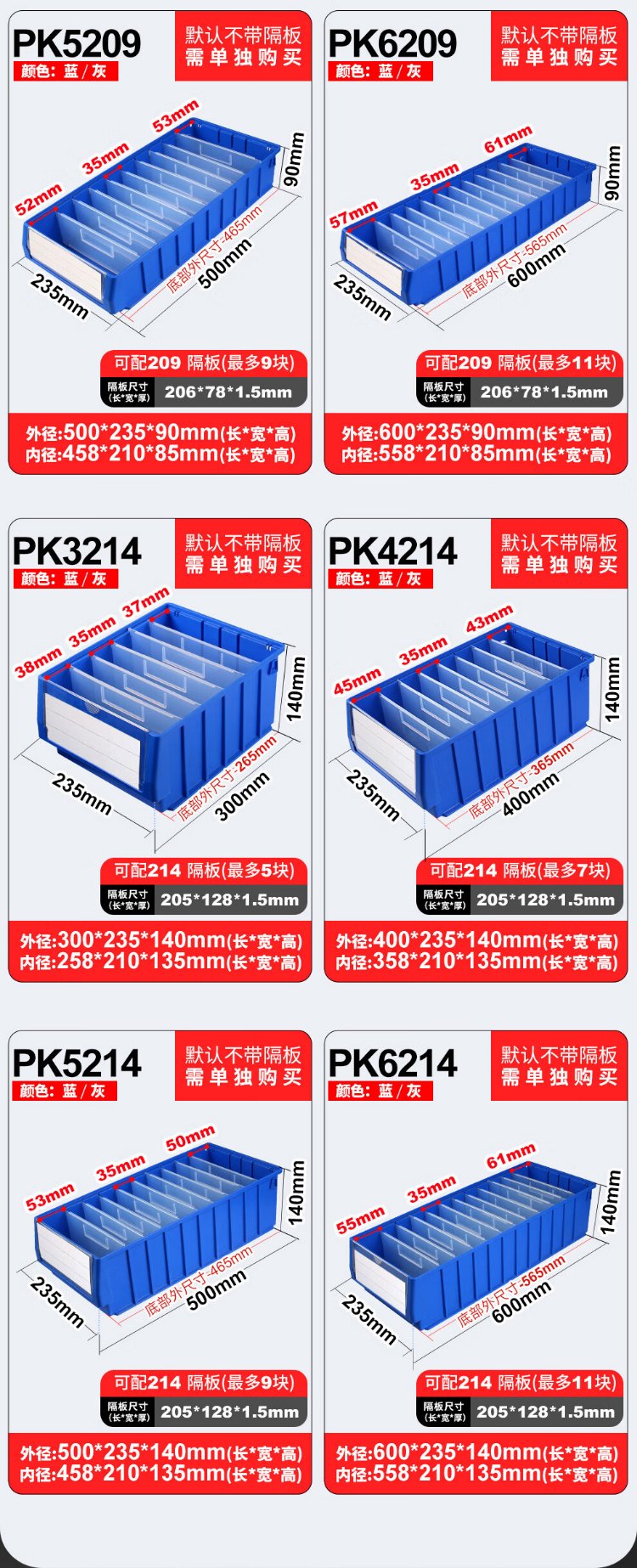 Liwang POWERKING separated parts box plastic strip filter box rectangular turnover box storage box hardware screw tool box small size 300*117*90 (no partition) blue