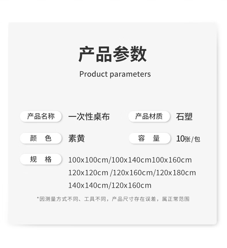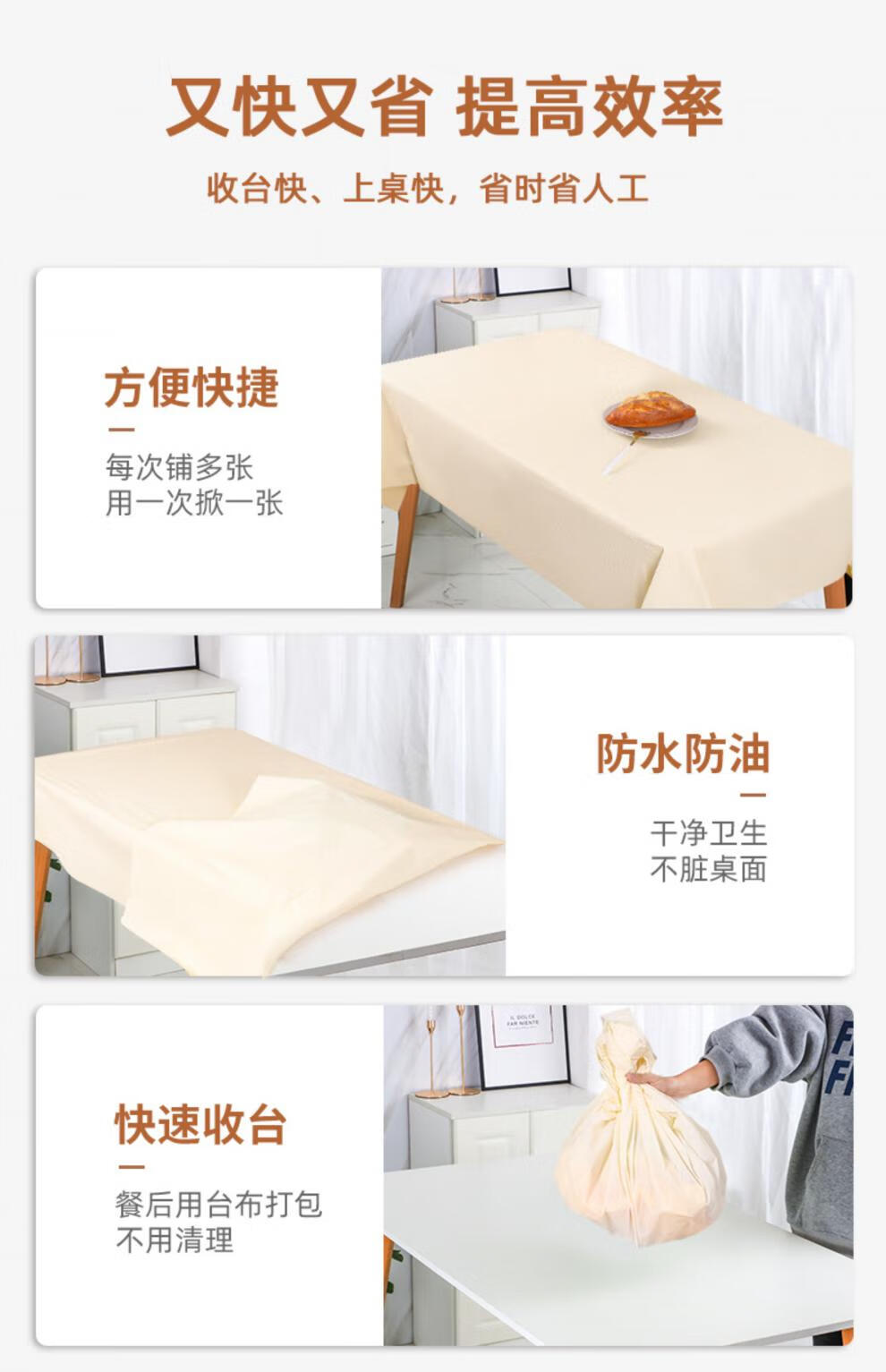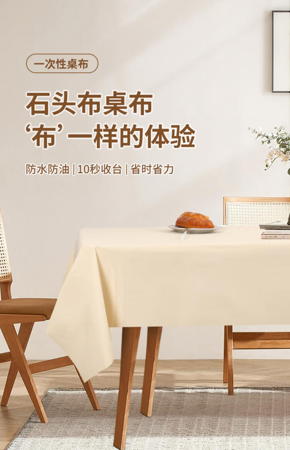 Beiyou disposable tablecloth stone cloth disposable tablecloth rectangular waterproof and oil-proof thickened hotel dining room commercial delivery versatile light yellow 1.0x1.4 meters 10 sheets stack