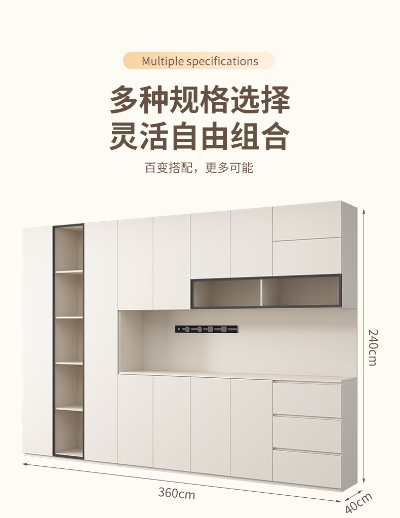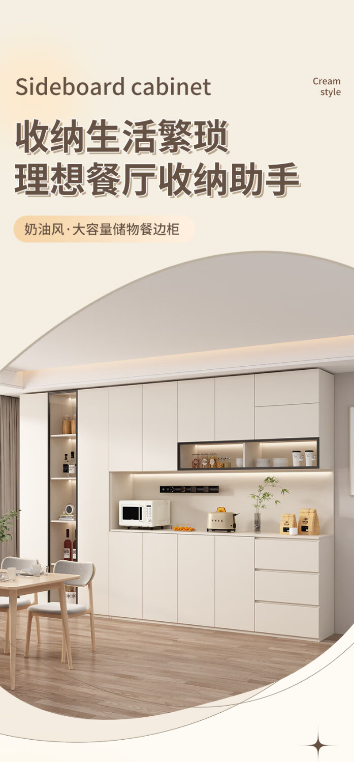 Honghuai tree birch cream style solid wood sideboard against the wall integrated living room wine cabinet multi-functional storage kitchen cabinet customization E type 160 40 240
