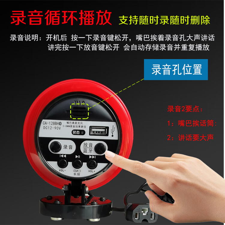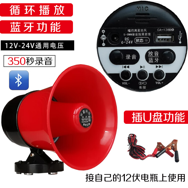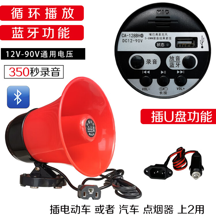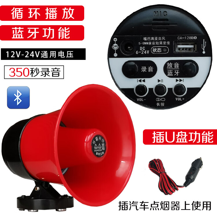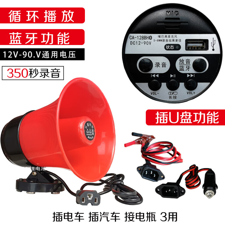 Bluetooth car loudspeaker loudspeaker for street stalls shouting loudspeaker high-pitched charging recording loudspeaker Bluetooth model for plug-in car port + battery clamp cord 128