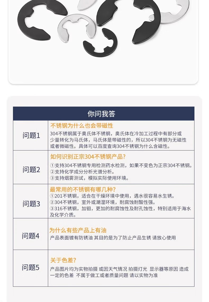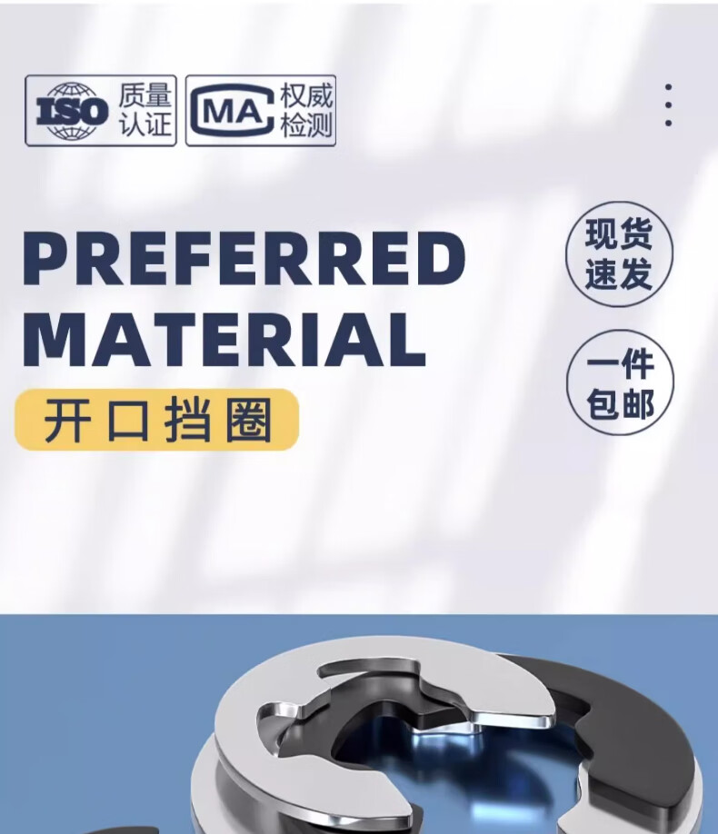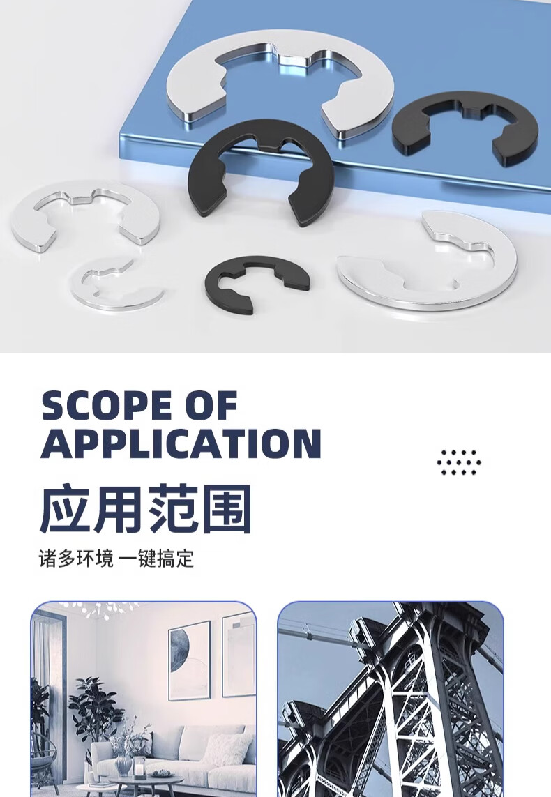 Fengji circlip e-type circlip 304 stainless steel open buckle M1.2M2.5M3M4M5M6M8M10M15 8*1 50 pieces 304 material