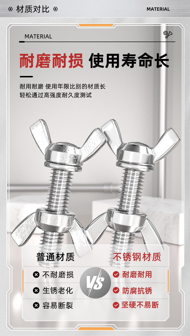 Fengji 304/316/201 stainless steel butterfly screw nut butterfly type horn bolt ingot hand screw set 304 M3*6 5 sets