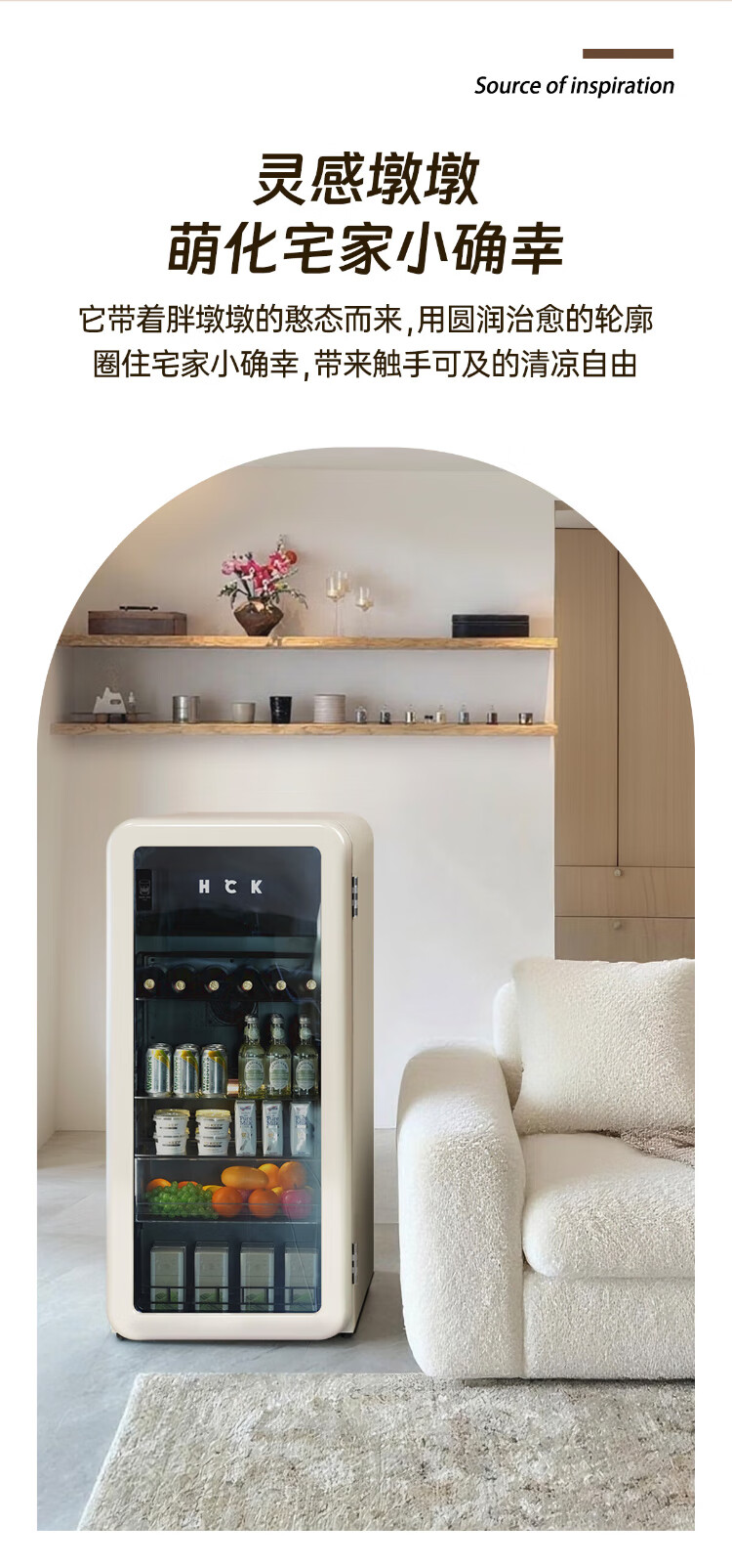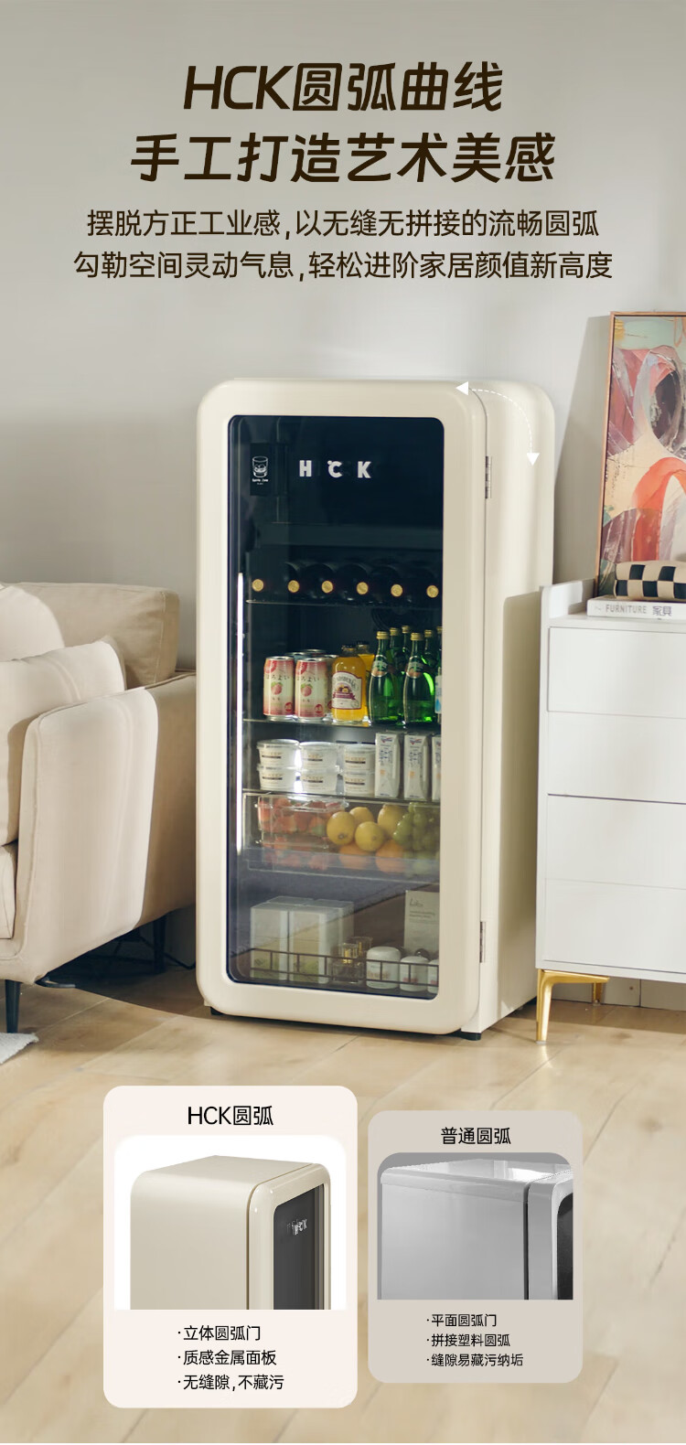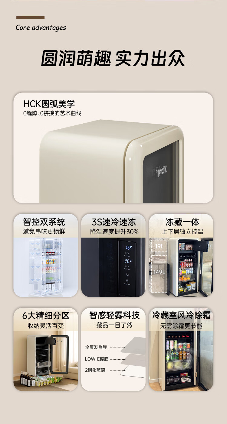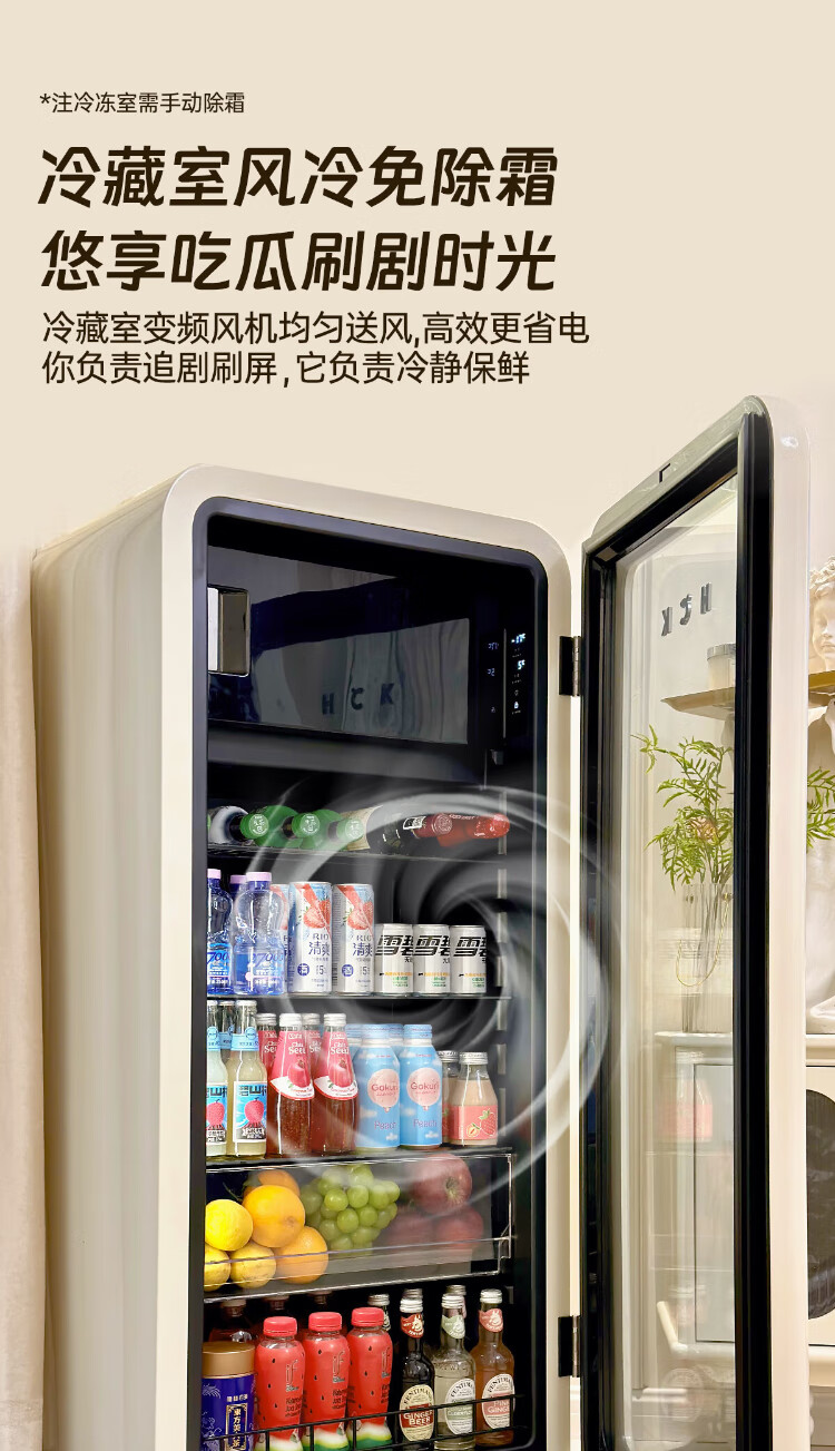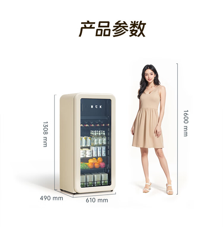 HCK Husky National Subsidy 168L Refrigerator Embedded Ice Bar Level 1 Energy Efficiency Home Retro Wine Cabinet Frozen Storage Dual Temperature Zoned Freezer Fruit Fresh Cabinet Dundun Bar Frozen and Refrigerated - Milk Tea Color 168L Dundun Bar 1.0