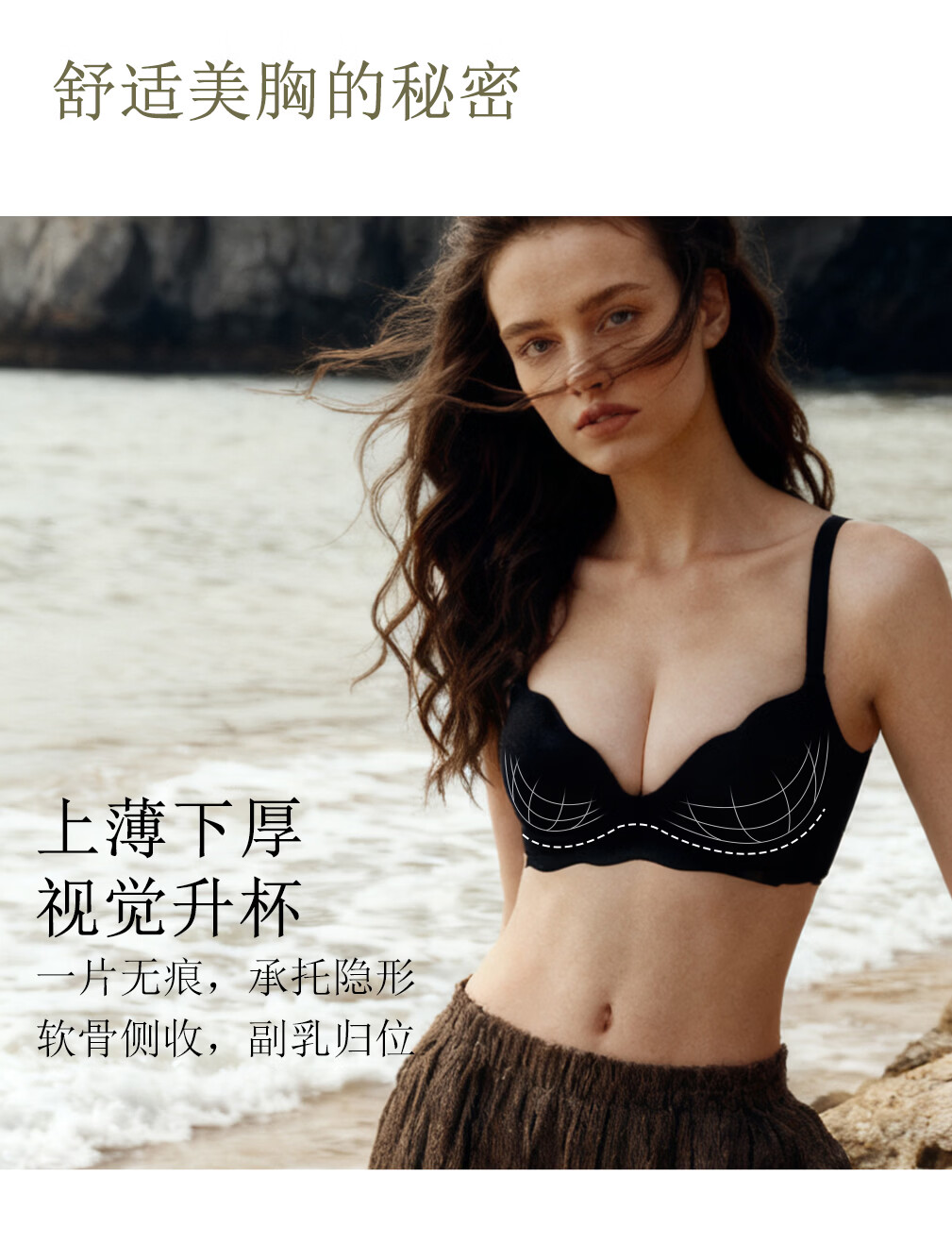 Gainreel Best Selling Nude Seamless Underwear Women's Liquid Foundation Underwear Small Breast Push-up Sexy Underwear Wireless Bra Moon Night Black Bra 70A (If the suit is photographed, the underwear comes with S)