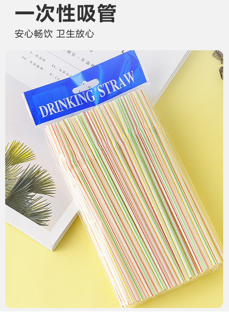 Disposable single straw for adults and children to drink water and milk, food-grade fine straws, replaceable plastic milk tea thick straws, 100 pieces, bendable colorful straws