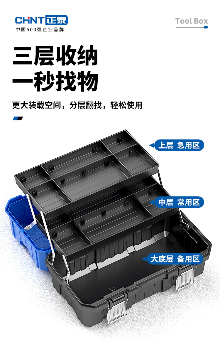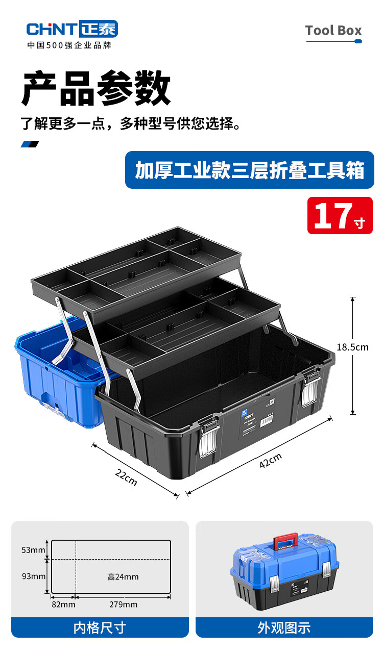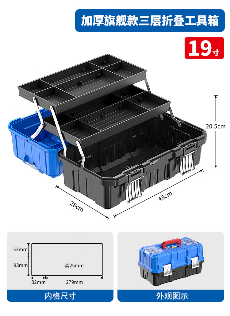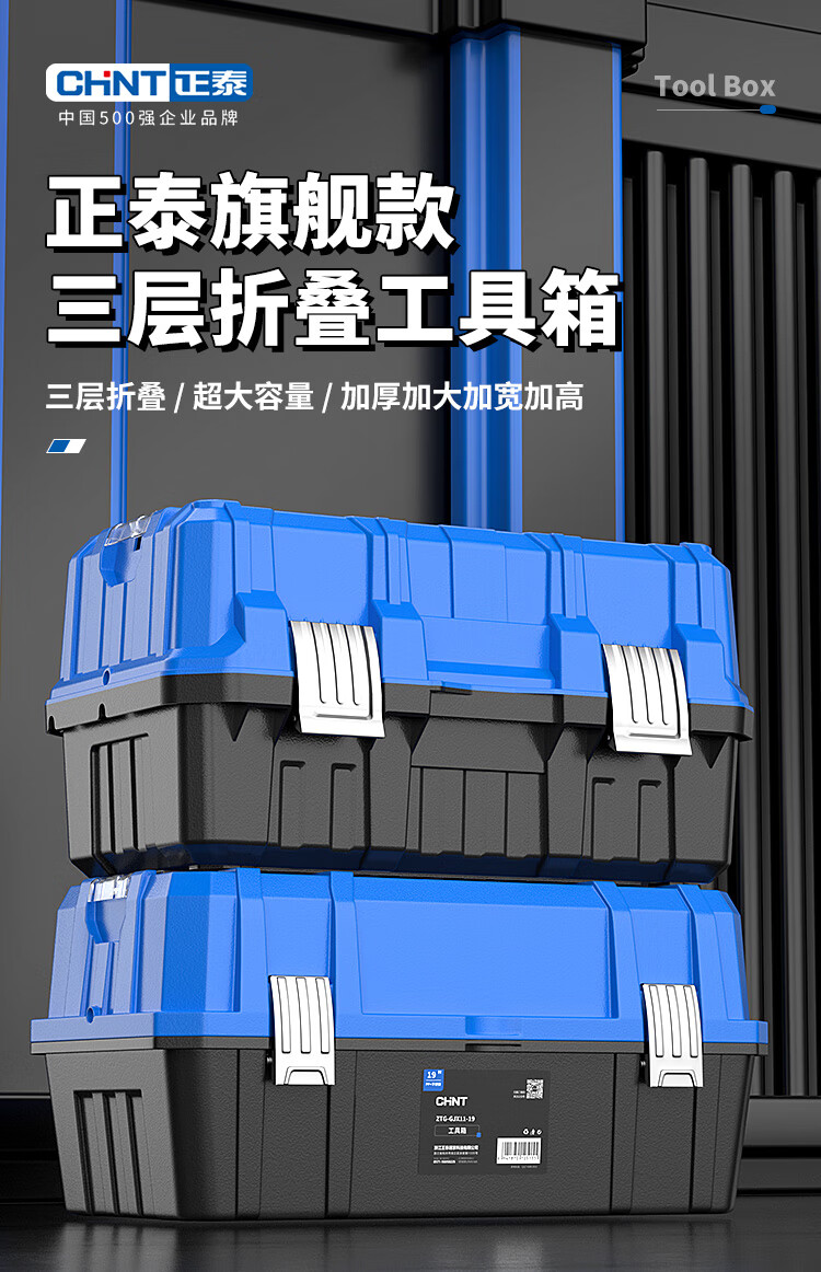 Chint Tool Box Empty Box Home Storage Box Multifunctional Folding Electrical Box Vehicle Repair Tools Thickened Suitcase 17-inch Thickened Folding Metal Buckle Industrial Grade