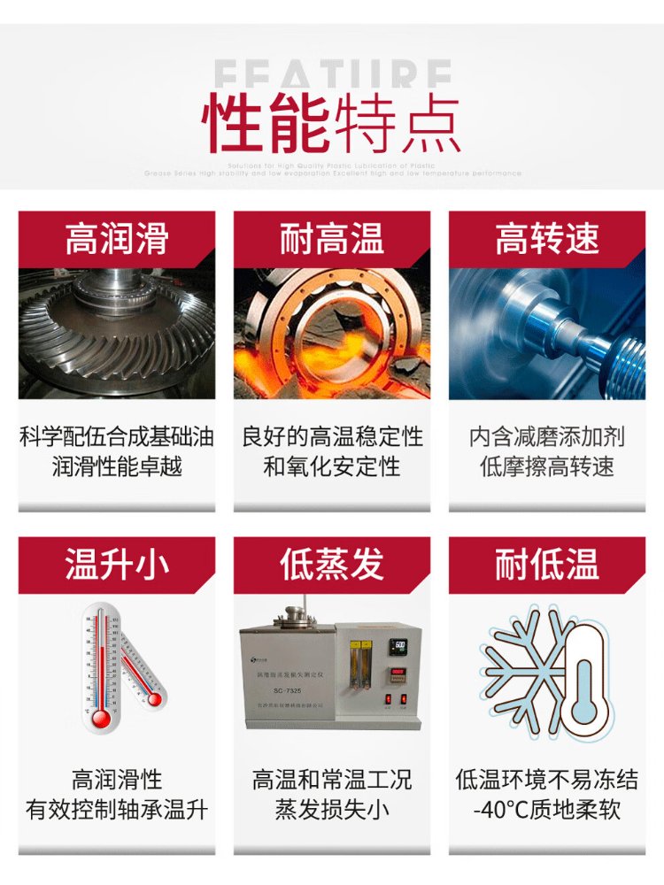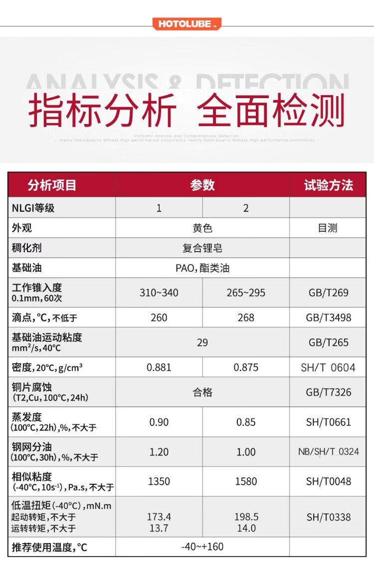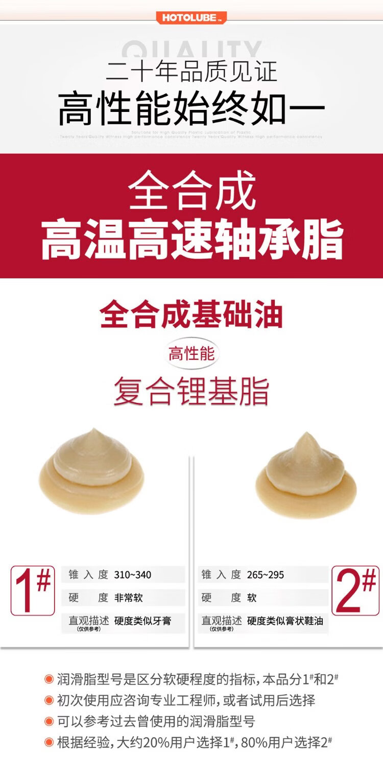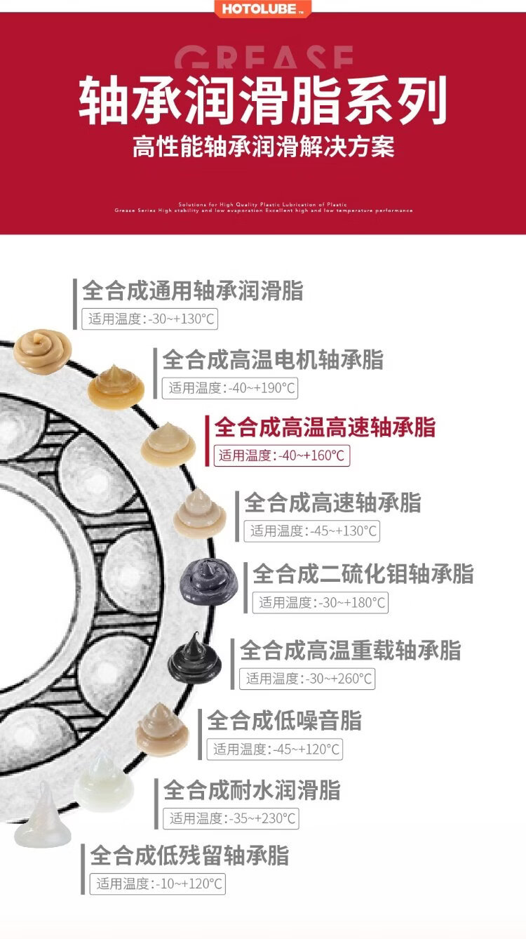 HOTOLUBE tiger head fully synthetic high temperature and high speed bearing grease, no oil rejection, low viscosity extreme pressure complex lithium base grease 130g single tube 1#