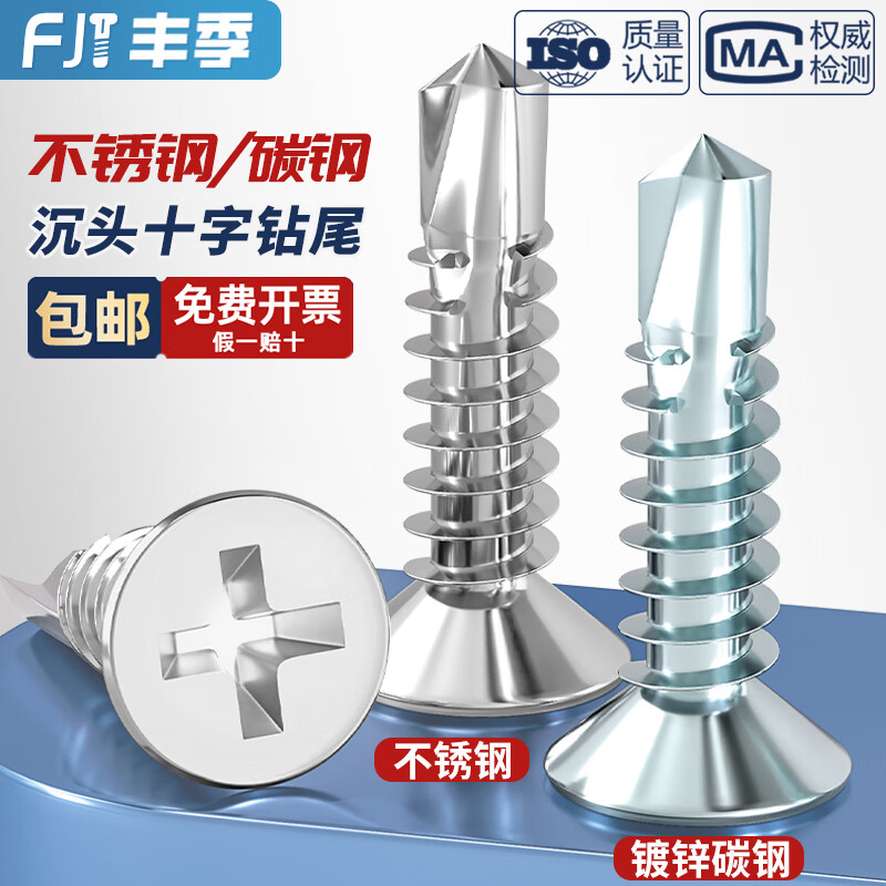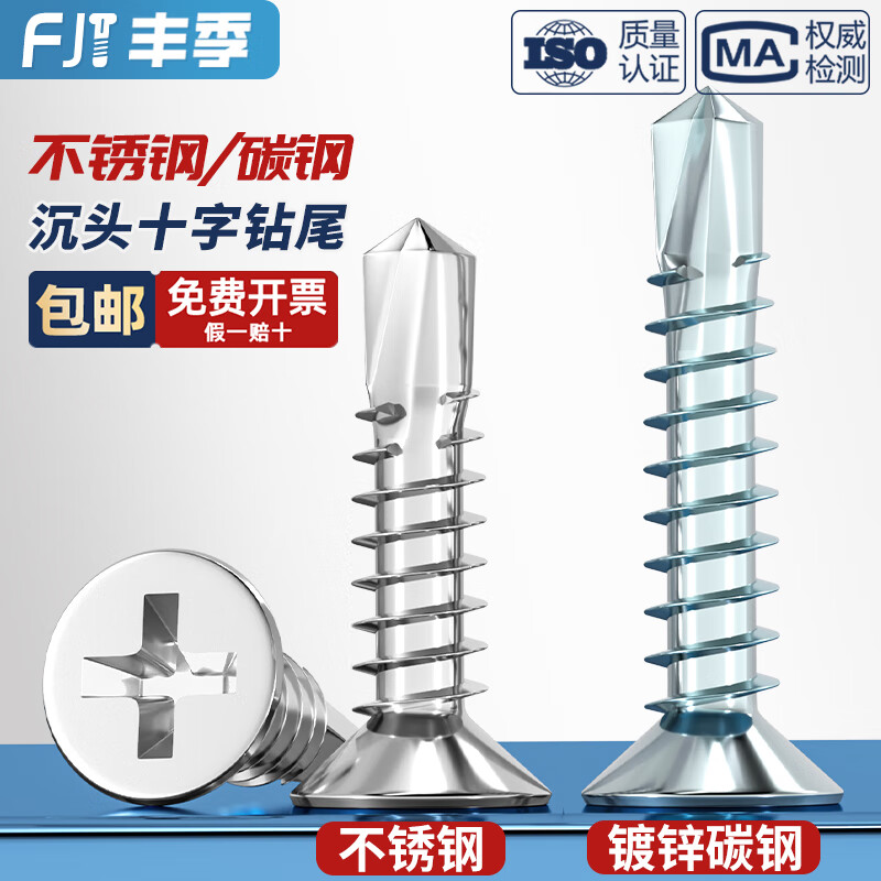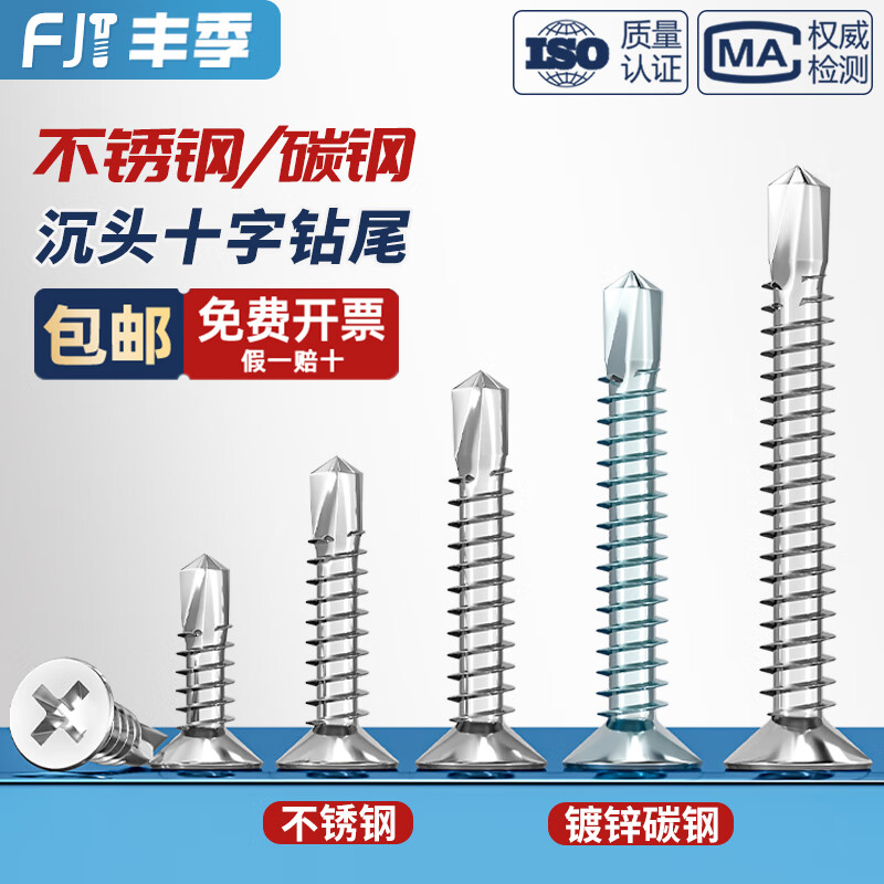 Fengji 410 stainless steel countersunk head drill tail screw cross flat head self-tapping self-drilling dovetail color steel tile screw M3.5-M6.3 304 countersunk head self-drilling M4.2 set