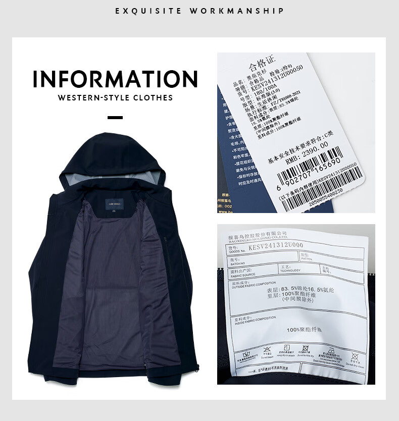 Announcement Bird Jacket Men's Three-Proof Technology Fabric Business Casual Zipper Jacket Commuting Youth Top Men Gray XL -50(180/100)
