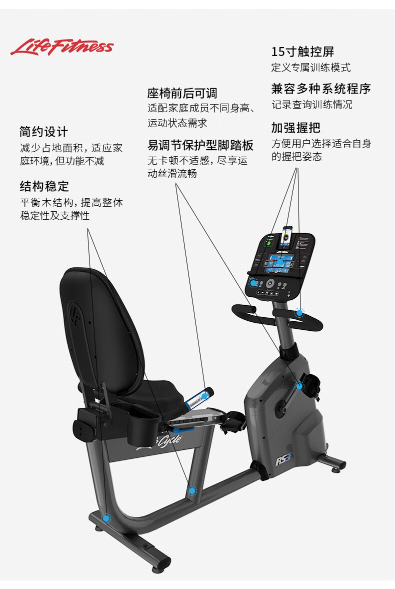 LIFEFITNESS home exercise bike RS3 spontaneous electromagnetic control dynamic bicycle recumbent bicycle recumbent bicycle imported RS3-GC
