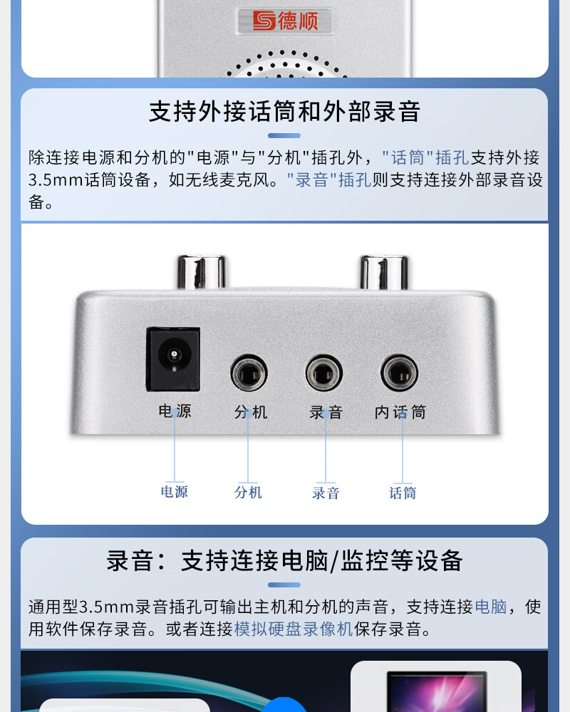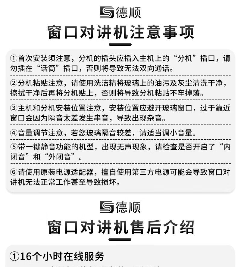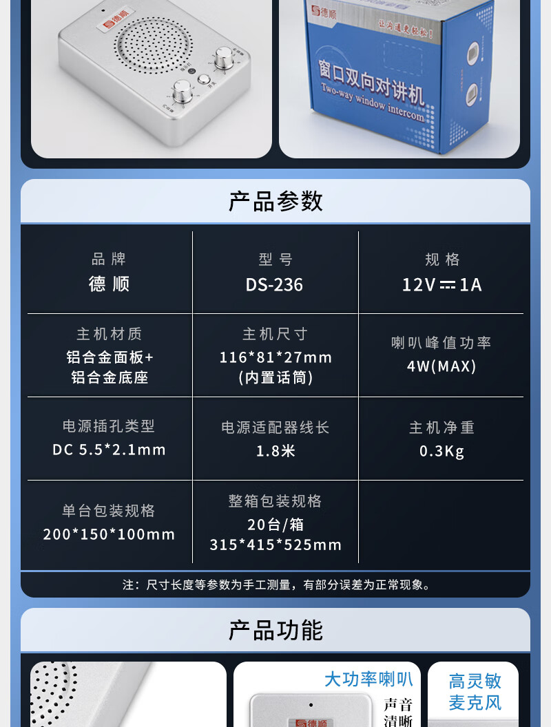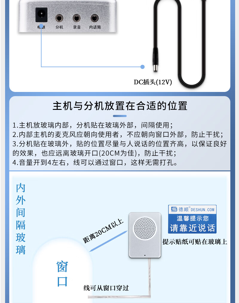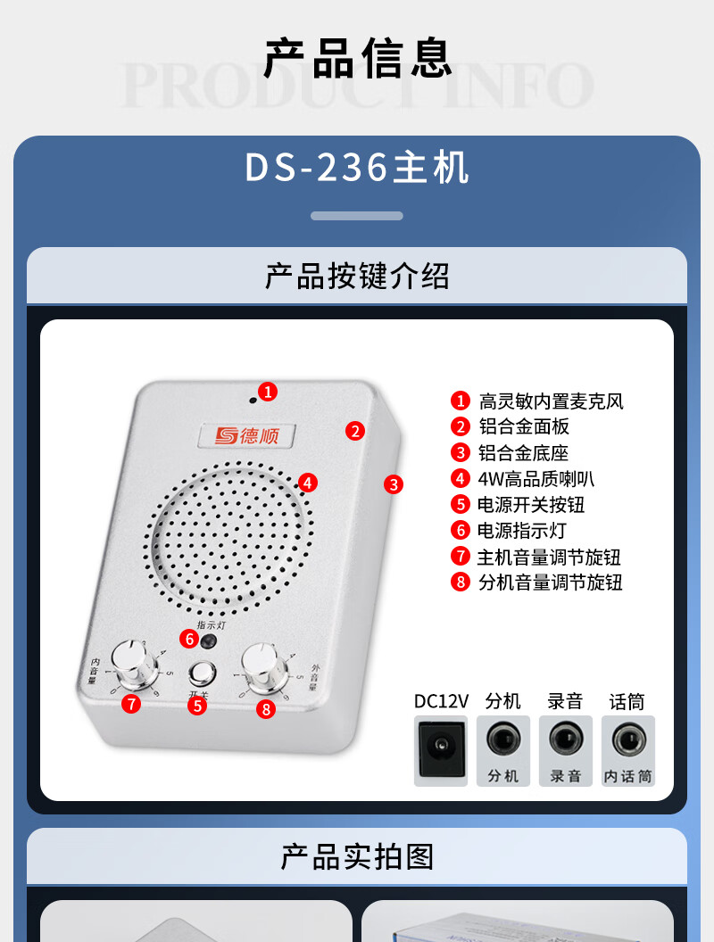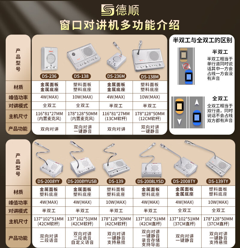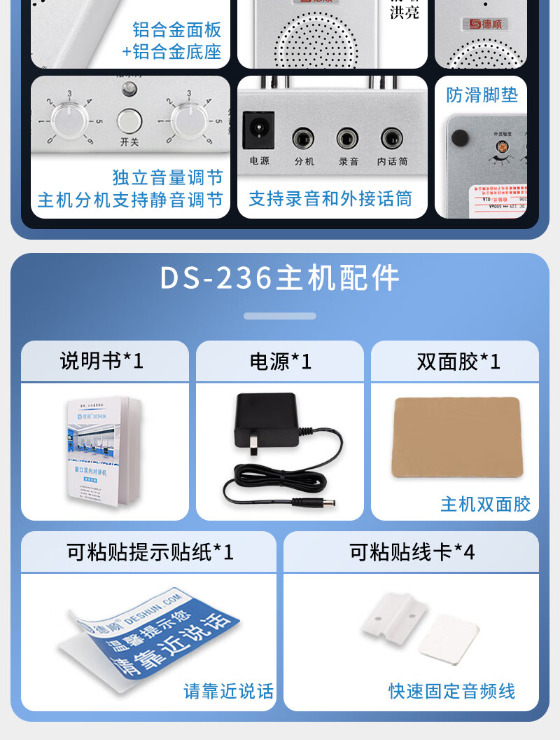DESHUN DS-236 window two-way intercom bank hospital station counter ticketing microphone stall conversation amplifier microphone built-in high-power host + 10W square extension