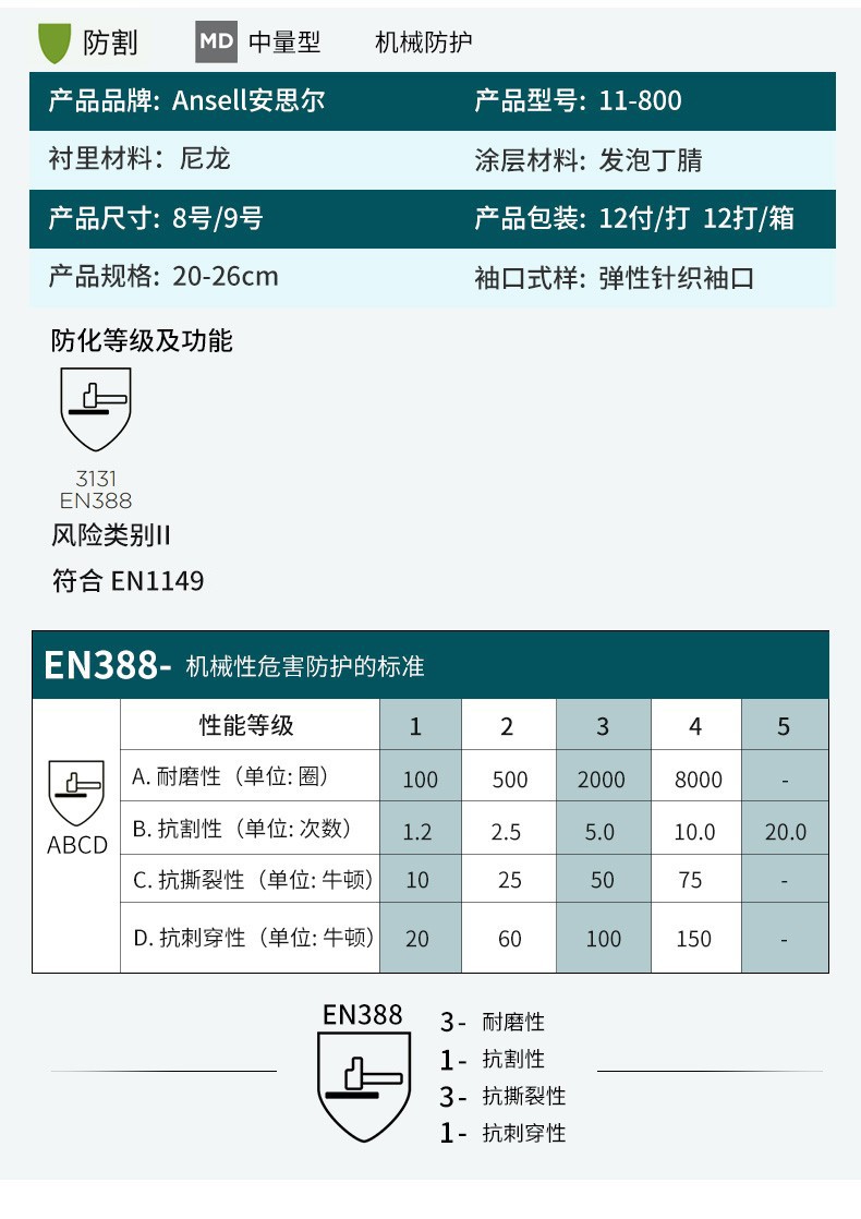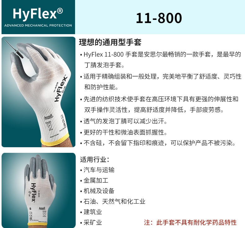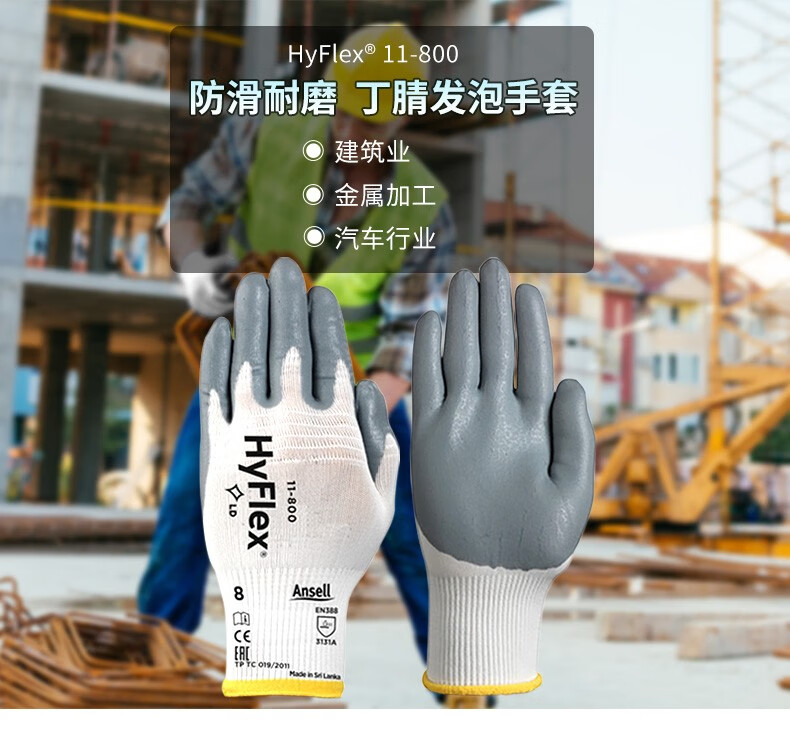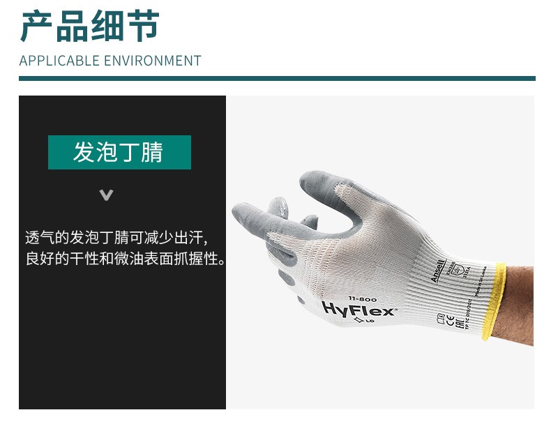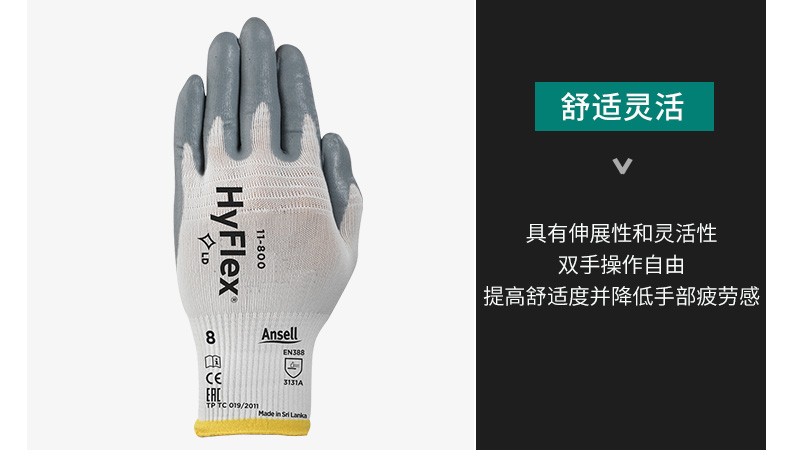 Ansell 11-800 Foamed Nitrile Coated Gloves Highly Sensitive Inspection Work Non-Slip Wear-Resistant Gloves Light White S