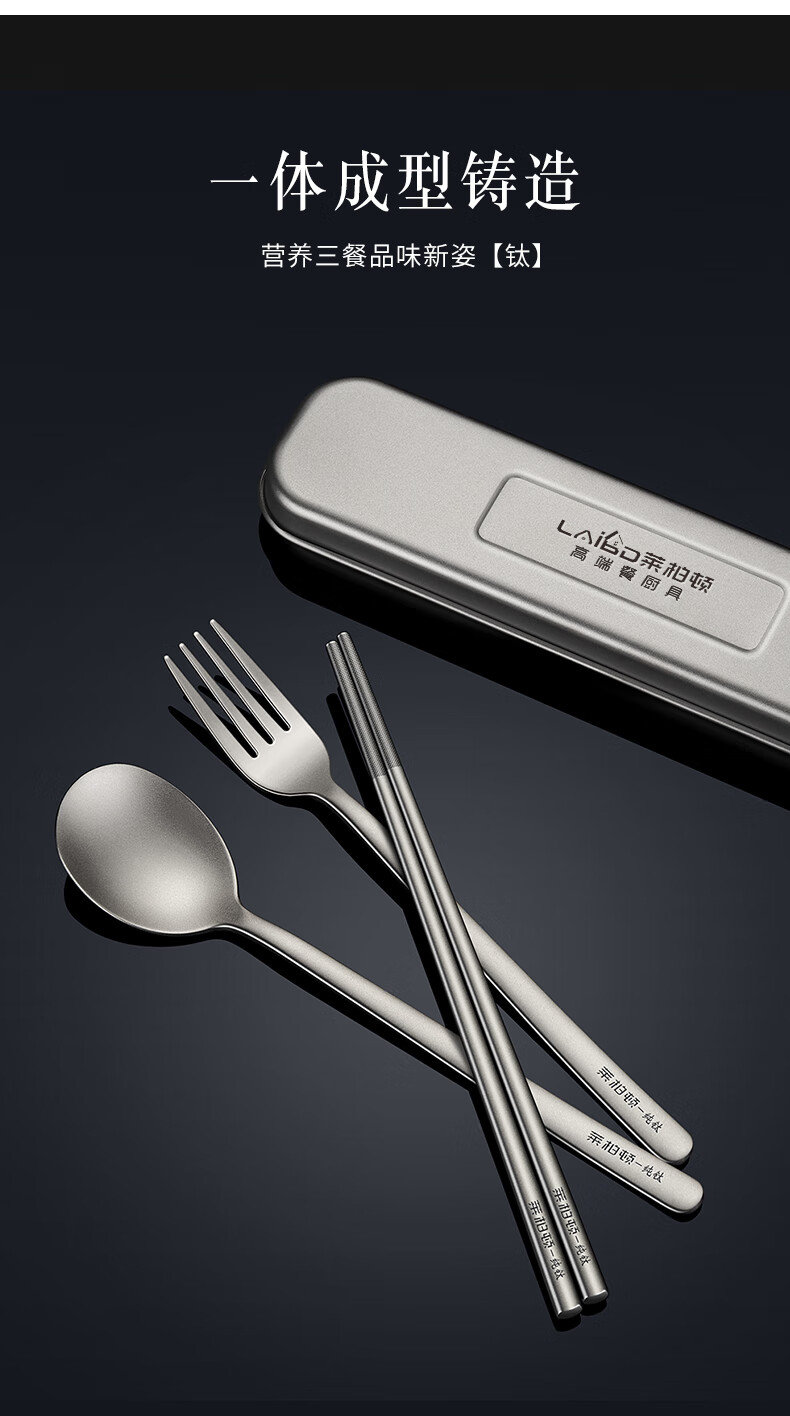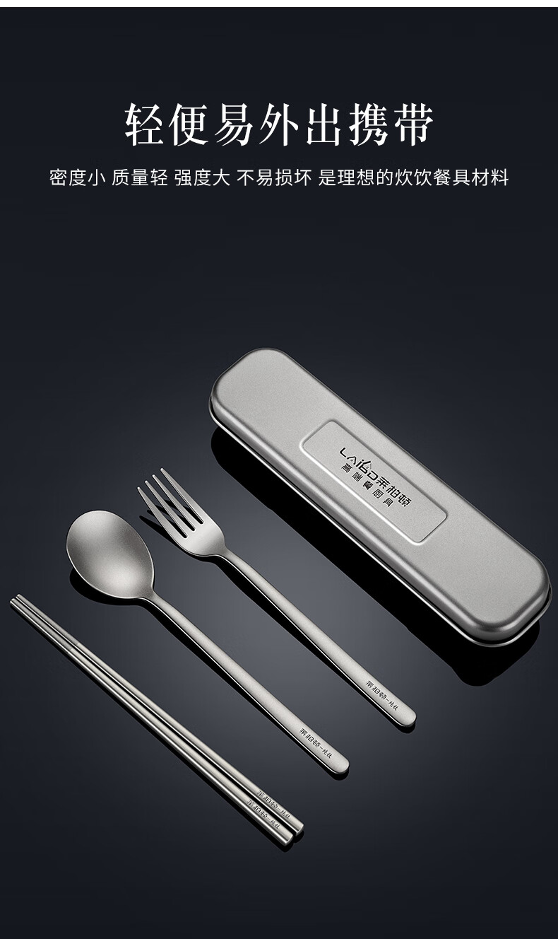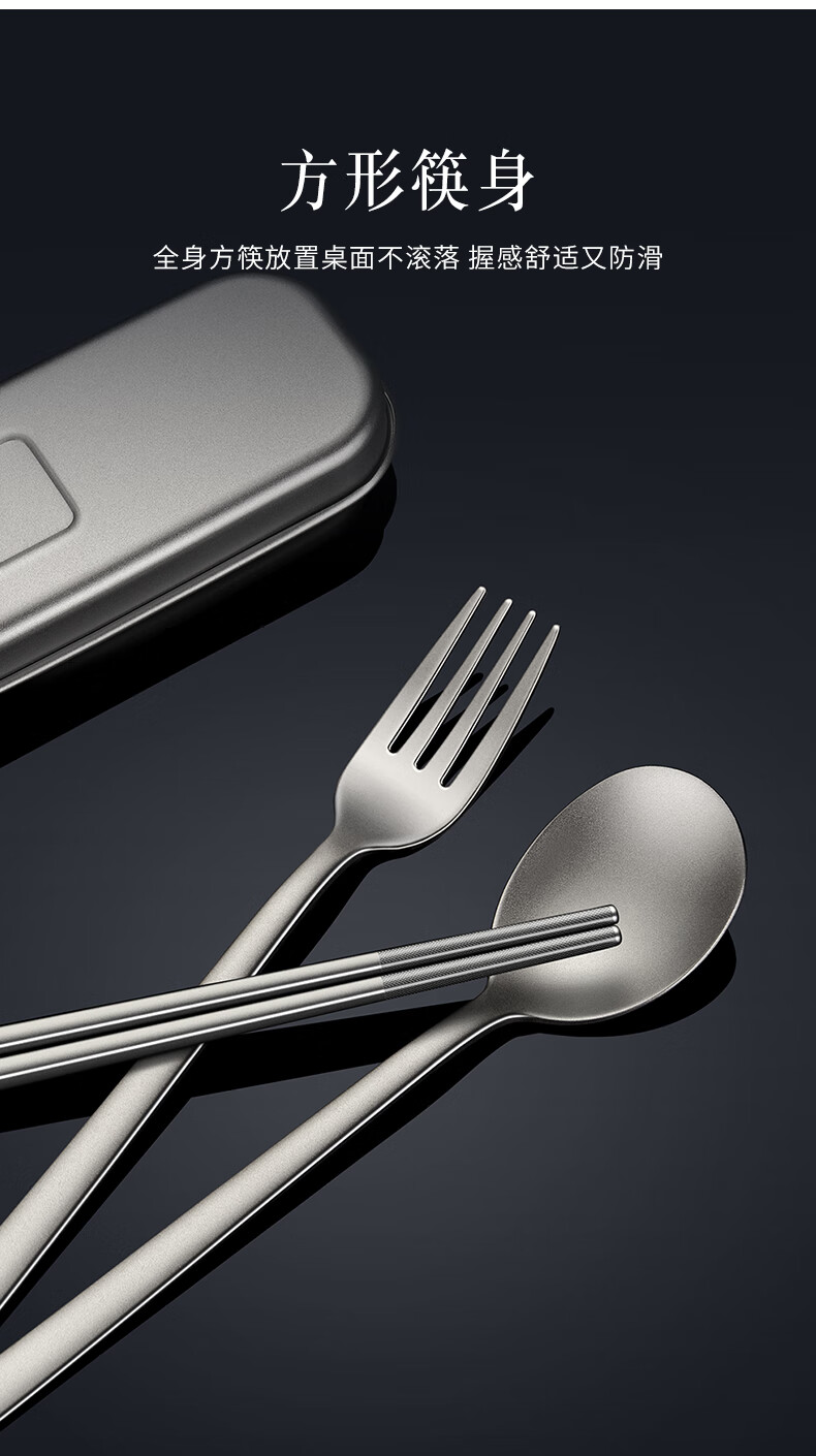 Labton Pure Titanium Chopsticks Spoon Set Fork Three-piece Outdoor Camping Portable Tableware Titanium Chopsticks Spoon Set Pure Titanium Chopsticks Spoon + Portable Box