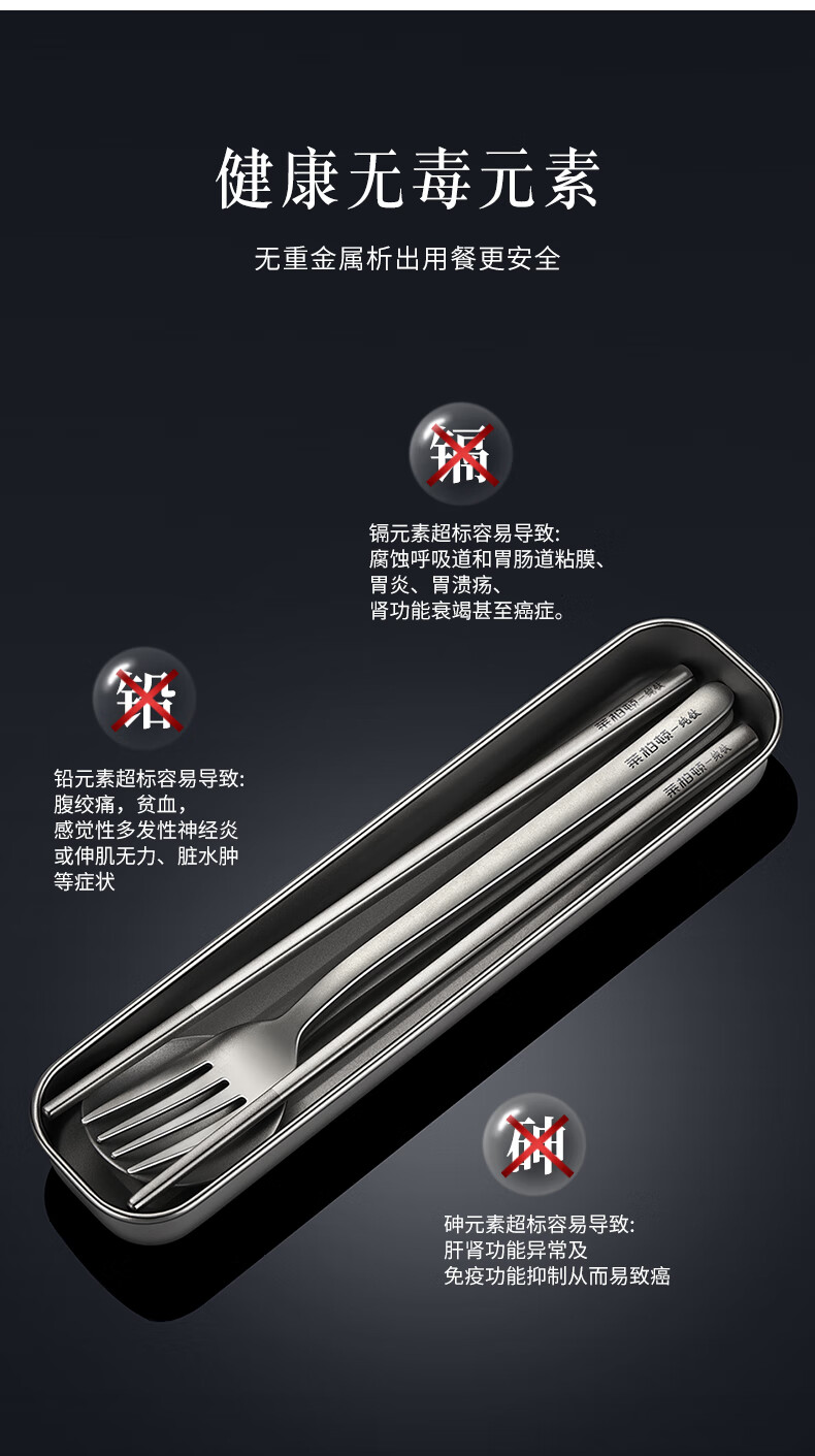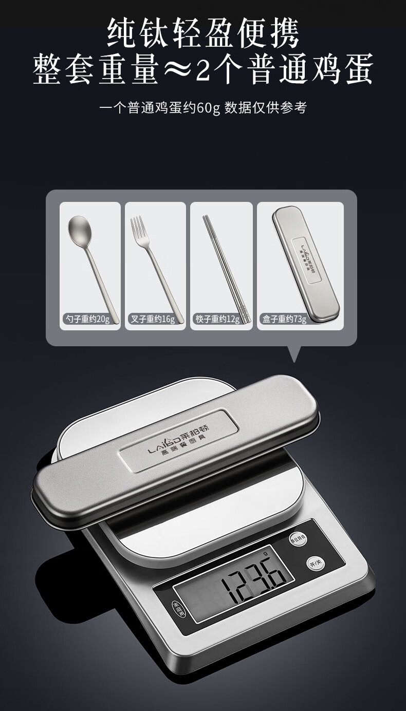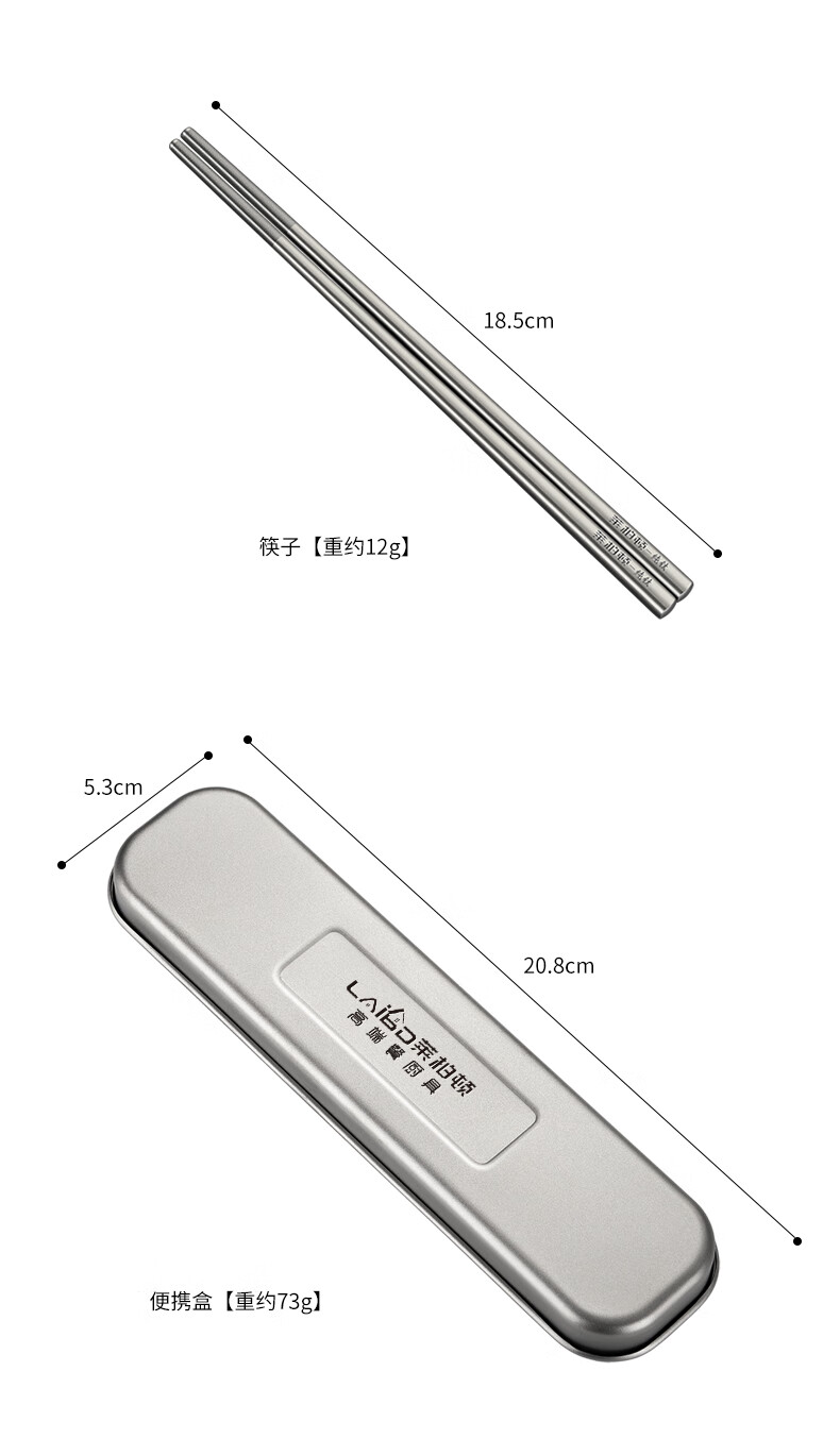 Labton Pure Titanium Chopsticks Spoon Set Fork Three-piece Outdoor Camping Portable Tableware Titanium Chopsticks Spoon Set Pure Titanium Chopsticks Spoon + Portable Box