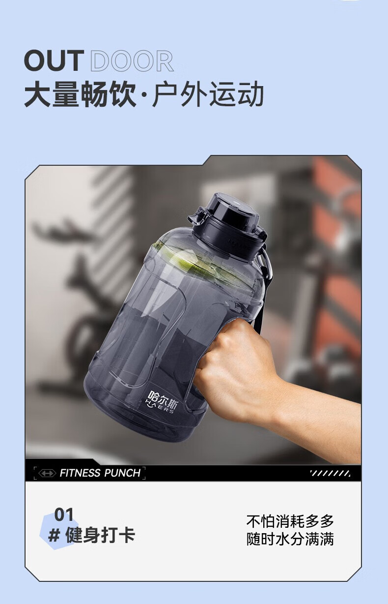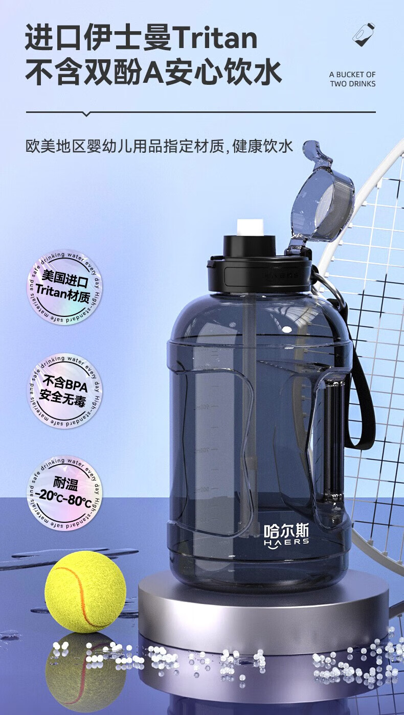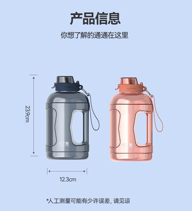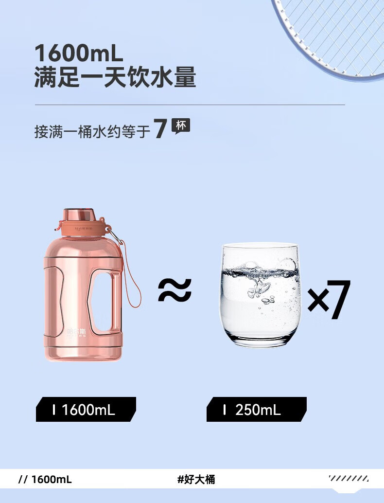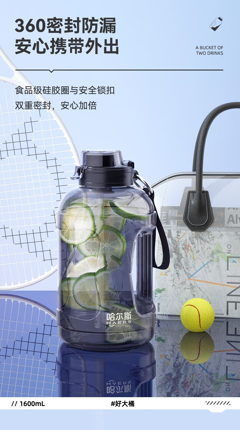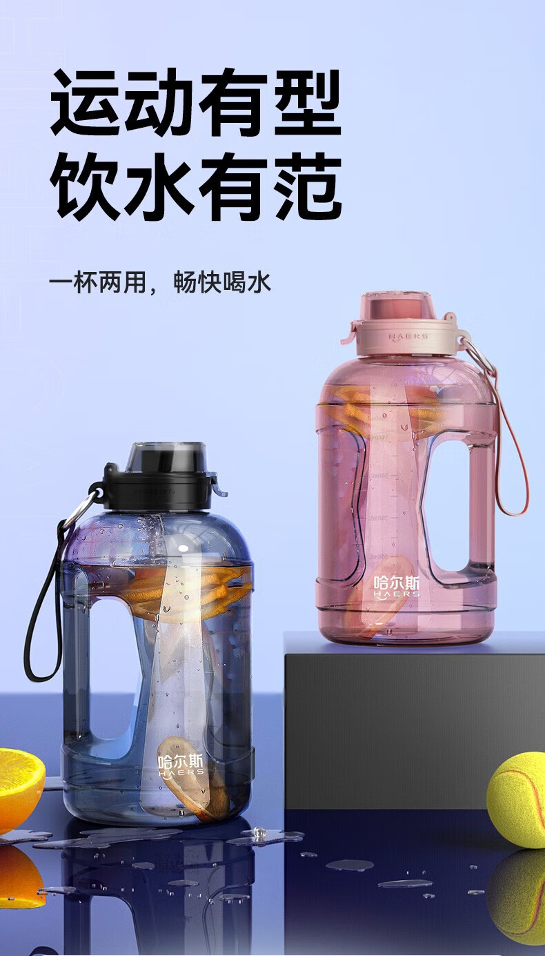 Hals (HAERS) sports water bottle large capacity plastic men's fitness water bottle outdoor ton water bottle ton bucket portable water cup apricot red can hold 80 degree boiling water 1 piece 1600ml