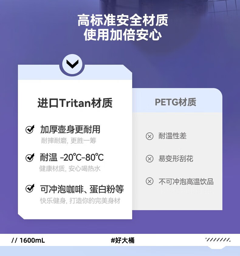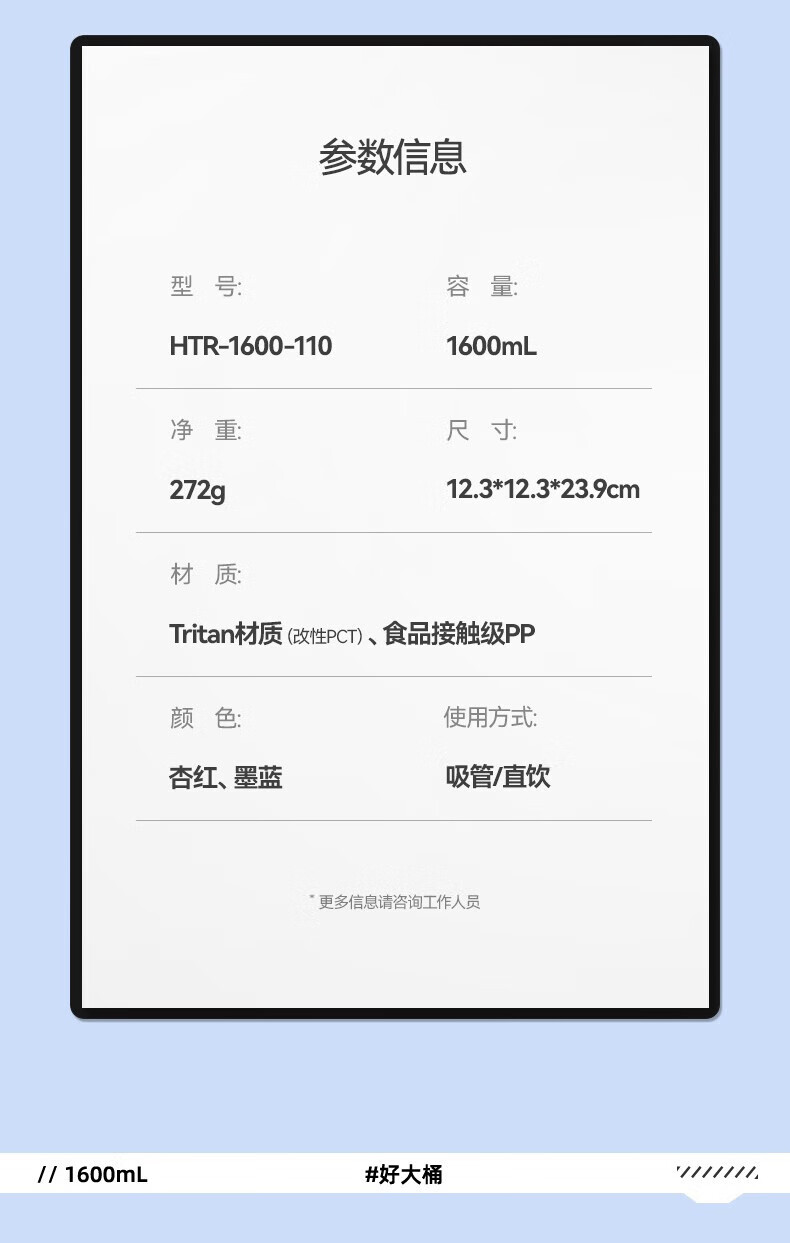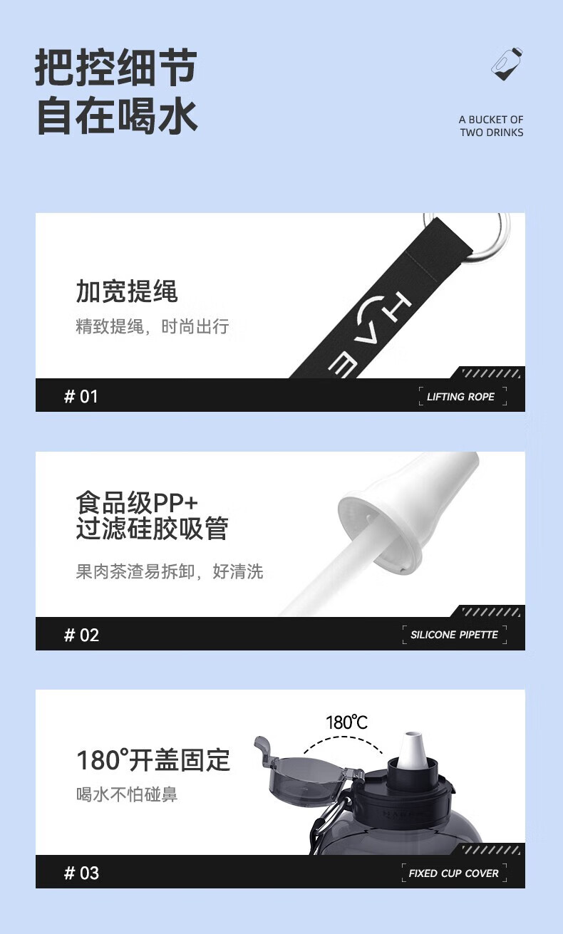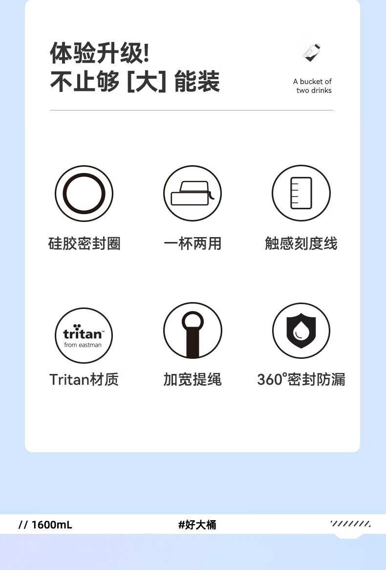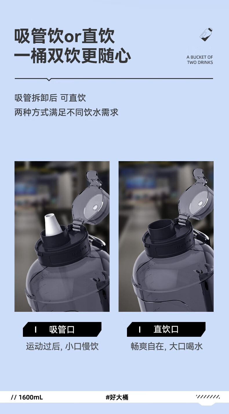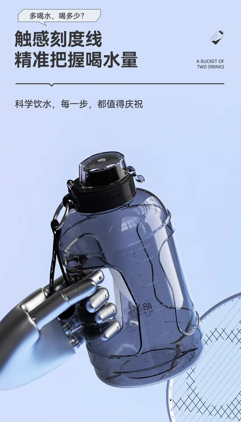 Hals (HAERS) sports water bottle large capacity plastic men's fitness water bottle outdoor ton water bottle ton bucket portable water cup apricot red can hold 80 degree boiling water 1 piece 1600ml