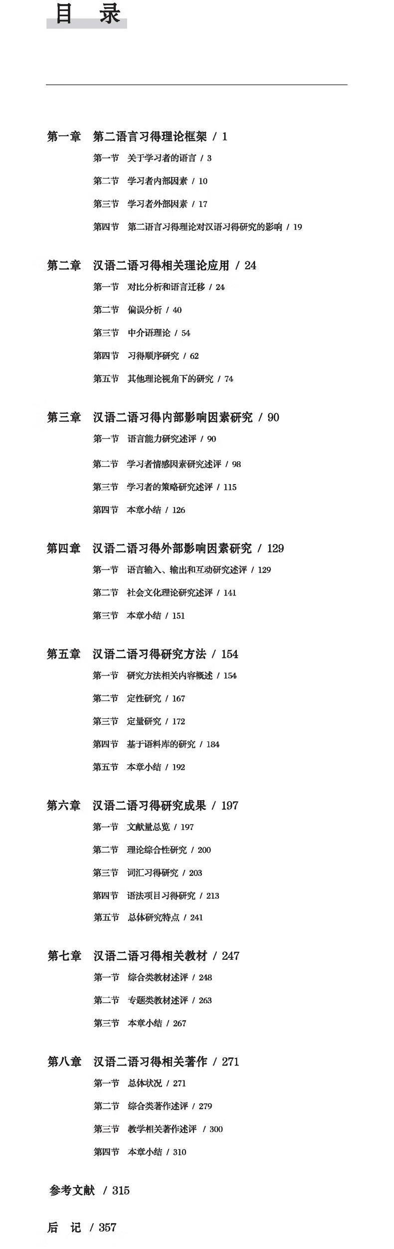 | 章第二语言论框架/1 节关于学语言/3 第二节学部因素/10 第三节学部因素/17 第四节第二语言论对汉语究的影响/19 第二章汉语二语关理论应用/24 节对比分析和语言迁移/24 第二节偏误分析/40 第三节中介语理论/54 第四节序研究/62 第五节其他理论视角下的研究/74 第三章汉语二语部影响因素研究/90 节语言能力研究述评/90 第二节学感因素研究述评/98 第三节学策略研究述评/115 第四节本章小结/126 …… |