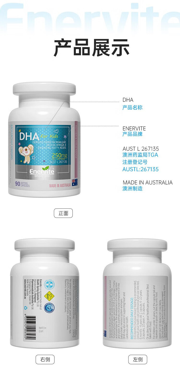 EnerViteEnerVite Children's DHA Algae Oil Capsules 90 capsules imported from Australia 3 bottles