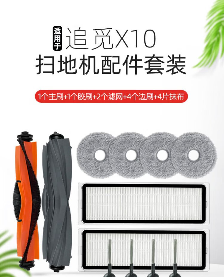 Snap will be adapted to the X10/X20/PRO PLUS sweeping robot X10/X20/PRO PLUS accessories, floor cleaning fluid, mop, side brush, filter, main rubber brush, rag, dust bag holder, 2 bottles of automatic filling cleaning fluid (free funnel)