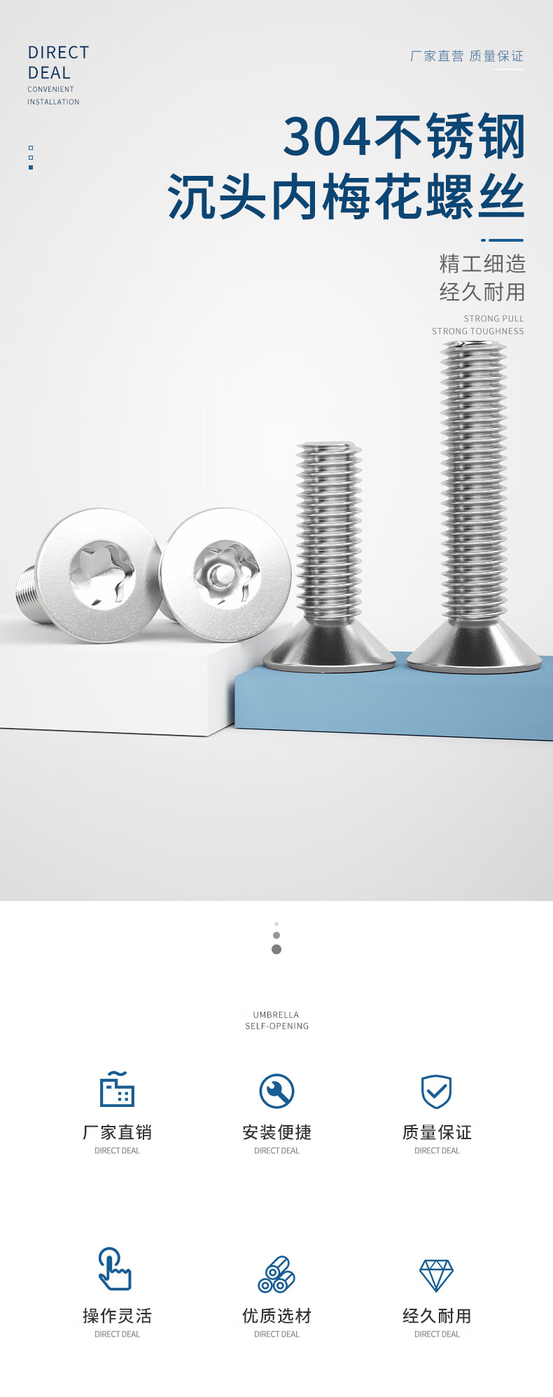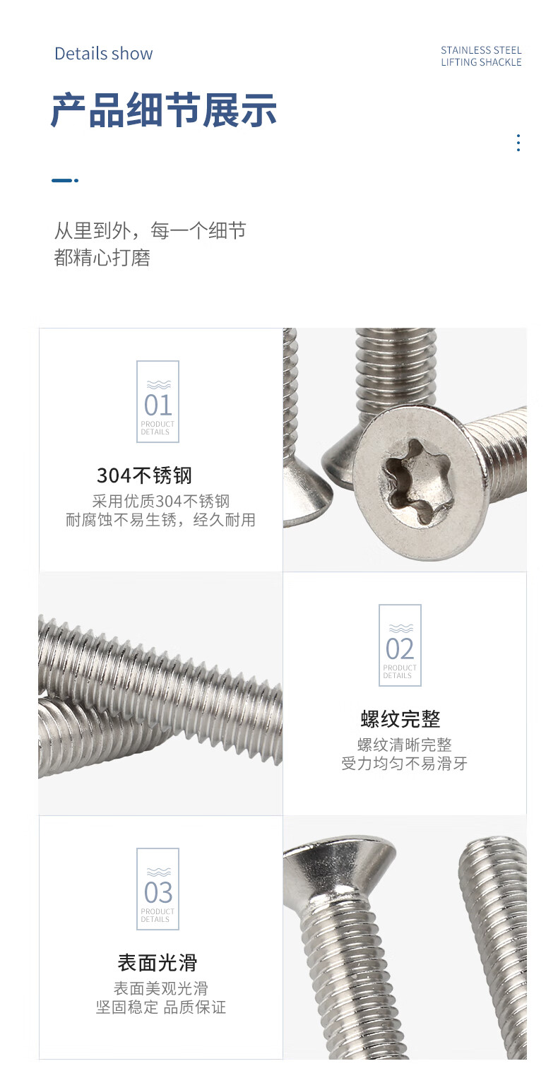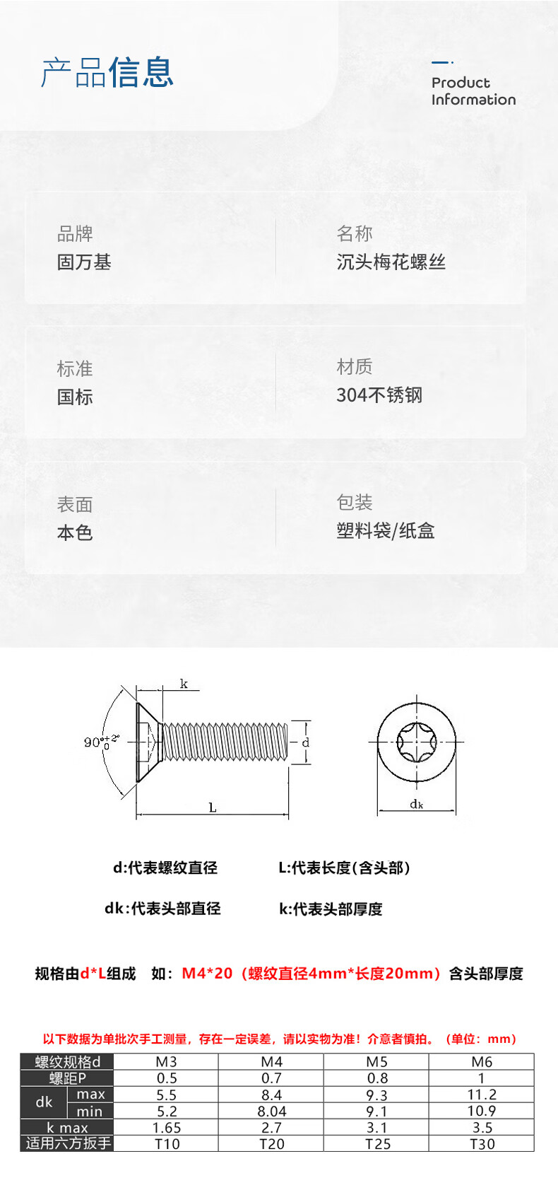 Guwanji 304 stainless steel countersunk head screws, flat head plum blossoms with columns, anti-theft screws, anti-disassembly bolts, national standard accessories, M4*16 (50 pieces) with columns
