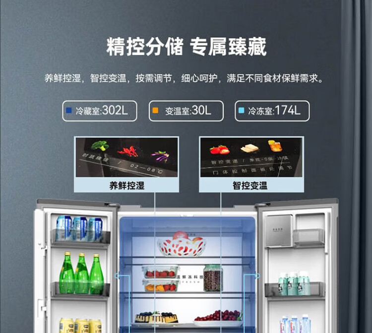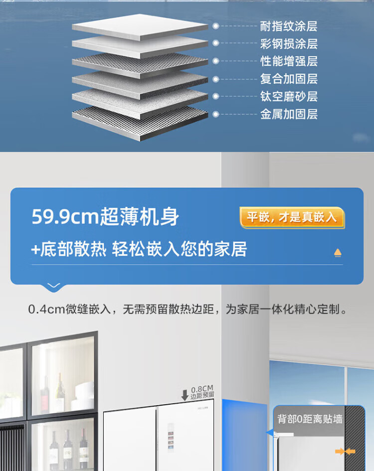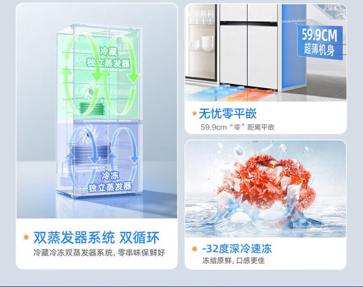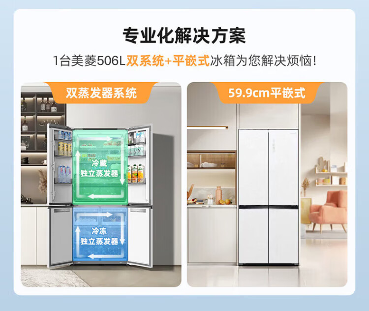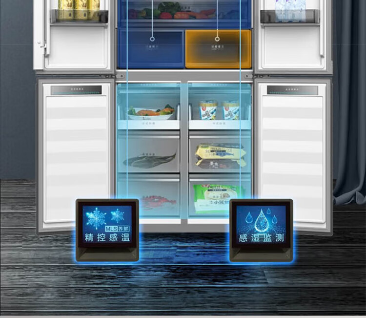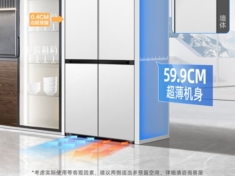MeiLing 505/506/507 dual system zero-embedded refrigerator household 599mm ultra-thin full-space odor-purifying embedded cross four-open double-door refrigerator intelligent dual frequency conversion BCD-507WP9BTZ zero-zero embedded silk ash