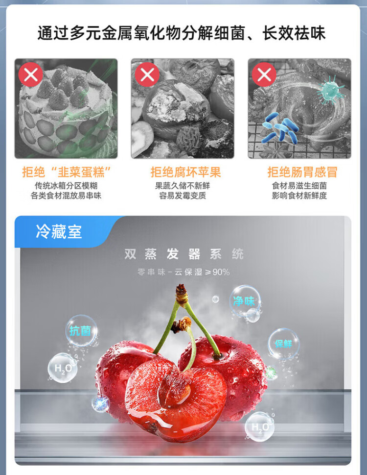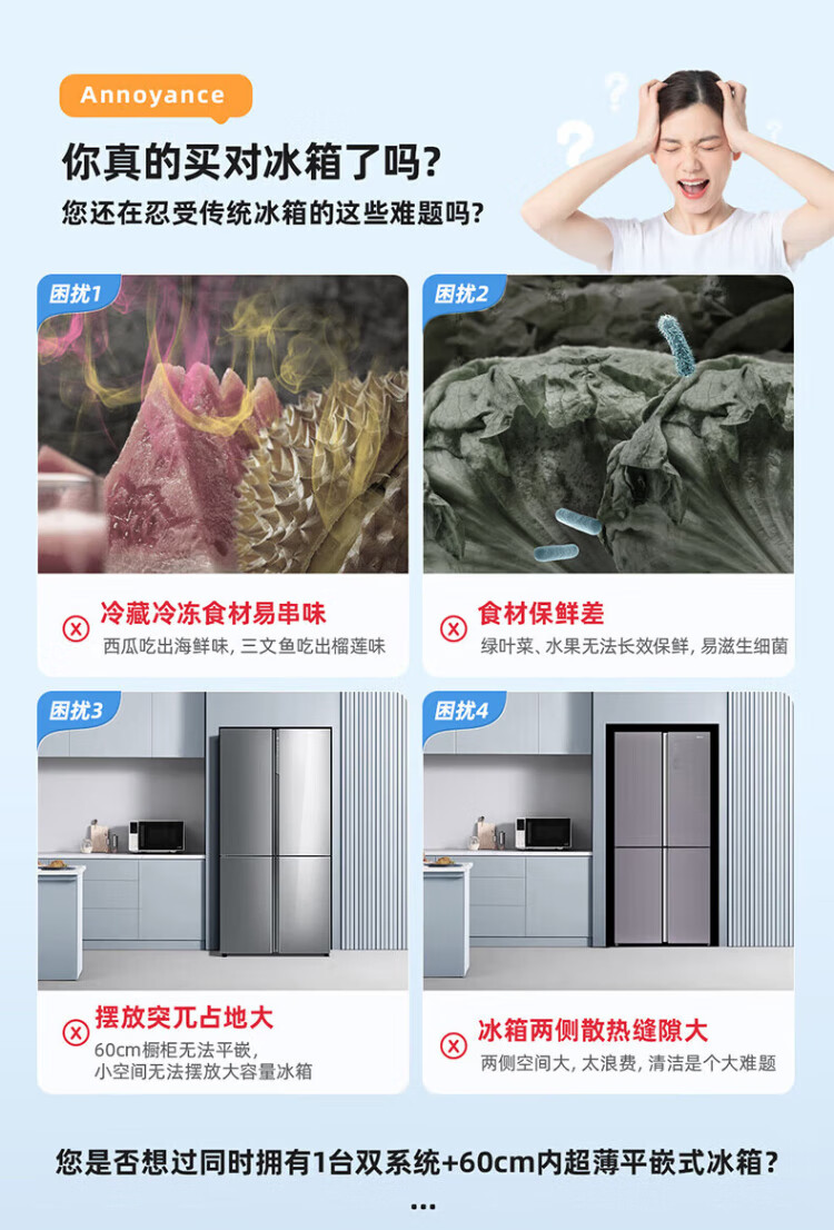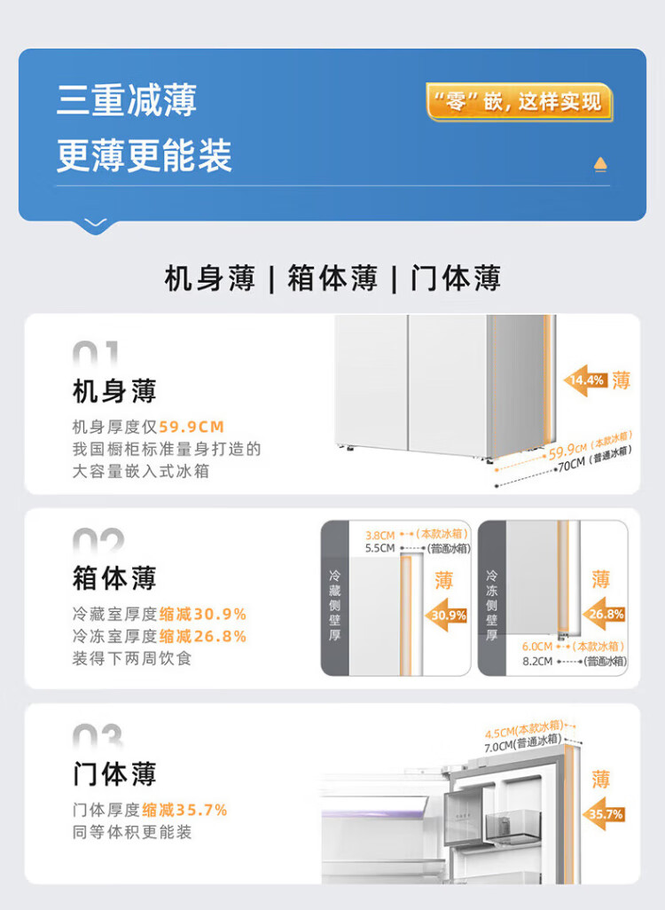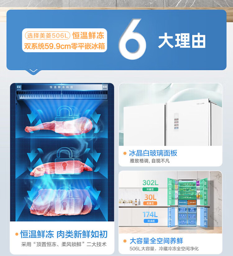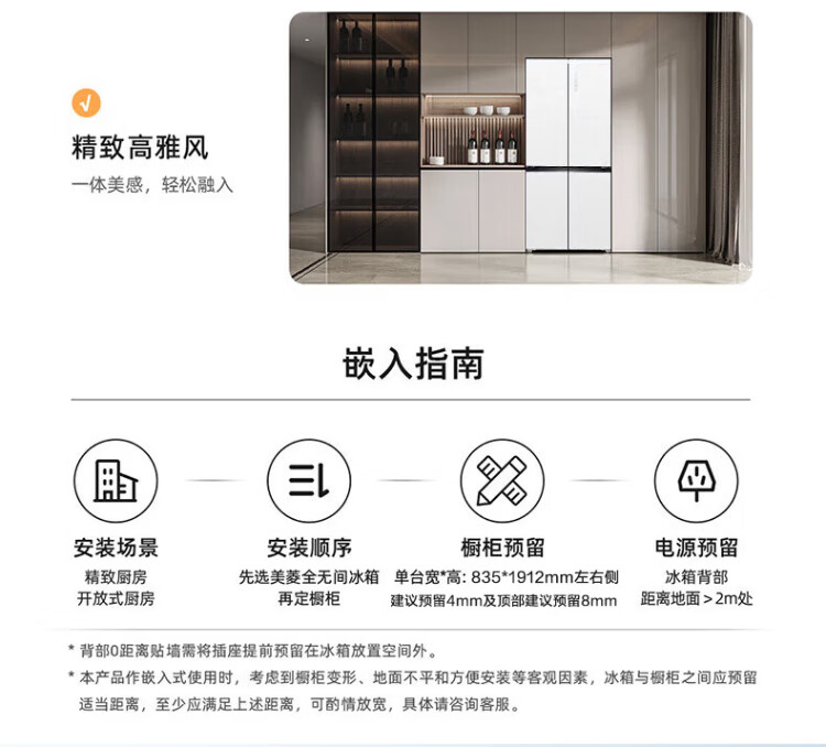 MeiLing 505/506/507 dual system zero-embedded refrigerator household 599mm ultra-thin full-space odor-purifying embedded cross four-open double-door refrigerator intelligent dual frequency conversion BCD-507WP9BTZ zero-zero embedded silk ash