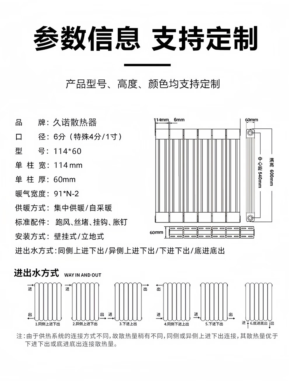 JIUNUOSANREQI Jiunuo household water heating 114X60 radiator copper-aluminum composite radiator centralized self-heating wall-mounted radiator 300mm high