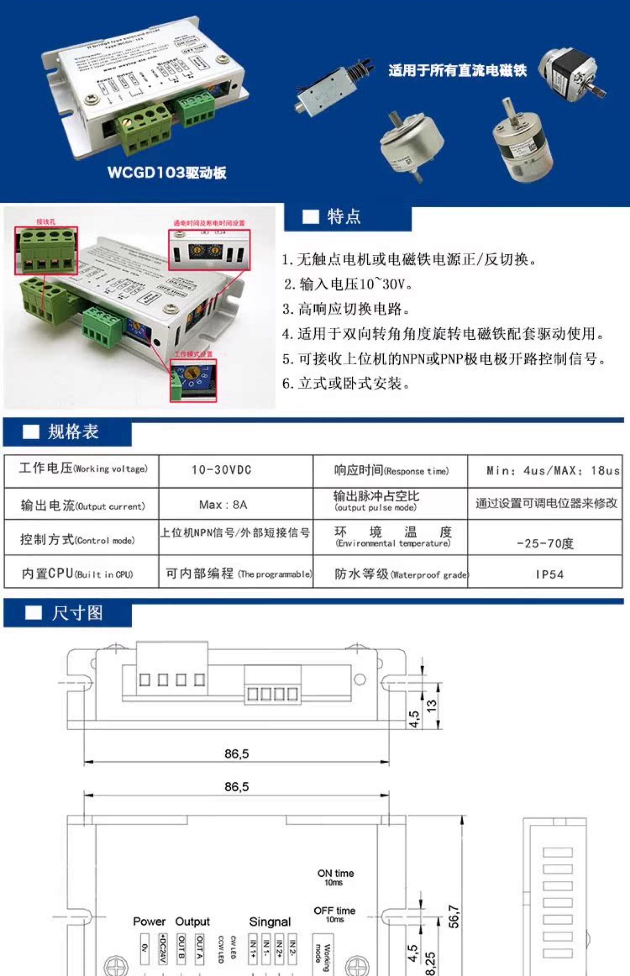 Factory sales high current H-bridge positive and negative power polarity switching electromagnet driver control board WCGD103 WCGD103