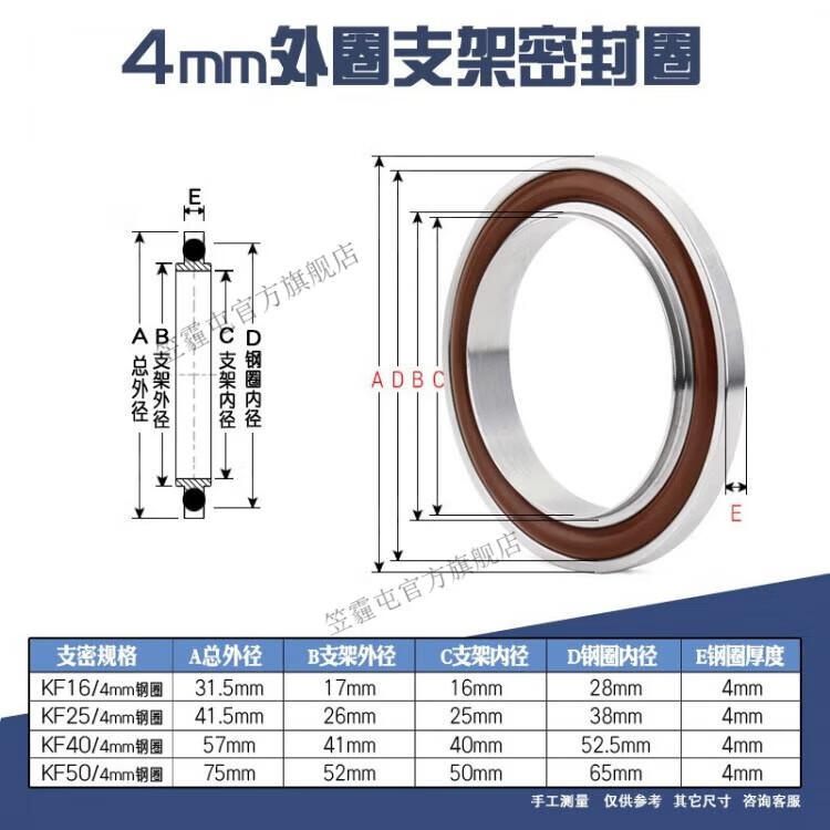 Lihaitun KF vacuum bracket sealing ring stainless steel fluorine rubber aluminum alloy 50 Dingqing 16 clamp 25 pipe fittings 40 quick installation chuck KF63 stainless steel bracket + fluorine rubber ring