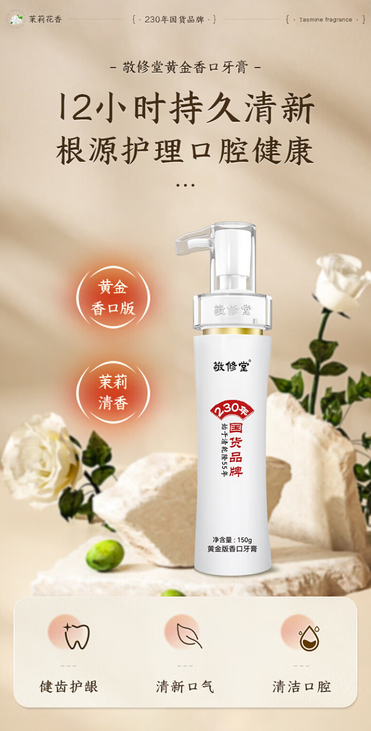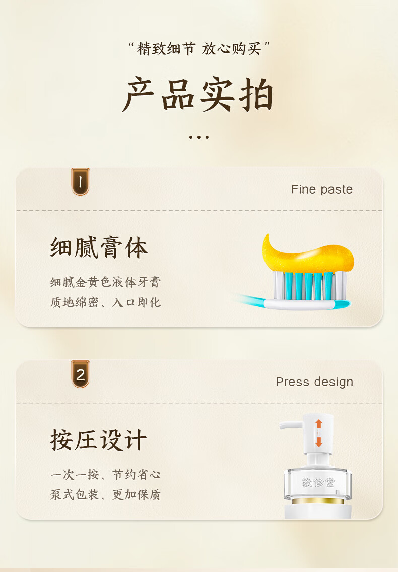 Jingxiu Tang Golden Fragrance Toothpaste brightens teeth, long-lasting fresh breath, removes yellow and stains, press-type spearmint Douyin, same style tube, Fragrance Toothpaste 60g*6 pieces