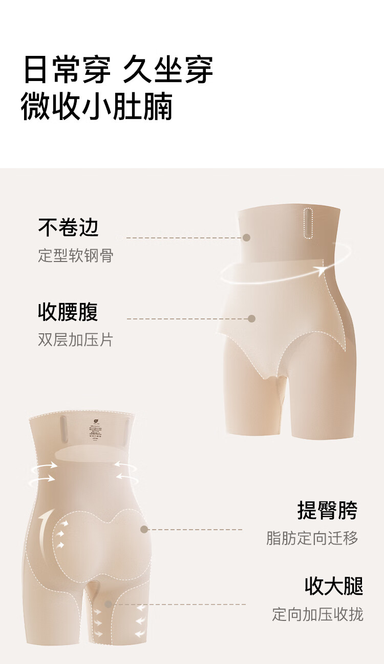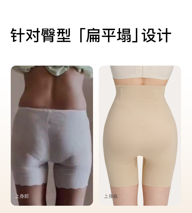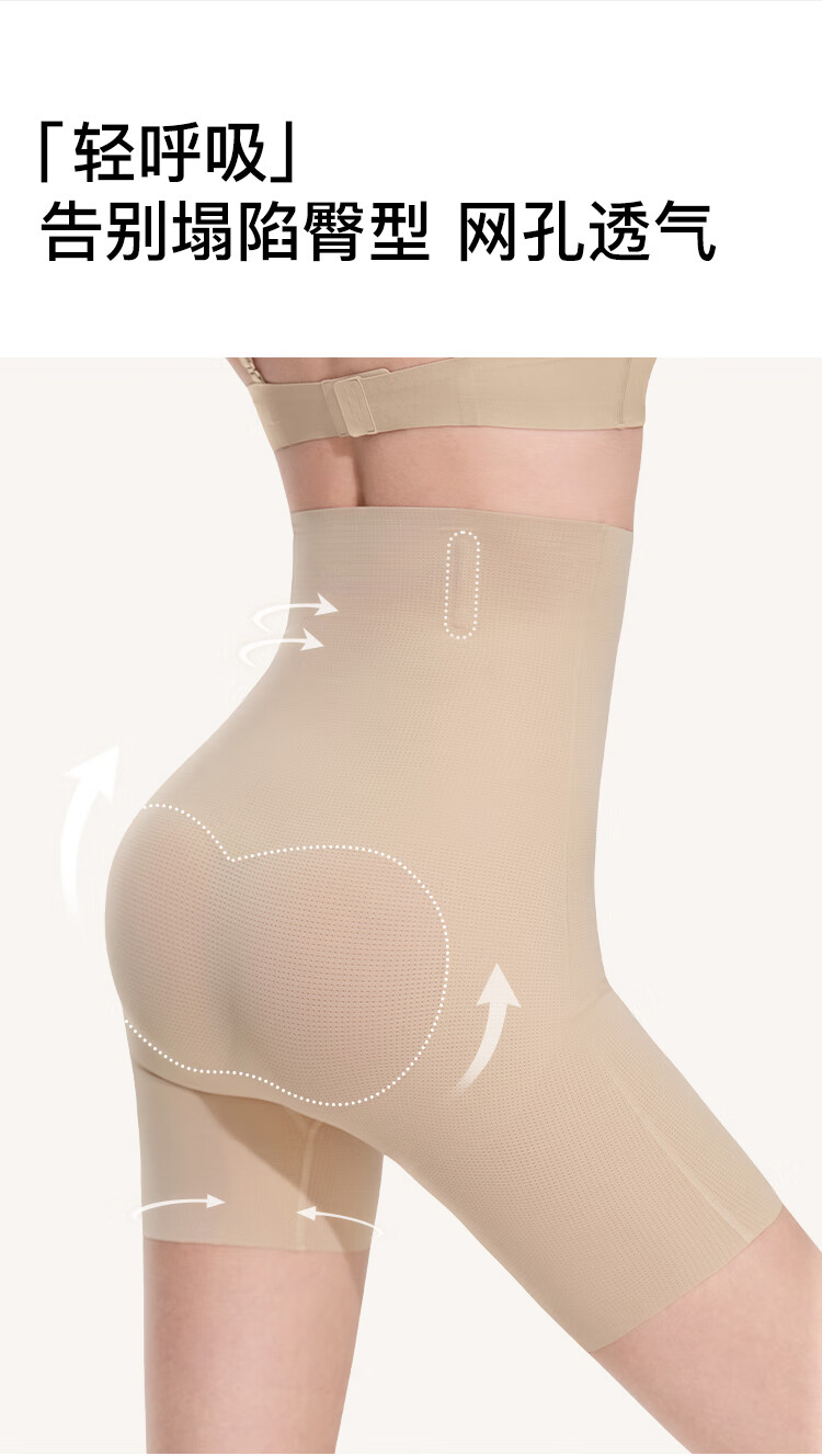 Ubras breathes lightly, traceless, breathable, body-shaping, ultra-high-waisted, butt-lifting and tummy-controlling pants for women, three-quarter body-shaping pants, three-quarter pants-Porcelain Moon Color S