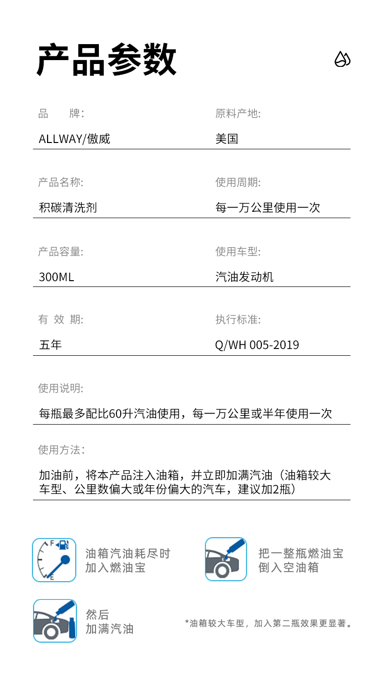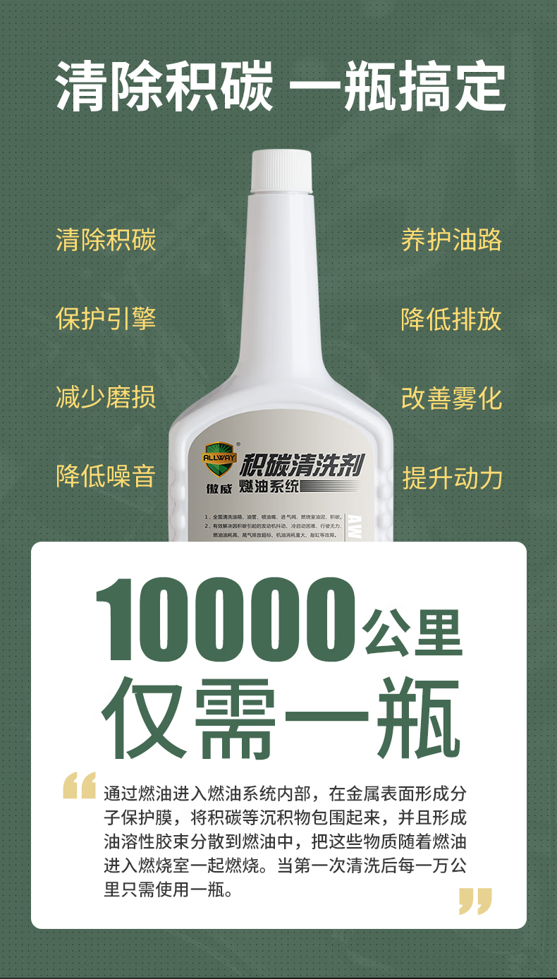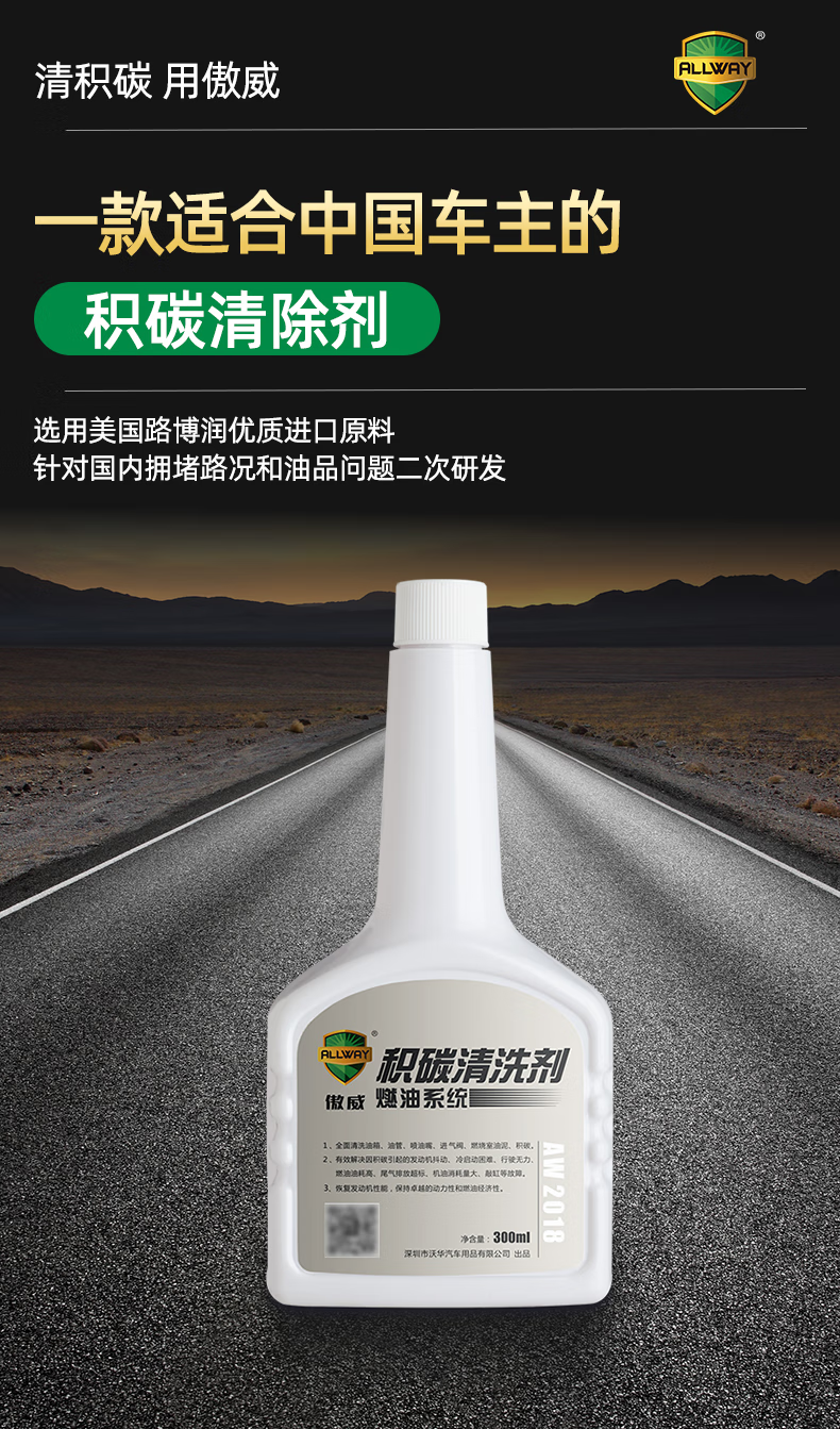 Aowei carbon deposit cleaning agent removes carbon deposits, saves fuel and improves engine power. National VI gasoline additive AW2018 manufacturer Aowei Dabai AW2018 (300ml cleaning type)