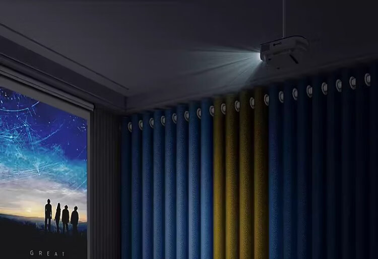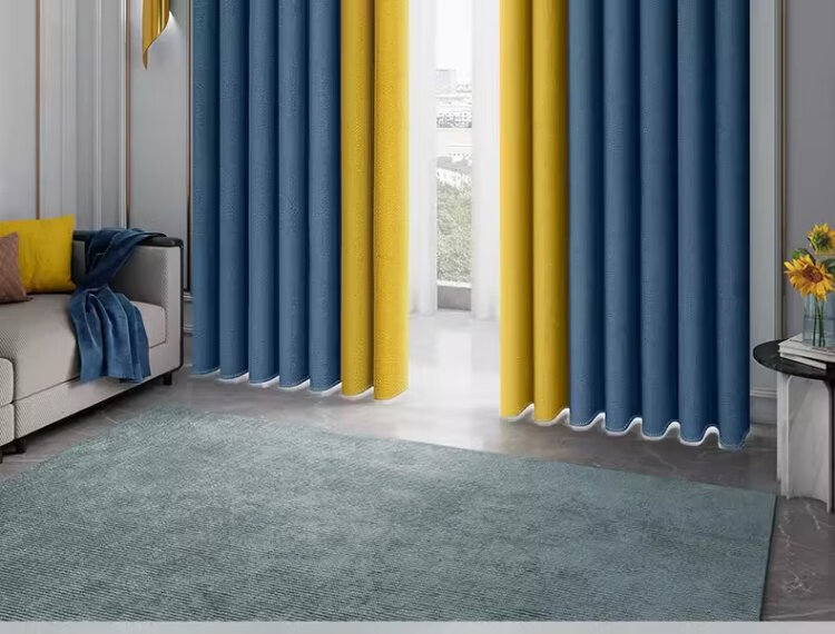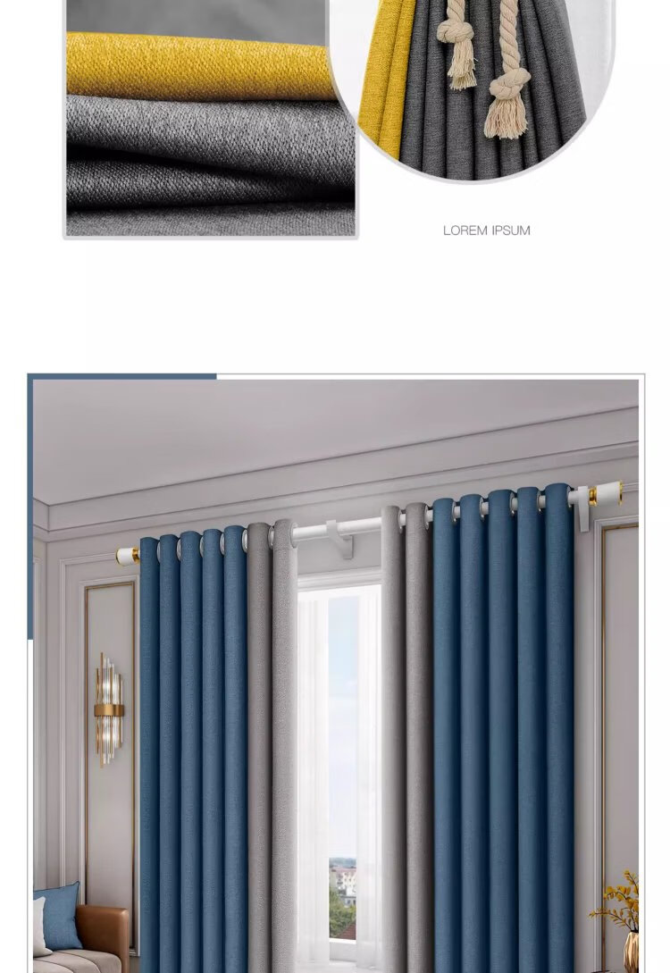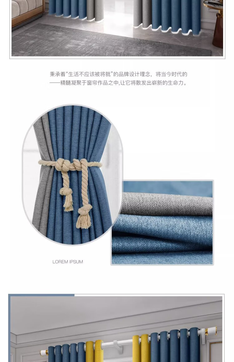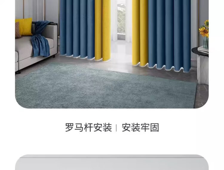 A complete set of futuristic curtains Roman rods for bedroom bay windows, blackout curtains for living room, 2025 new style with rods, high-end feel, no punching required, Quiet Blue - free Roman rods (delivered on the same day), applicable wall width 2.1-2.6m, curtain height 2.5m, double opening