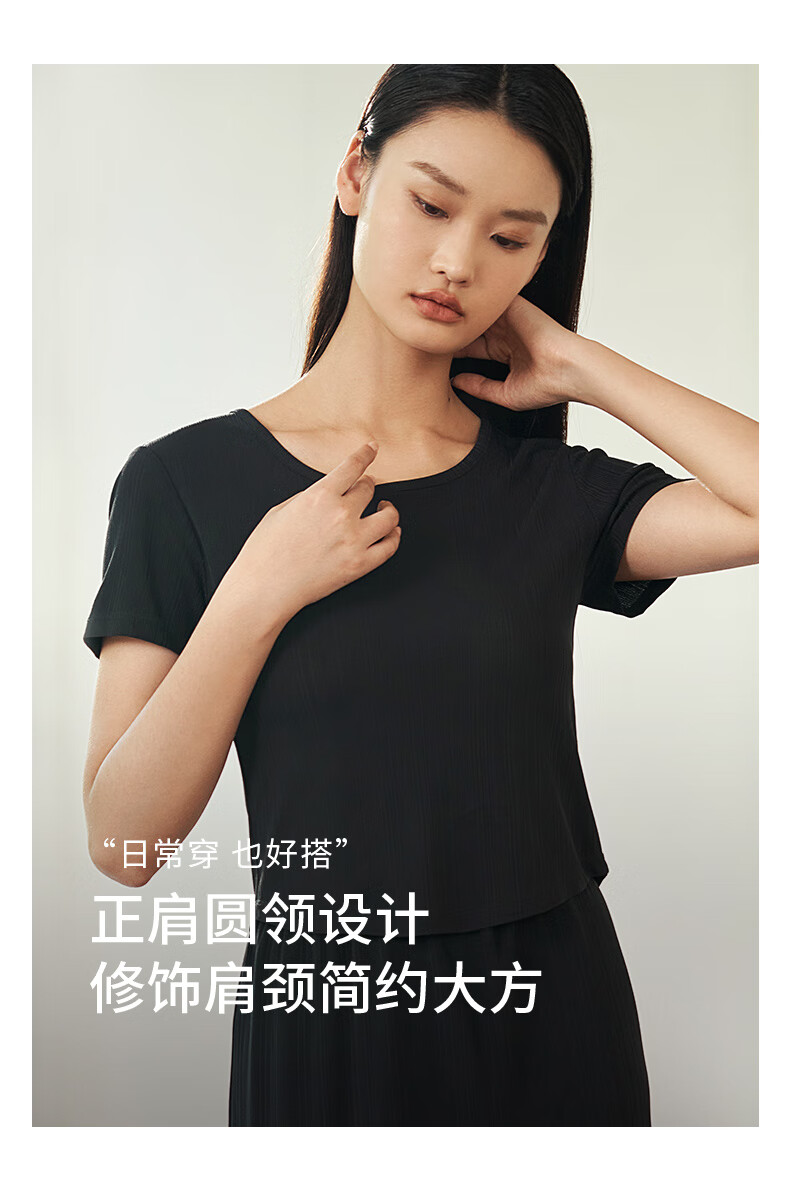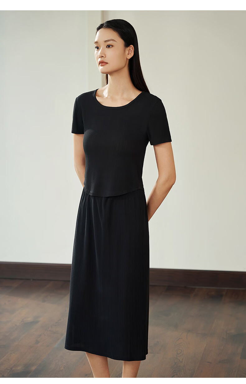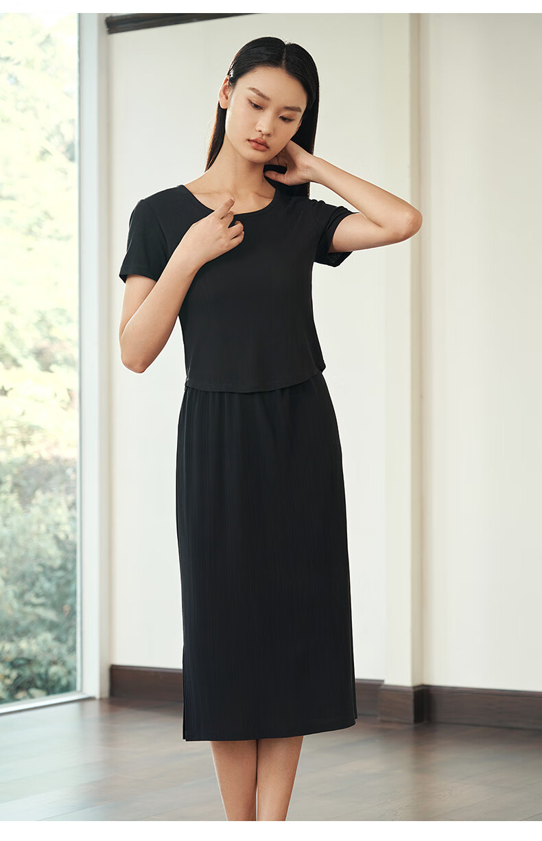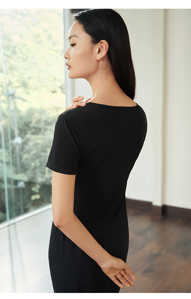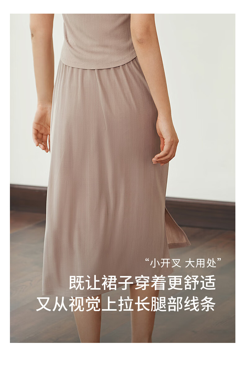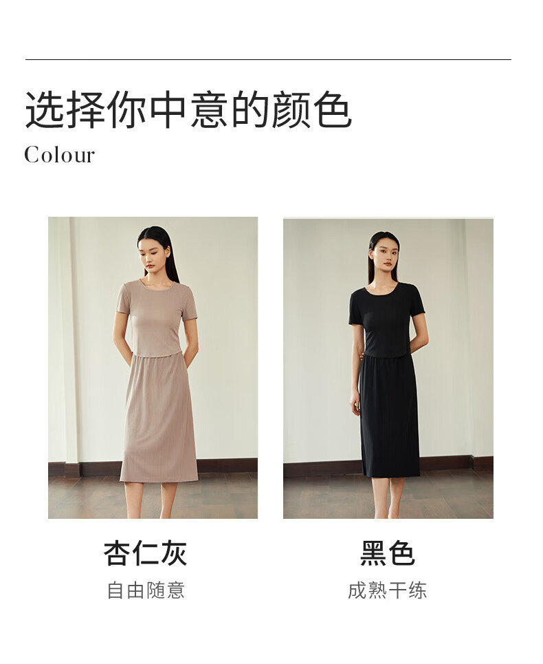 Jin Santa Ladies Silk Wearable Ribbed Right Shoulder Short Sleeve Shirt Skirt Almond Gray (Shirt) M